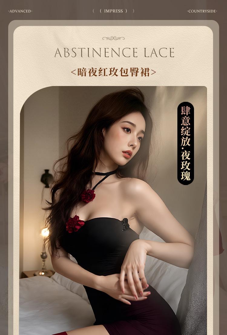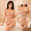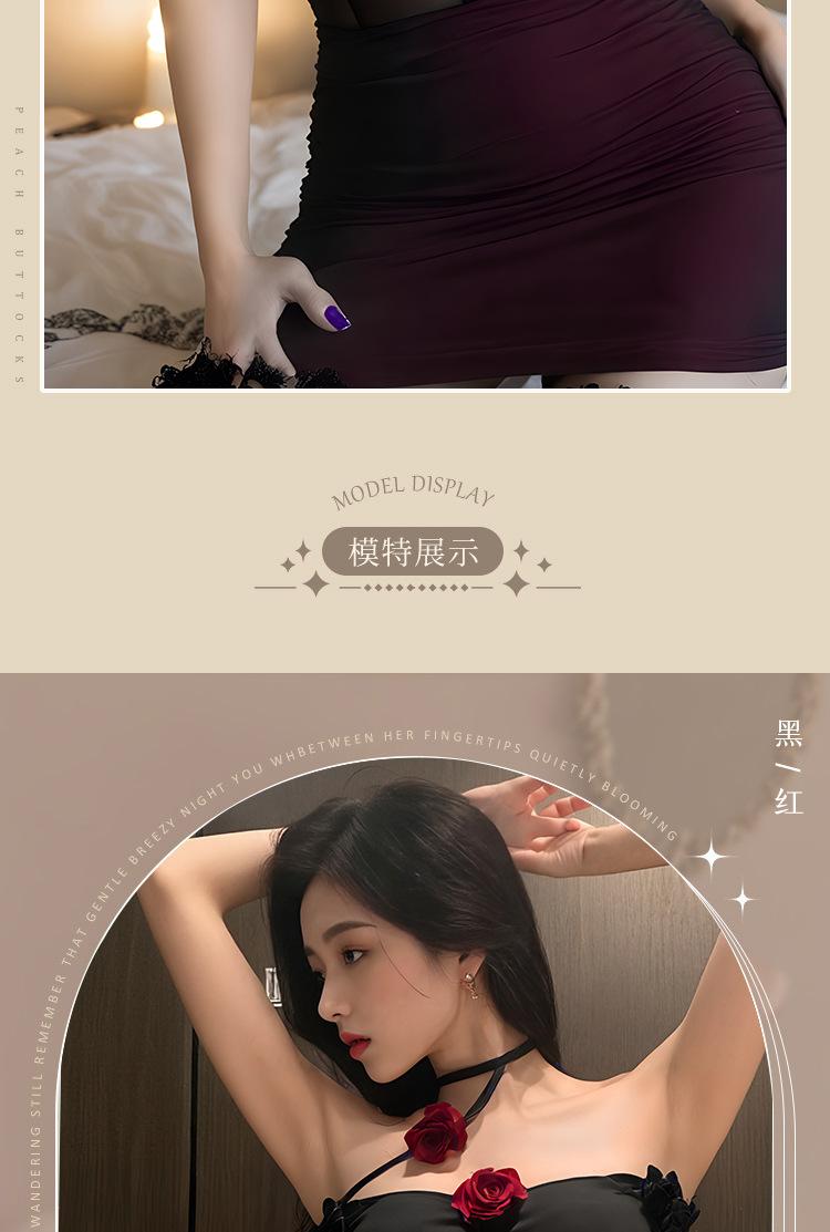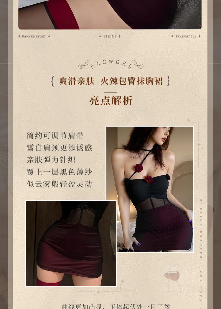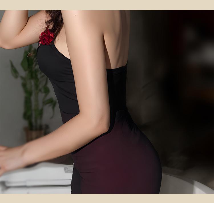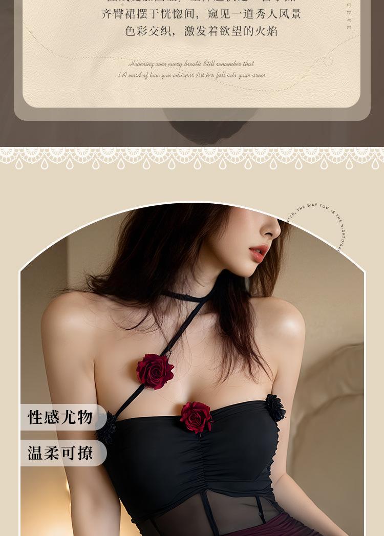 Lencería sexy para discoteca, puro deseo, sexy, dulce temperamento, bolso adelgazante de cadera, vestido de malla con cuello colgante y flores 8586
