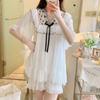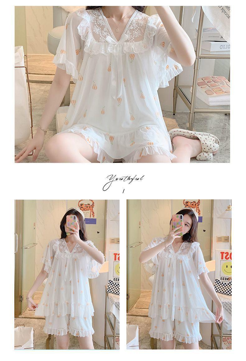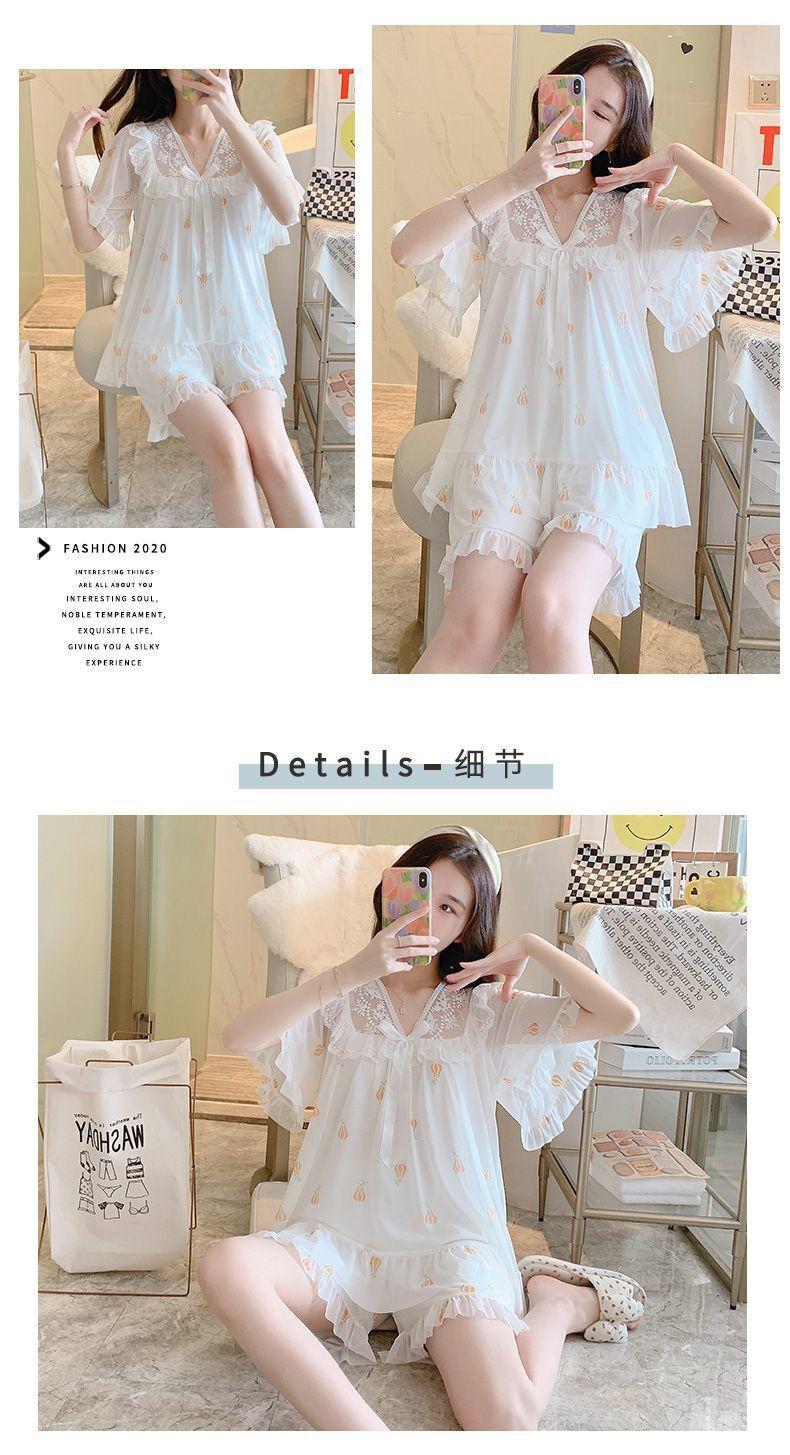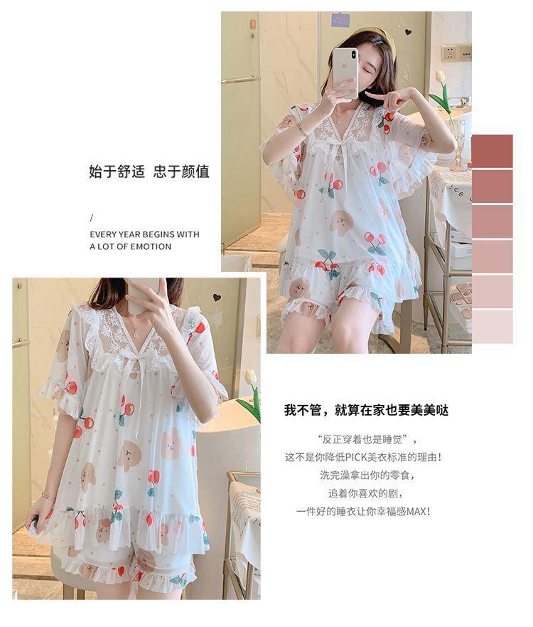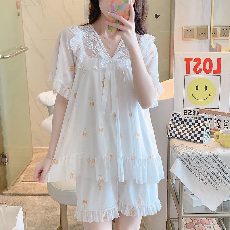 Pijama de verano para mujer, de dos piezas, de malla modal, de manga corta, fino, súper hada, holgado, MM200 Jin Cute