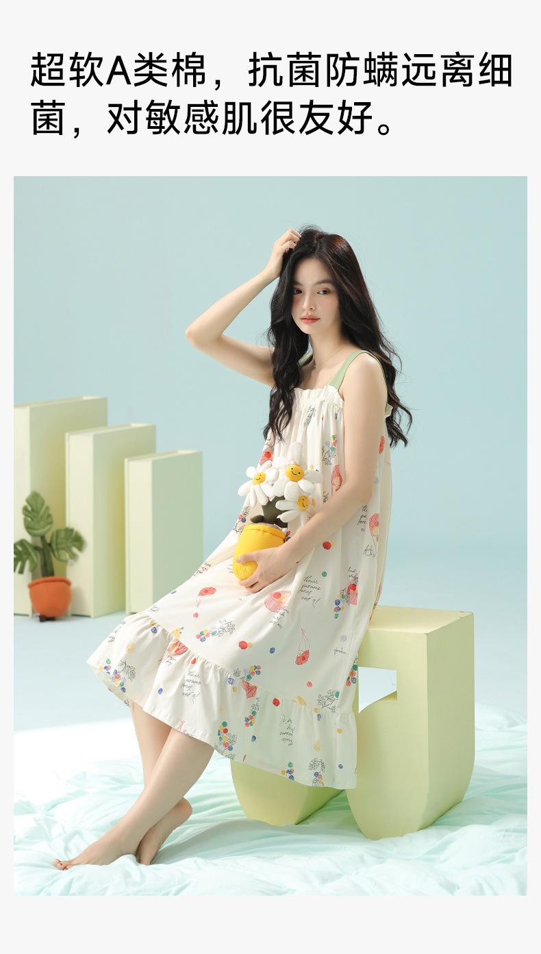 Camisón de algodón antibacteriano de Xinjiang, sin mangas, de verano, de clase A, holgado, para mujer, para el hogar
