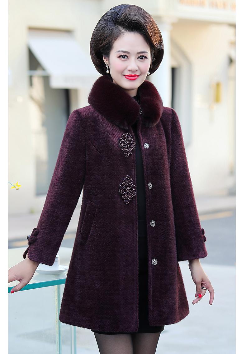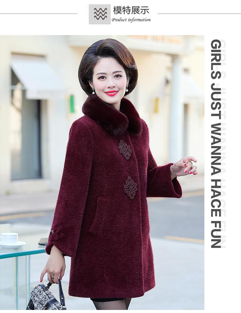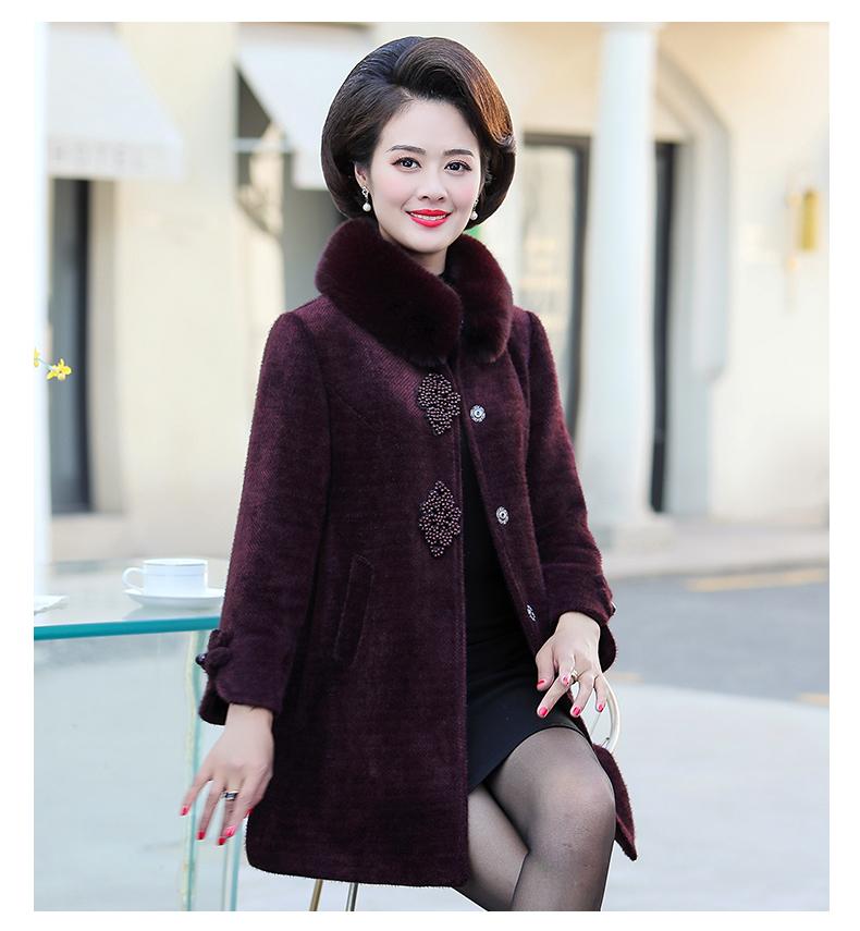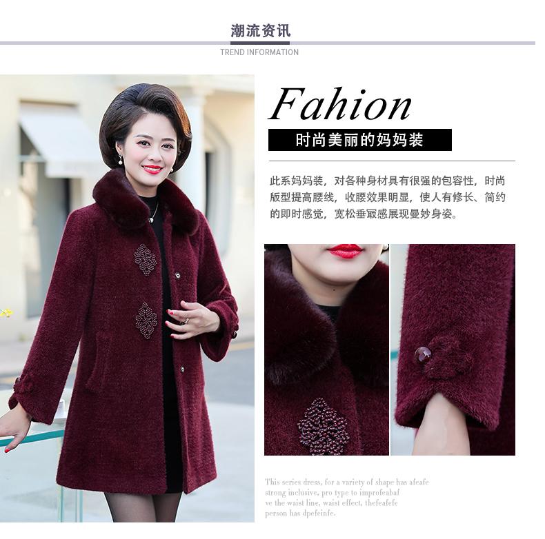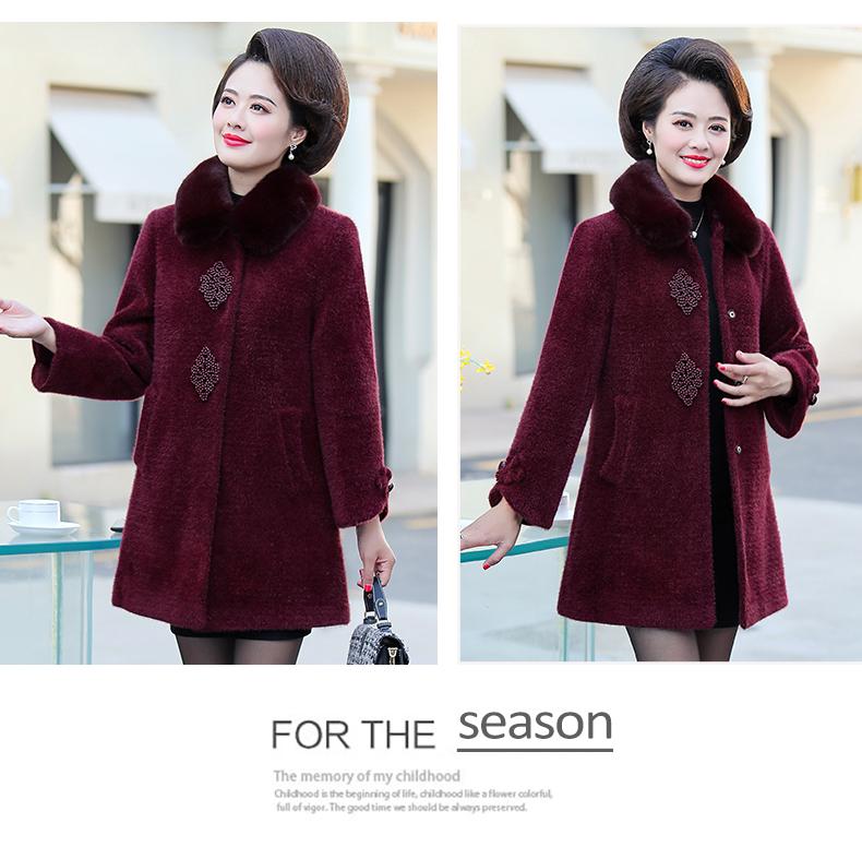Abrigo de Invierno para Madre Estilo Occidental Medio-Largo para Mujeres de Mediana Edad y Ancianas Otoño e Invierno 2020 Nuevo Abrigo de Imitación de Visón Frito