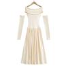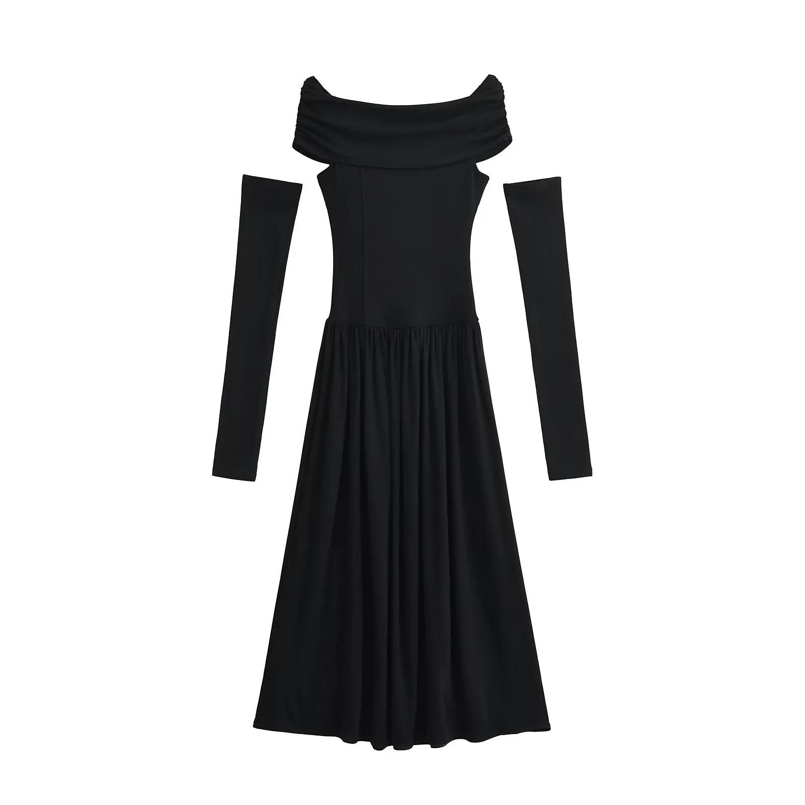 Vestido de verano 2024 con falda larga, sexy, de cintura alta y un solo hombro, con mangas largas y empalmadas.