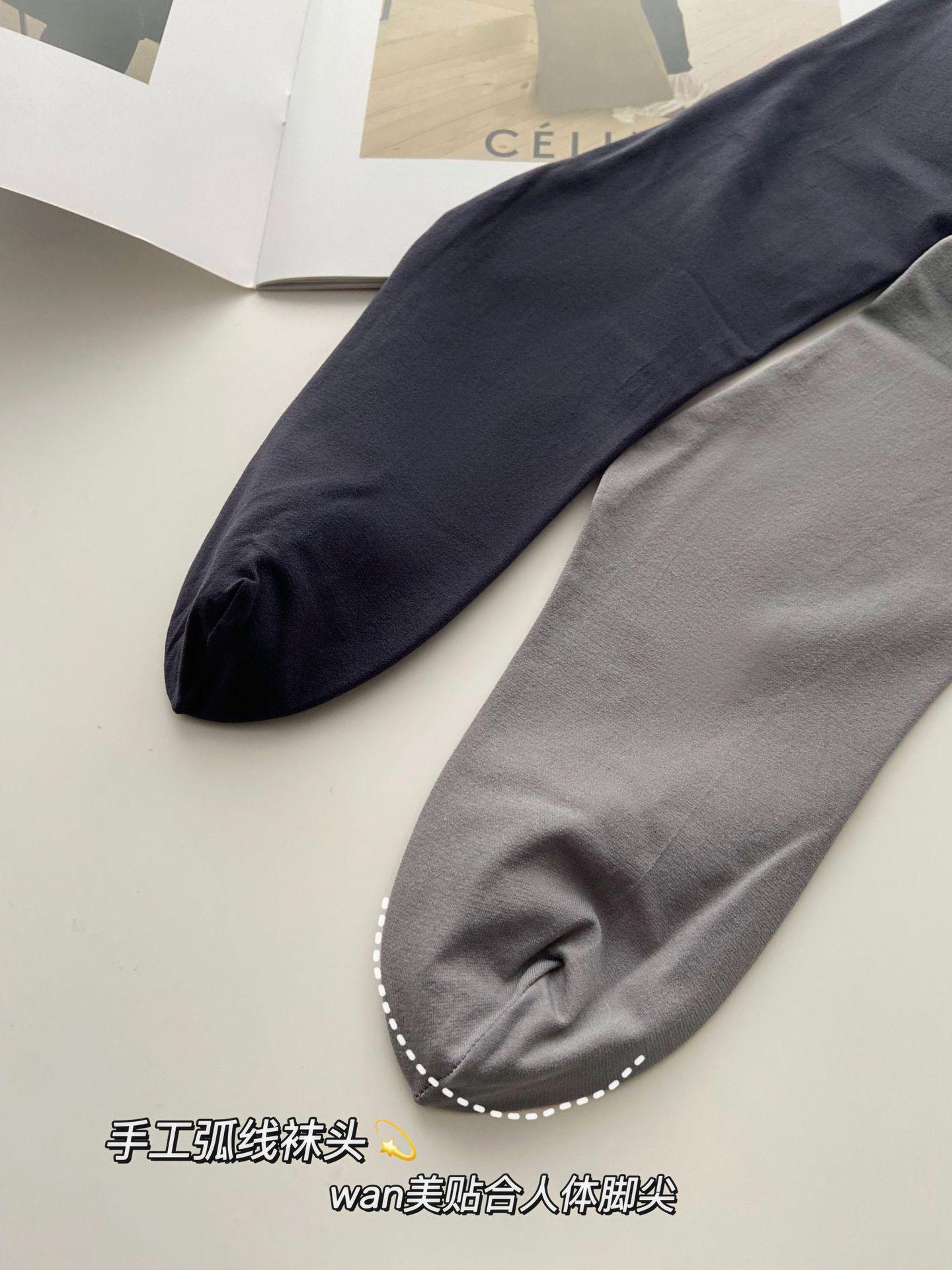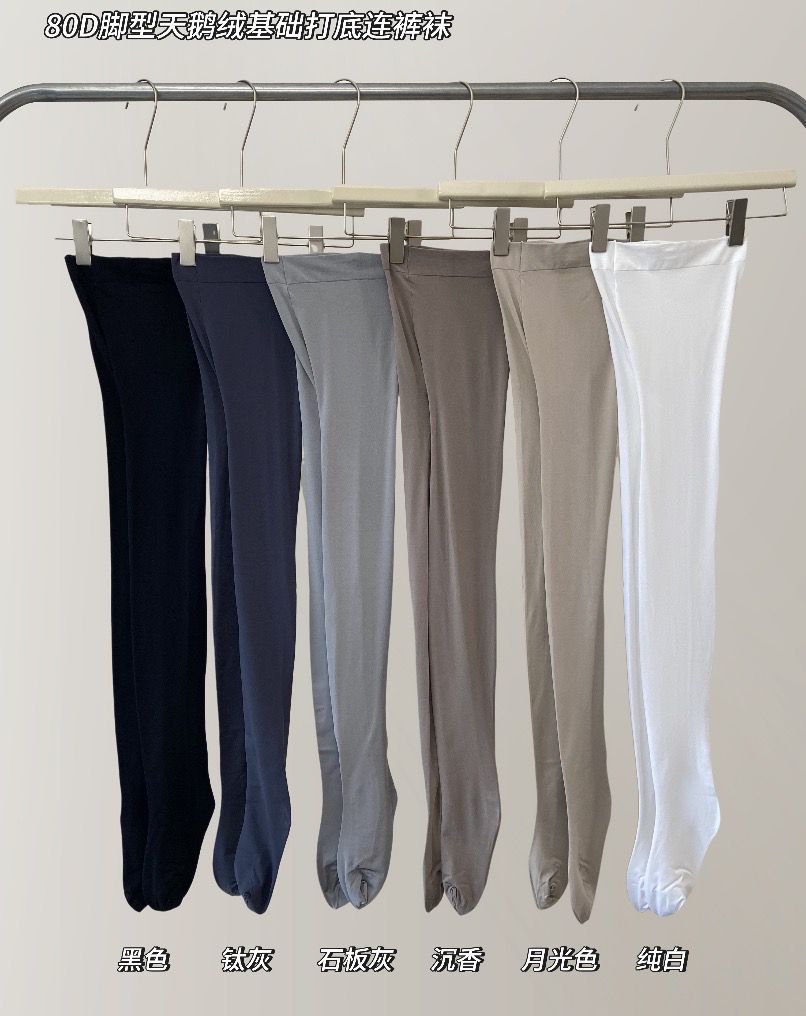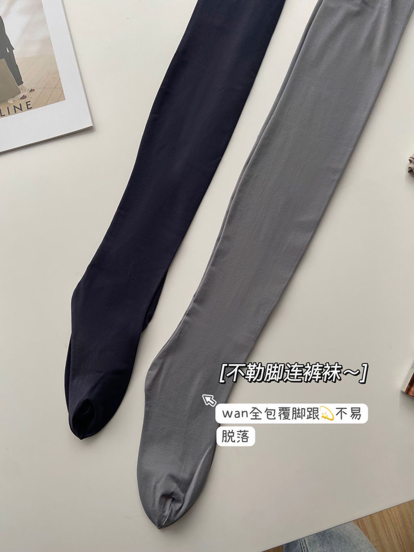 Medias de seda negras de grosor medio 80D, de terciopelo, con tiras para los pies y antiganchos, para mujer, de primavera y otoño, color gris oscuro, con base blanca.