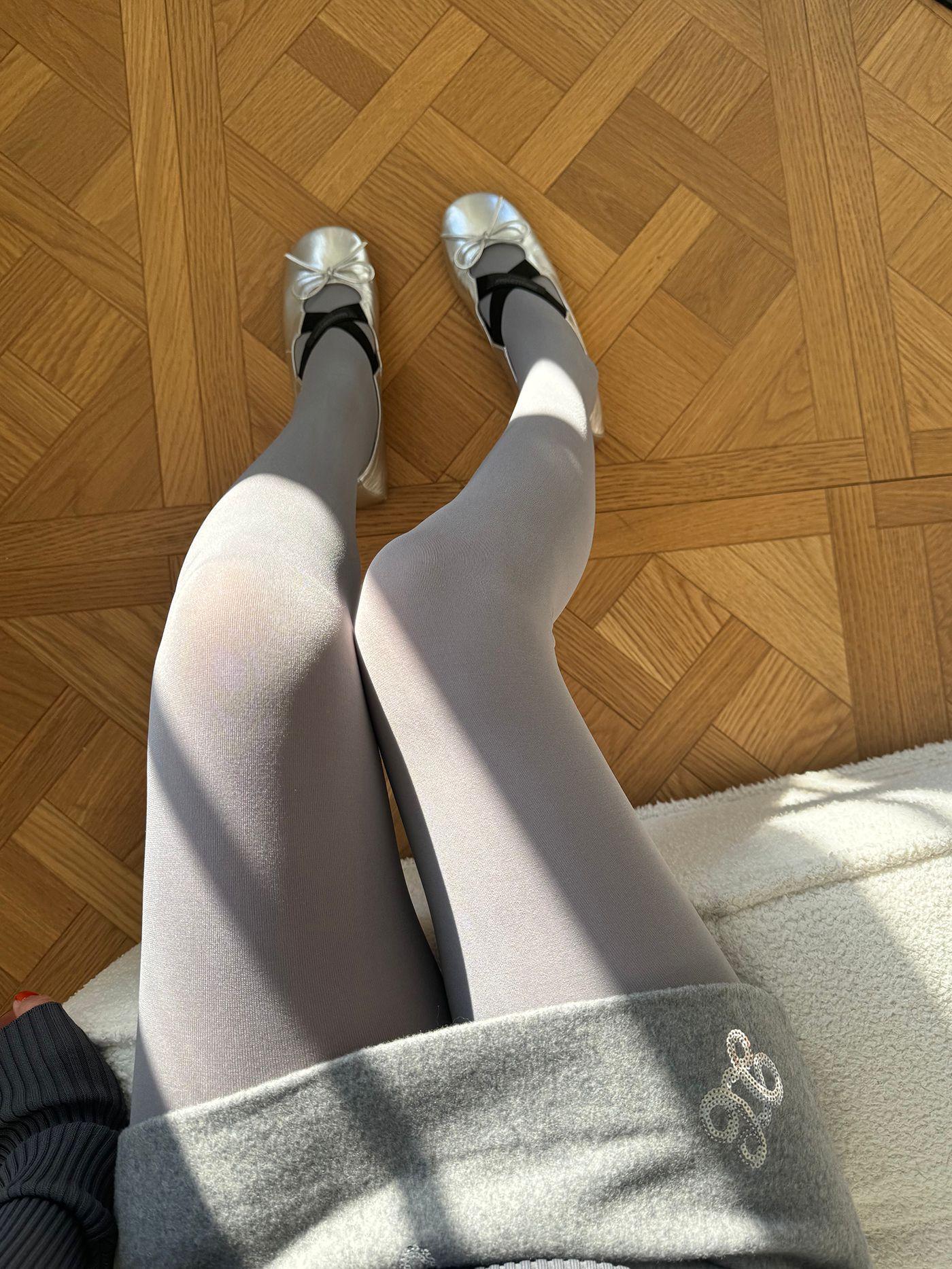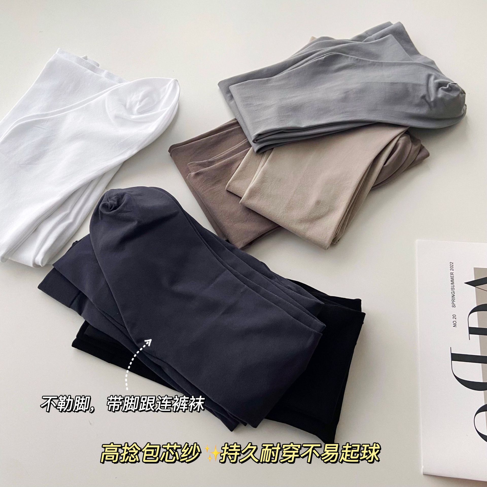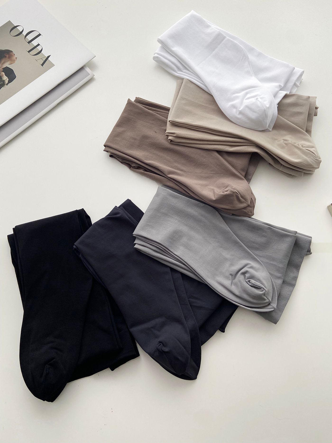 Medias de seda negras de grosor medio 80D, de terciopelo, con tiras para los pies y antiganchos, para mujer, de primavera y otoño, color gris oscuro, con base blanca.