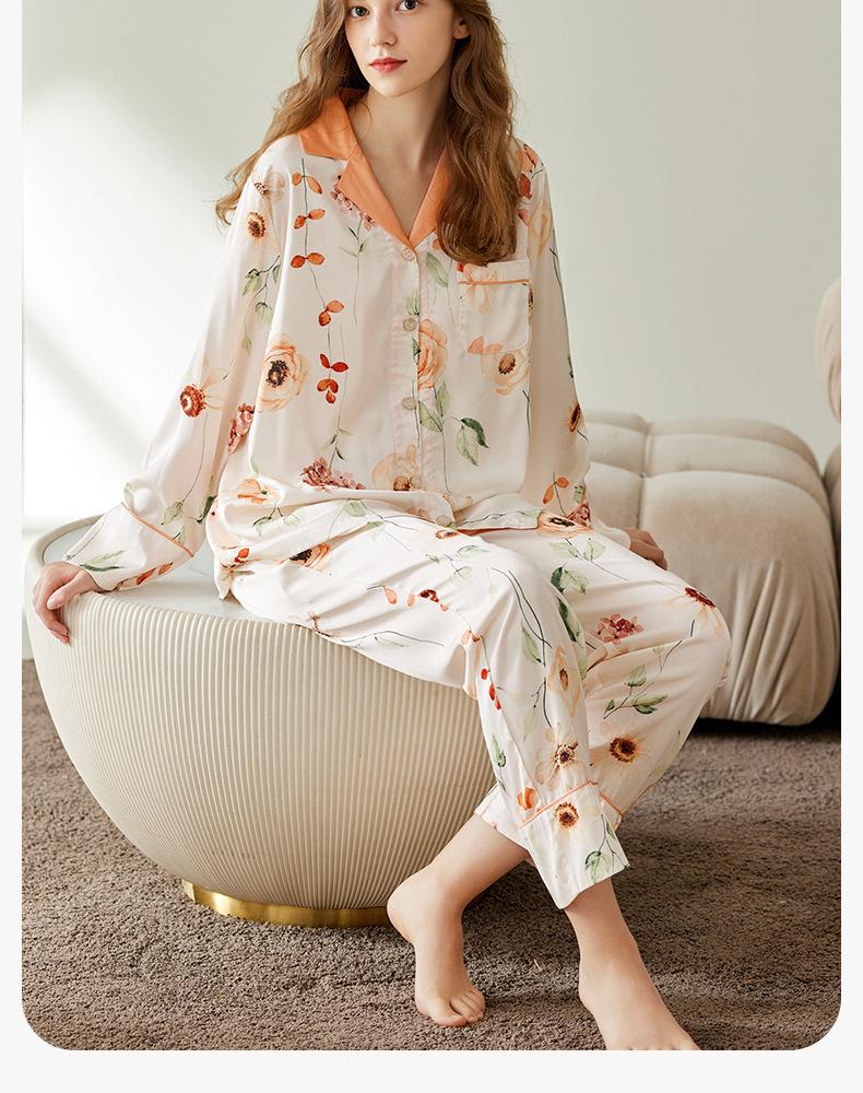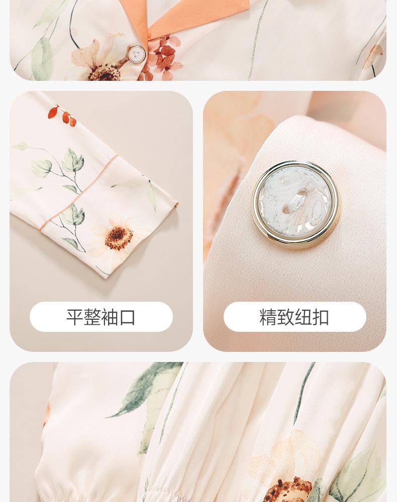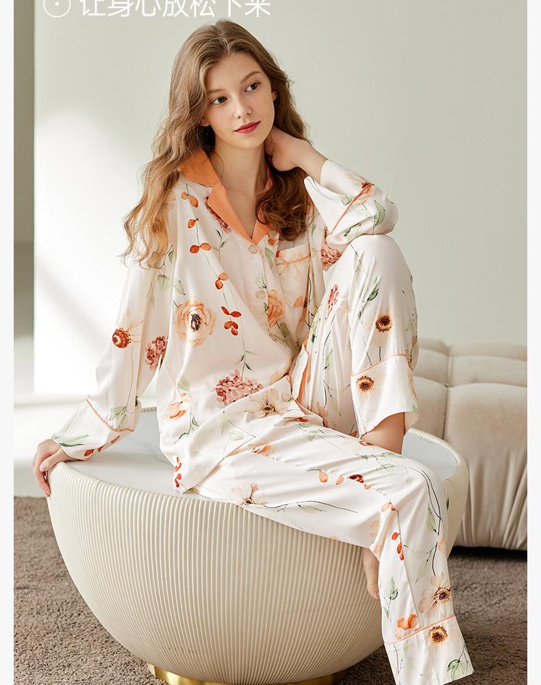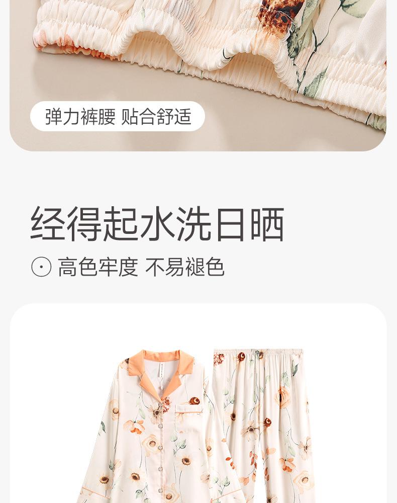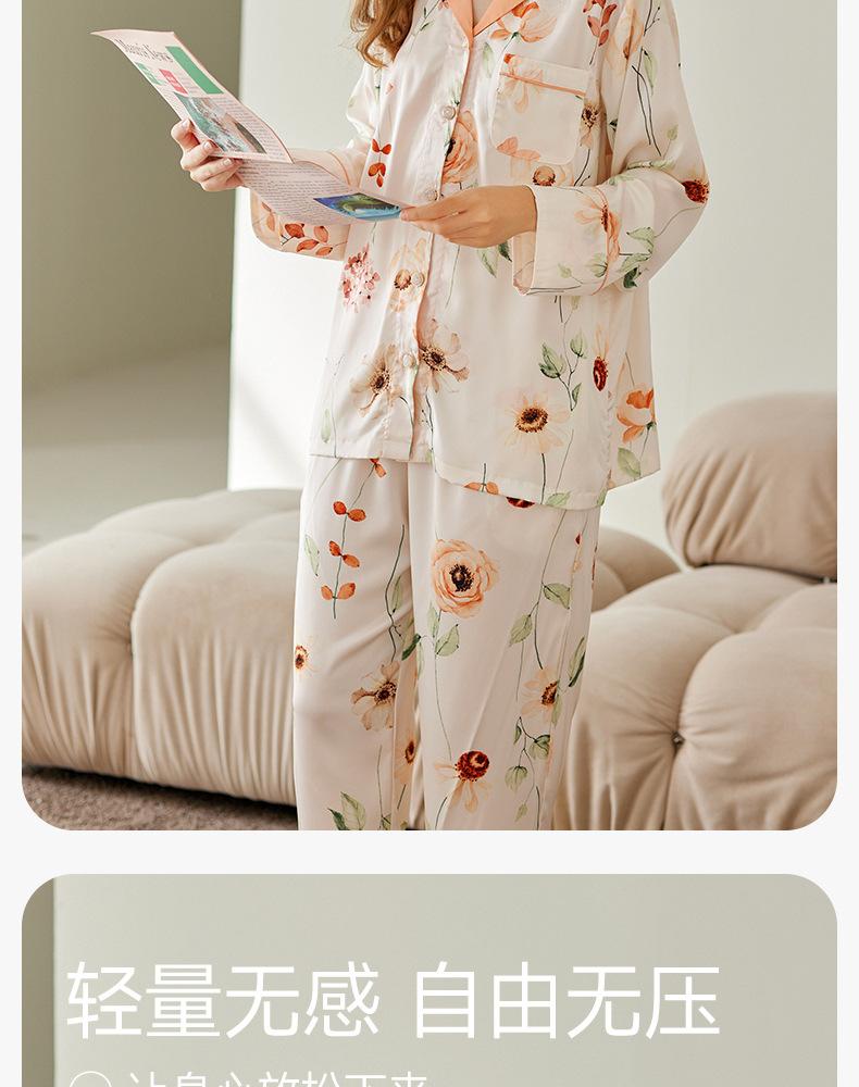 [Seda de Hielo Antibacteriana 5A] Pijama para Mujer Primavera y Otoño Delgado Manga Larga Cárdigan Traje de Seda de Hielo Casual Talla Grande Ropa de Casa