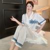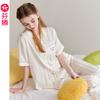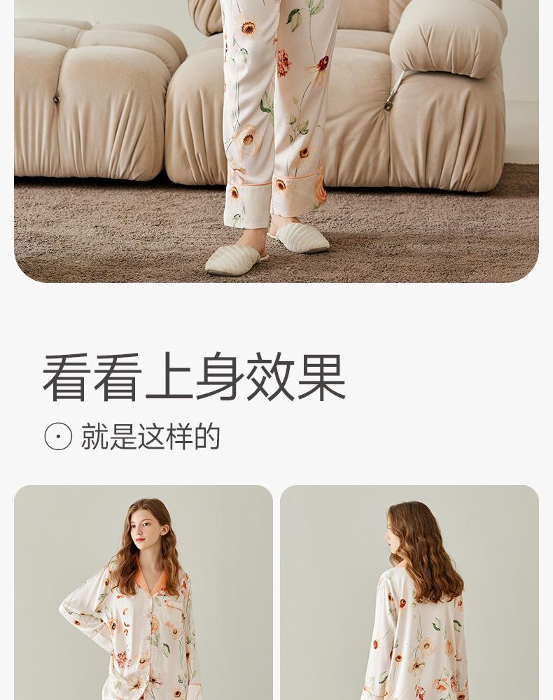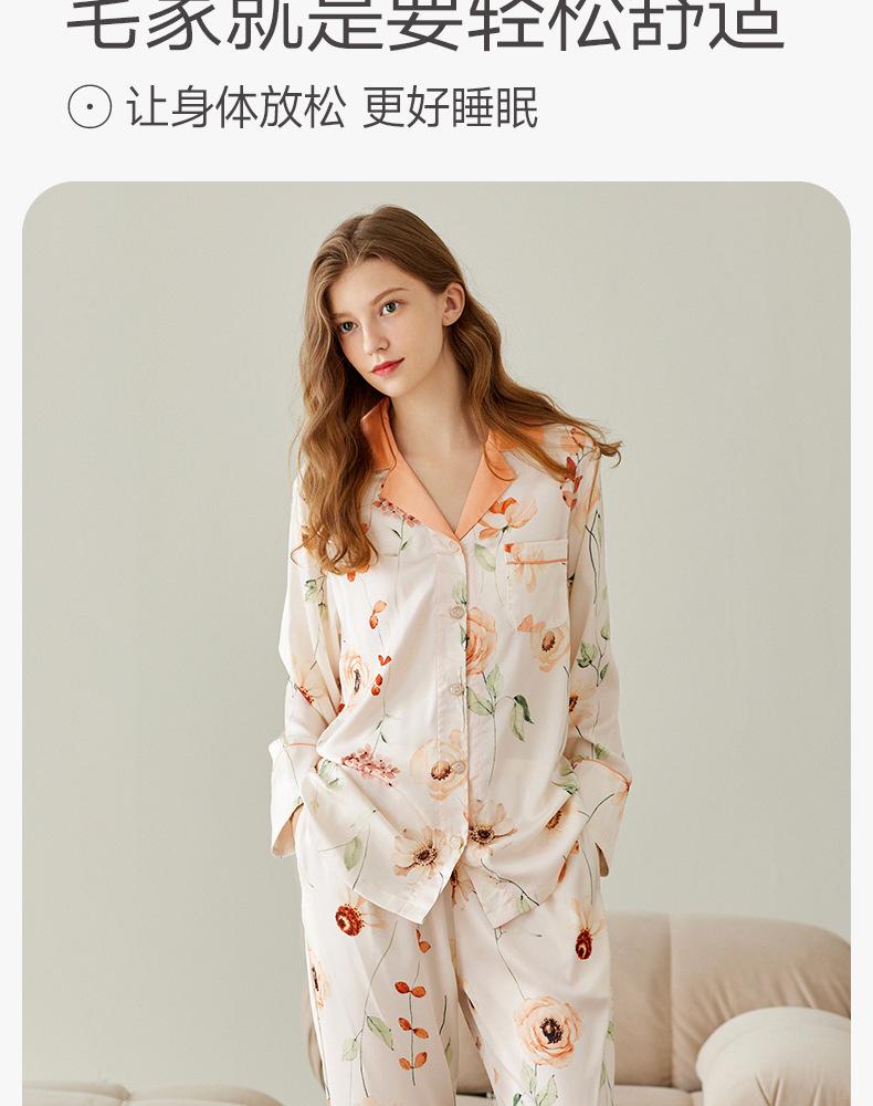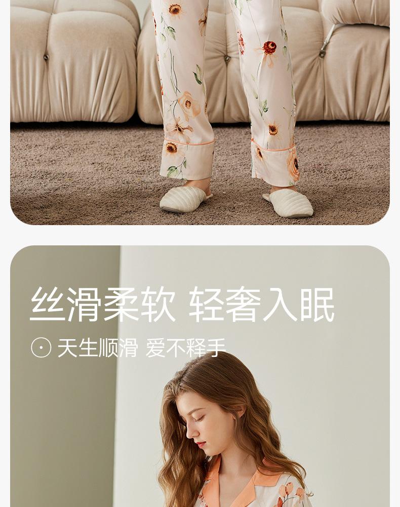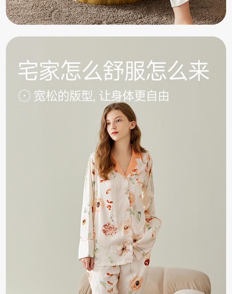[Seda de Hielo Antibacteriana 5A] Pijama para Mujer Primavera y Otoño Delgado Manga Larga Cárdigan Traje de Seda de Hielo Casual Talla Grande Ropa de Casa