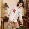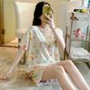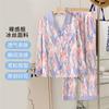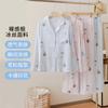 [Pijamas Personalizados] Pijamas Estampados de Manga Larga Pantalones Finos de Seda de Hielo para Mujer Dos Piezas de Seda de Dibujos Animados Ropa para el Hogar