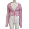 Europeo y Americano Transfronterizo 2025 Verano Spot Nuevo Encaje con Cordones Cuello en V Profundo Mangas Largas Tops Venta al por Mayor Ropa de Mujer