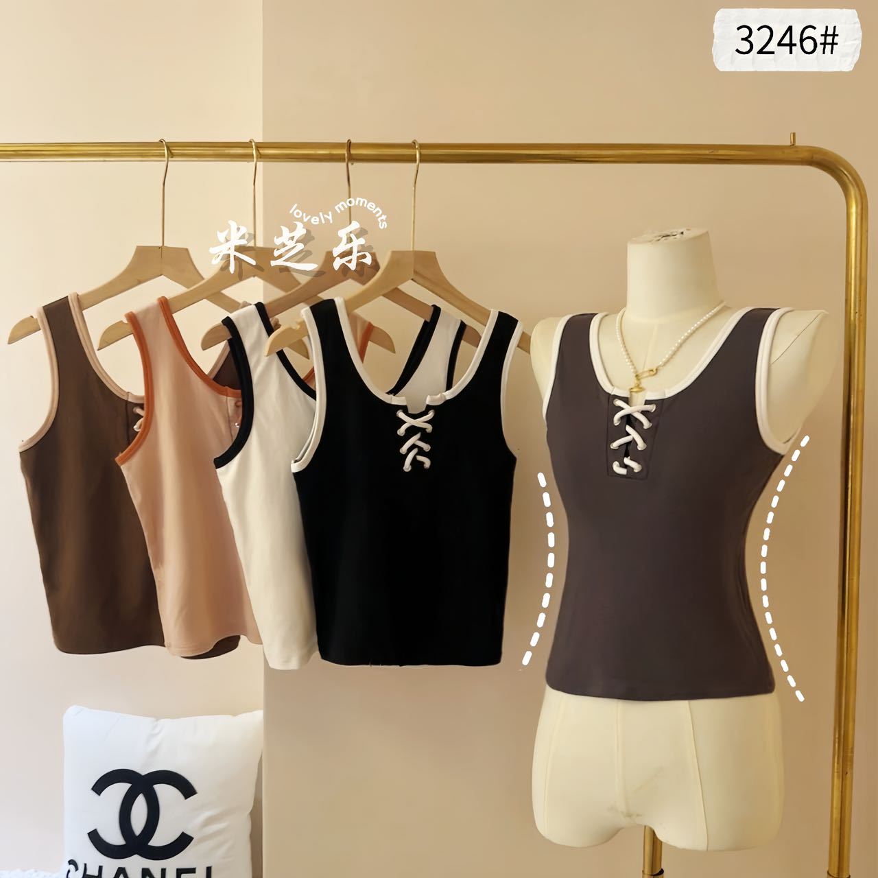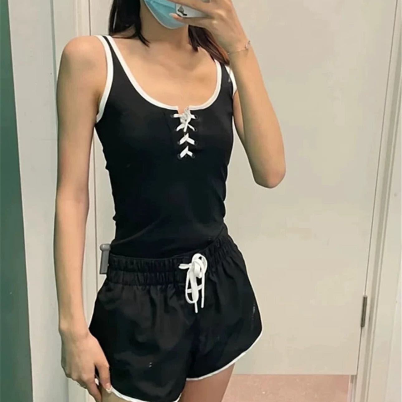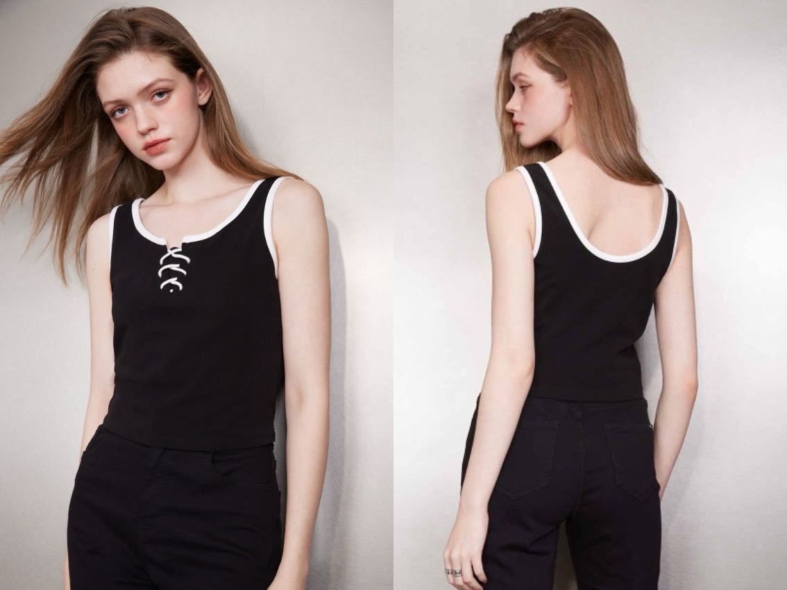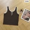 Michile Verano Chica Americana Sexy Camisola Personalizada con Tirantes de Color en Contraste Ajustada Look Delgado Top Combinable