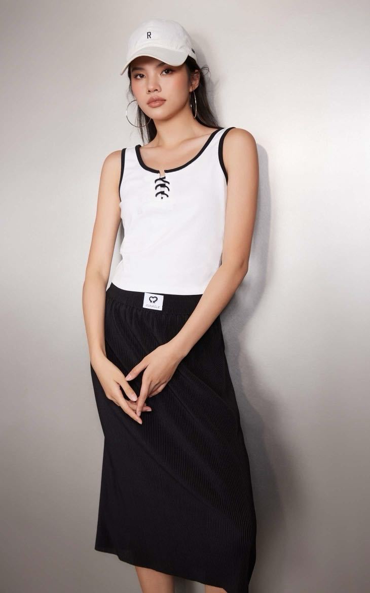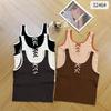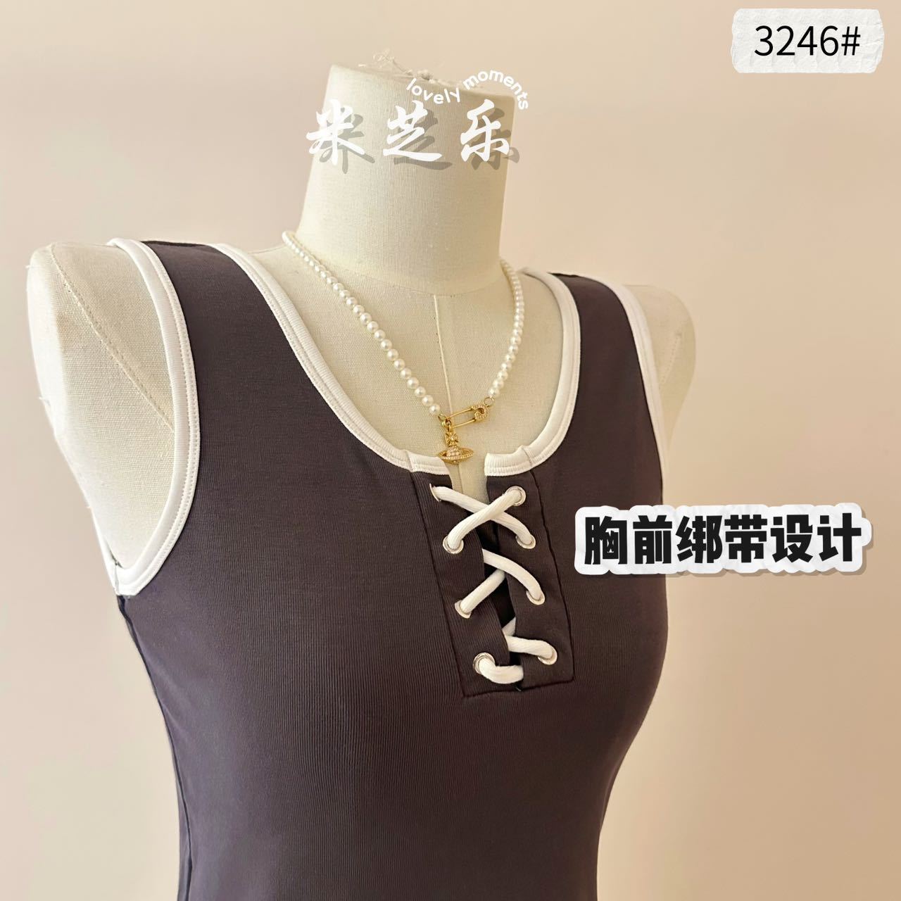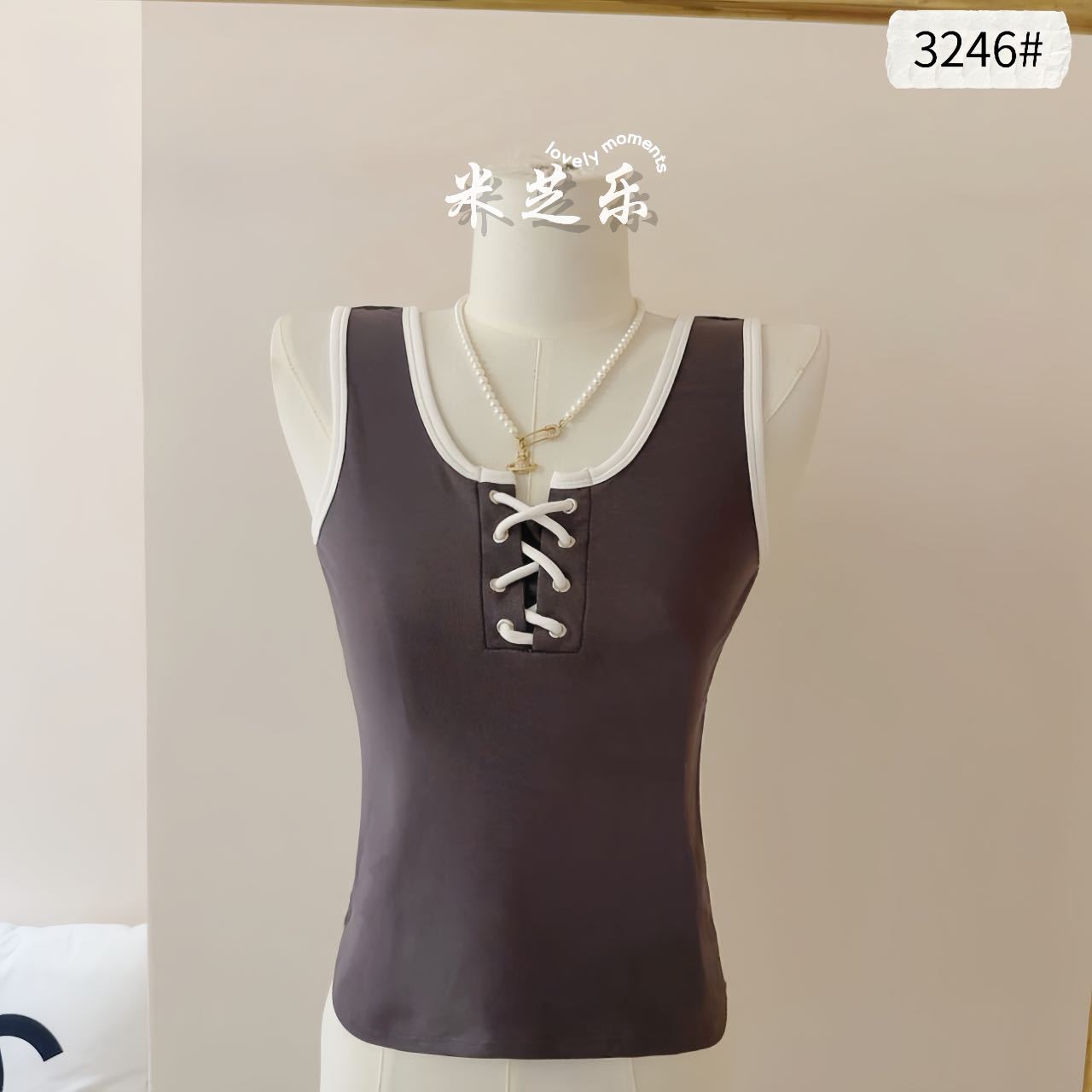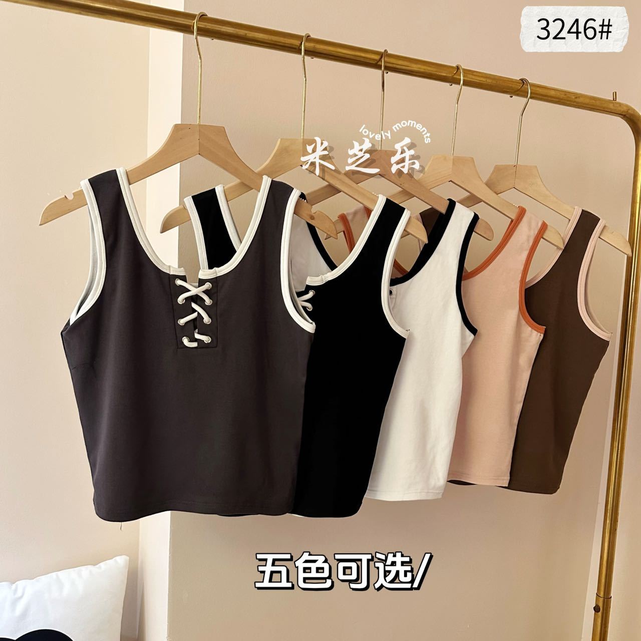 Michile Verano Chica Americana Sexy Camisola Personalizada con Tirantes de Color en Contraste Ajustada Look Delgado Top Combinable