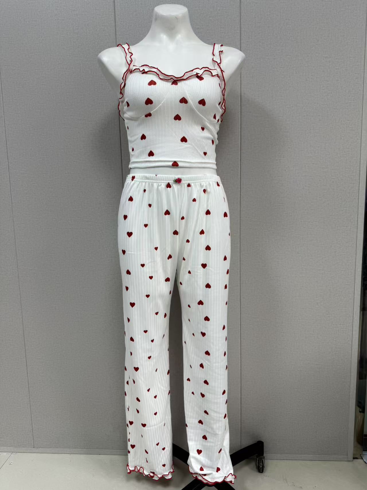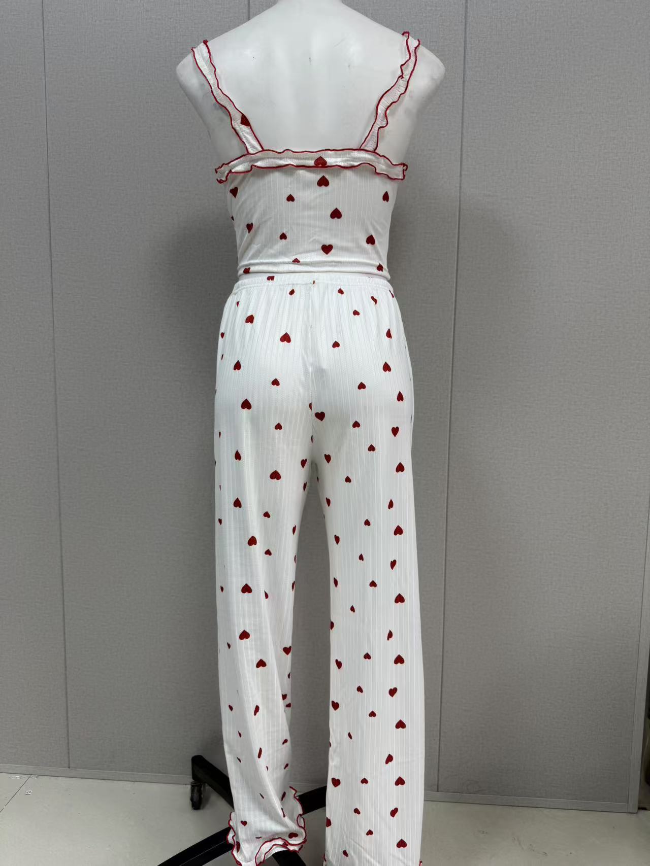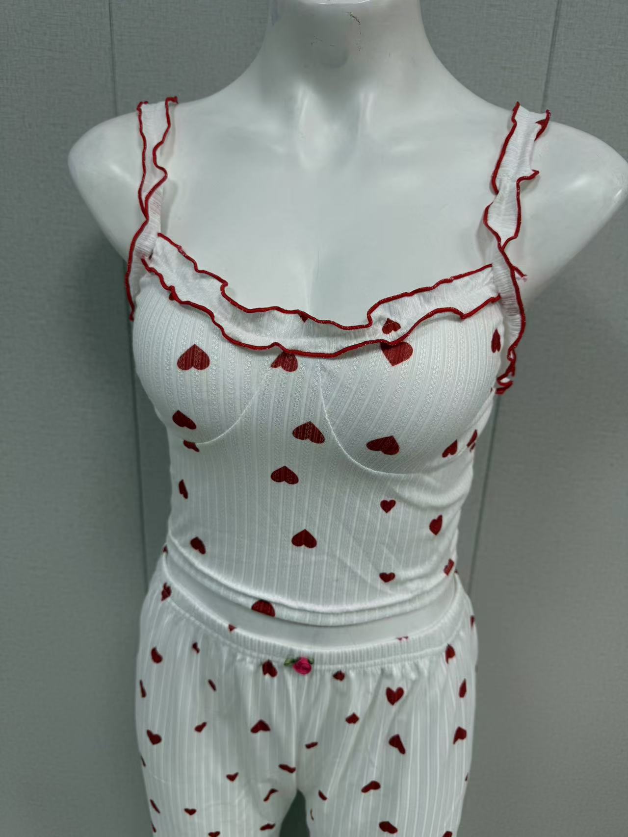 Pantalones cortos de tirantes de comercio exterior 2025, sexys, con volantes, estampado de amor multicolor, ropa informal cómoda para el hogar