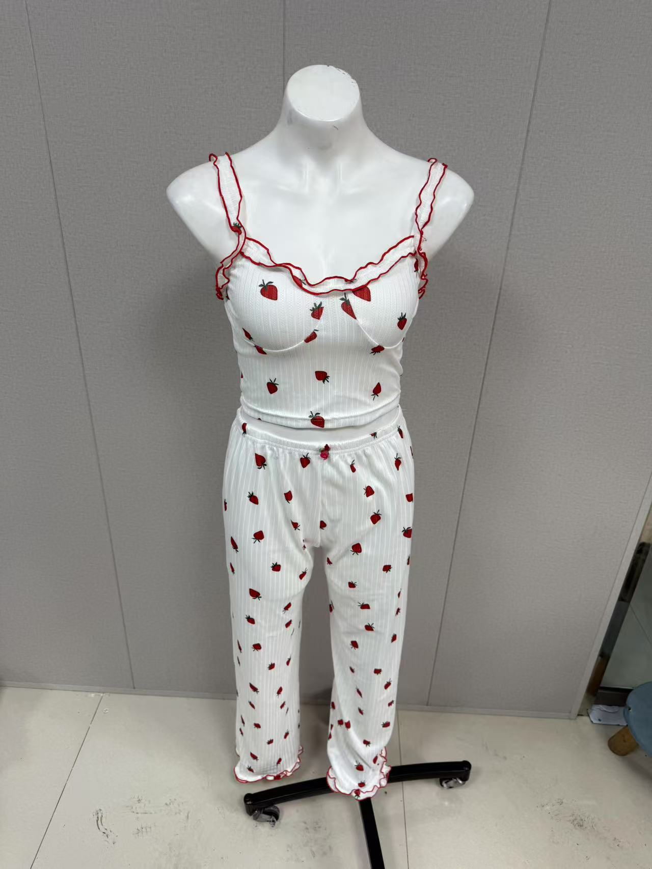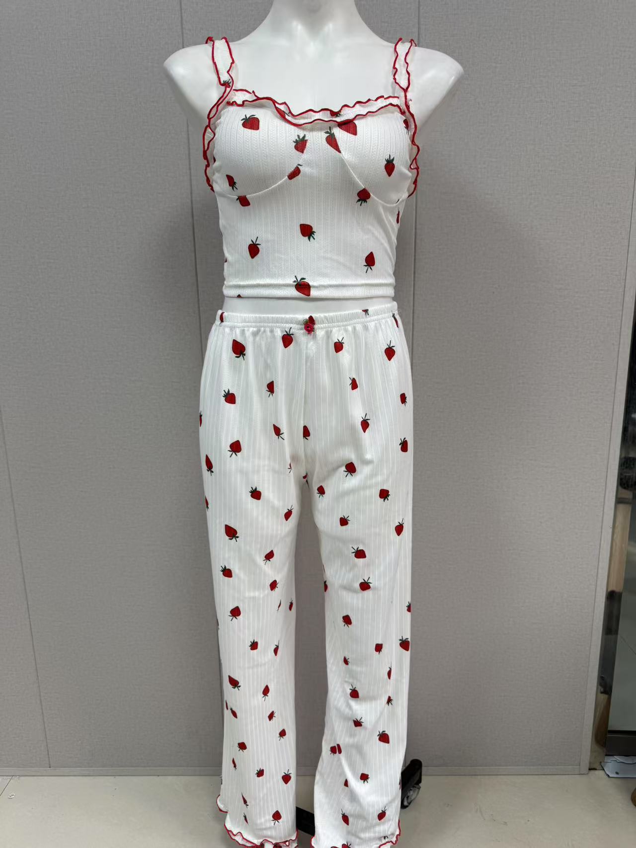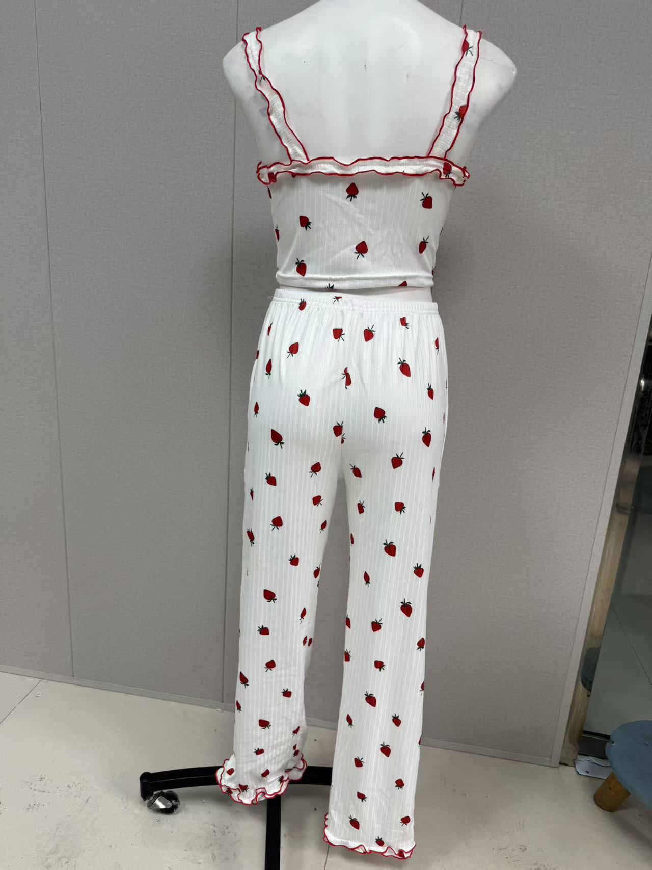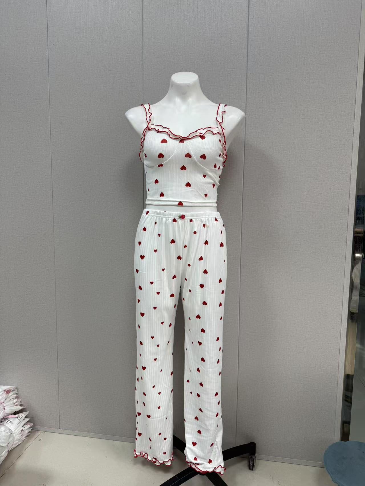 Pantalones cortos de tirantes de comercio exterior 2025, sexys, con volantes, estampado de amor multicolor, ropa informal cómoda para el hogar
