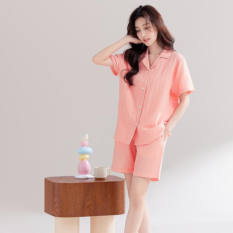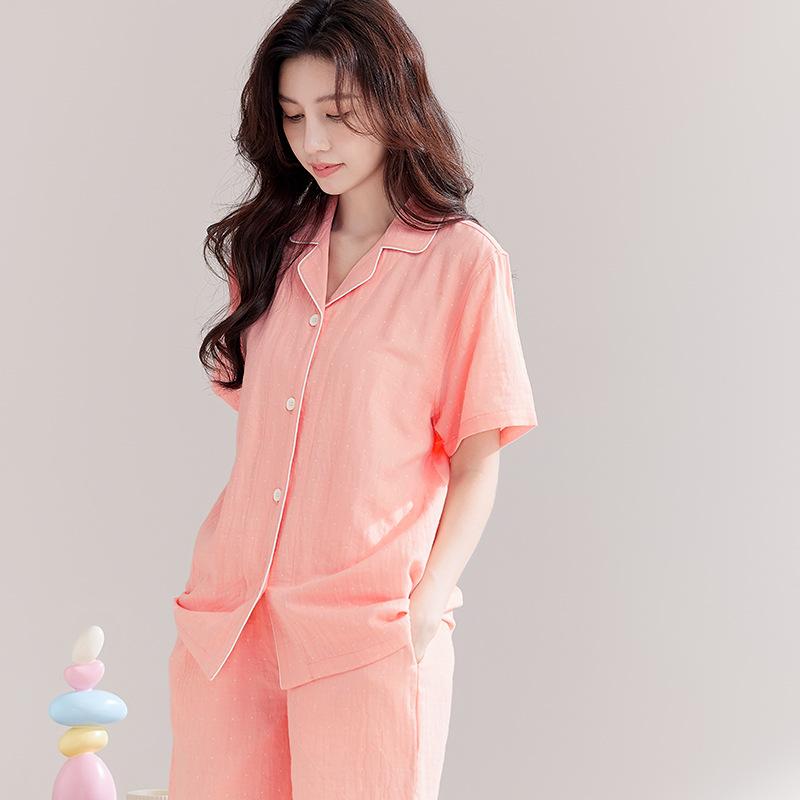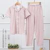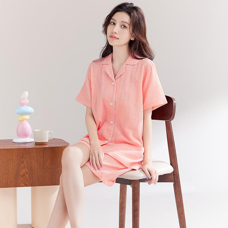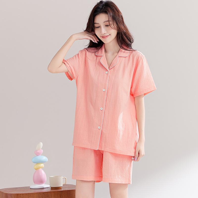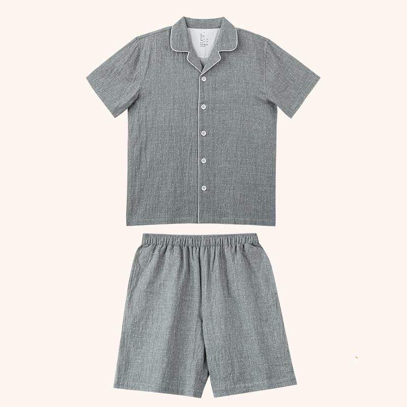 Polo de Algodón Muji de Estilo Japonés de Hilo de Doble Capa con Lunares Ropa para el Hogar Buena Pantalones Cortos de Manga Corta Traje de Pijama de Verano Pareja Hogar