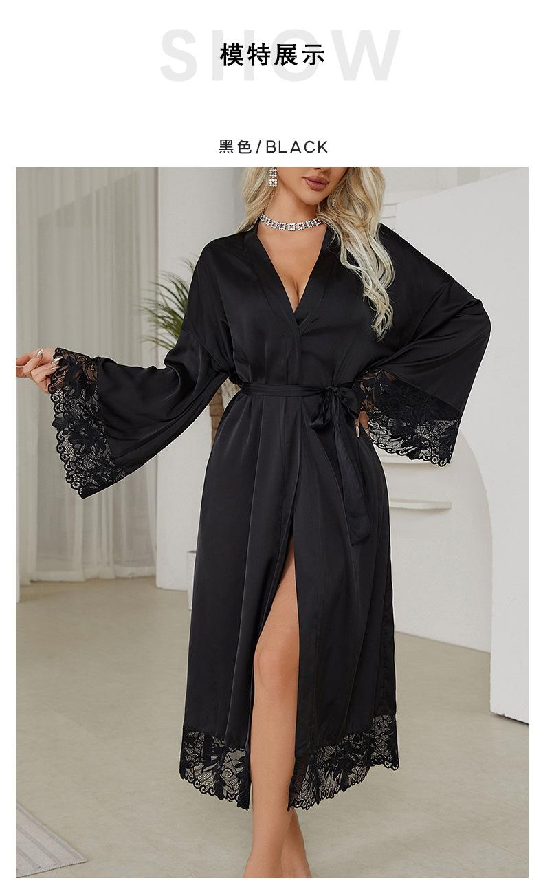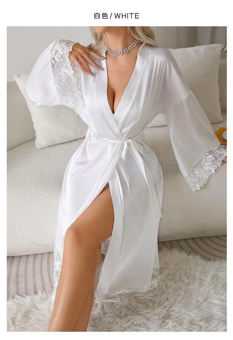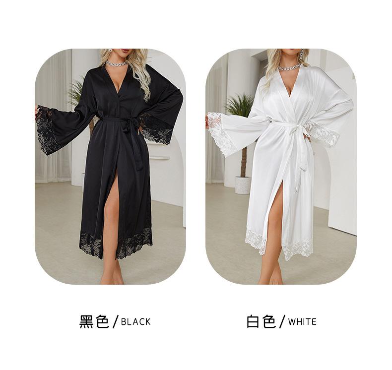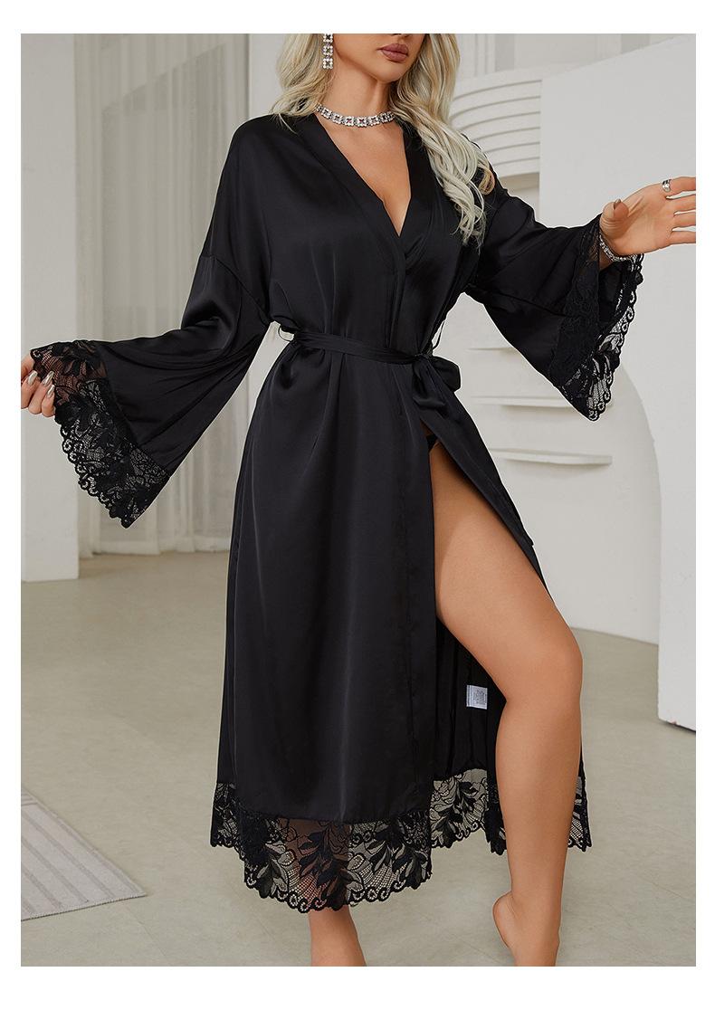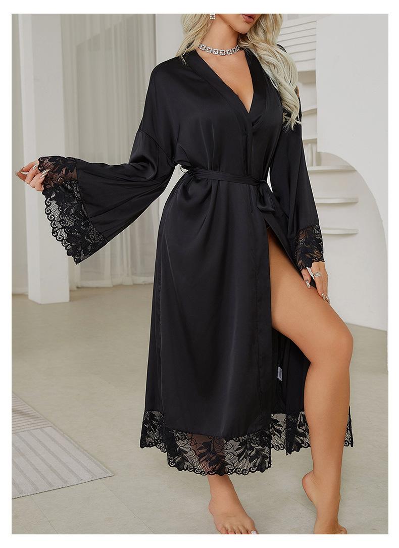 Bata de satén europea y americana para mujer, camisón largo de encaje sexy y cómodo, ropa de dormir francesa con cordones 682