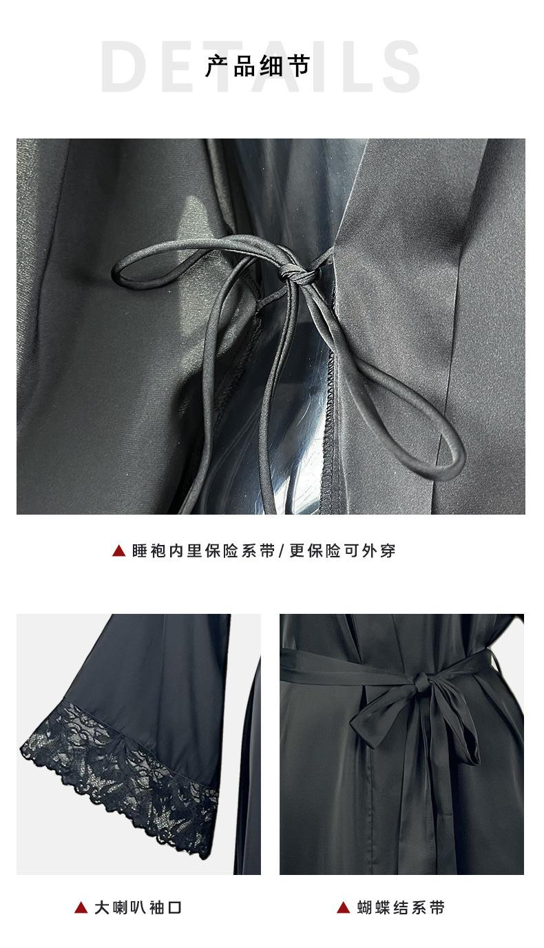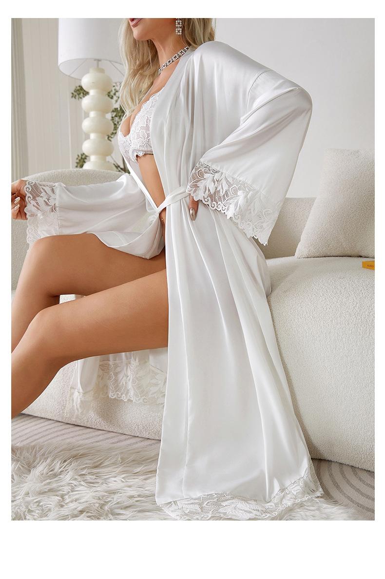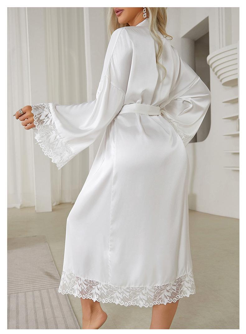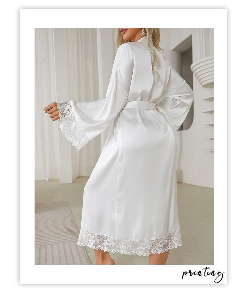 Bata de satén europea y americana para mujer, camisón largo de encaje sexy y cómodo, ropa de dormir francesa con cordones 682