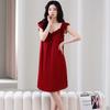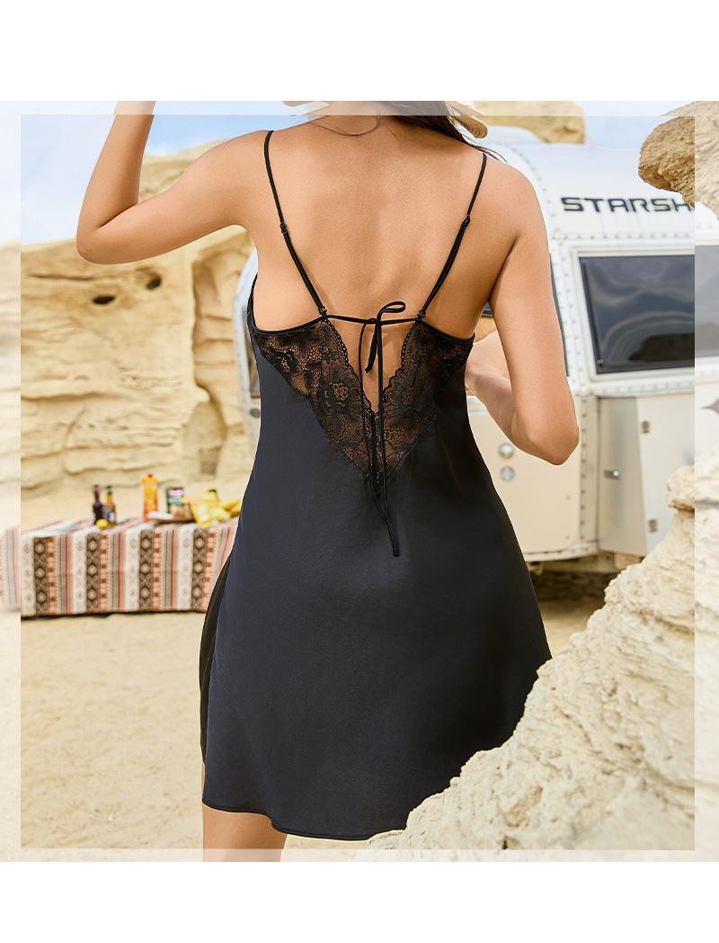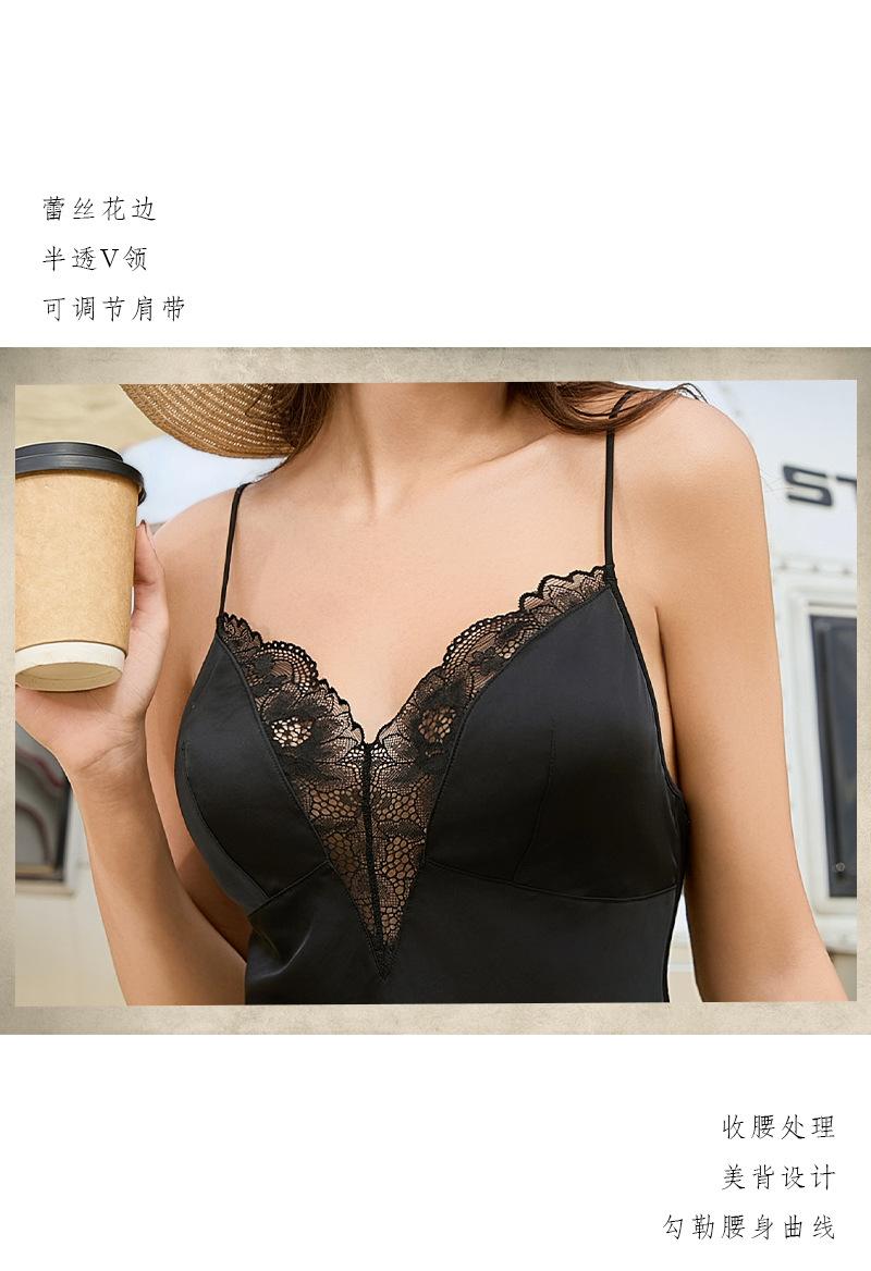 Camisón de seda de imitación de hielo de alta gama, ligero y lujoso, para mujer, de verano, con costuras de encaje fino, ropa sencilla para el hogar 74044