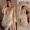 Xianyi Camisón Sexy de Verano para Mujer, Se Puede Usar Afuera, Camisón con Tirantes Finos, Estilo Puro Deseo, Bata con Cordones, Bata Exterior, Conjunto de Ropa de Descanso 470