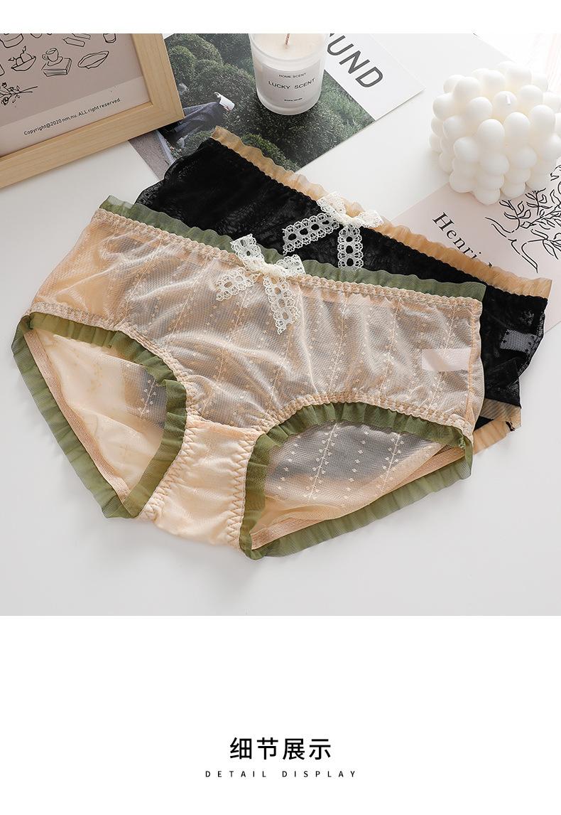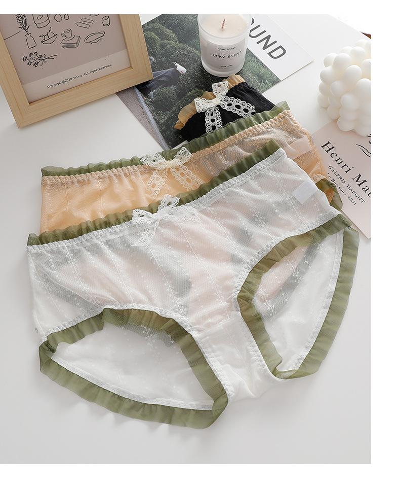 Ropa Interior Nueva Sin Costuras de Cintura Media para Mujer Transpirable Seda de Hielo Suave Cómoda Sexy Semitransparente Calzoncillos con Lazo al por Mayor