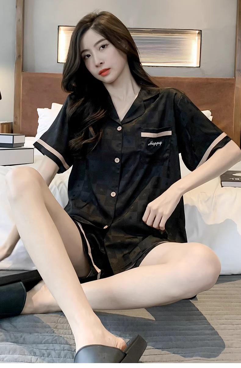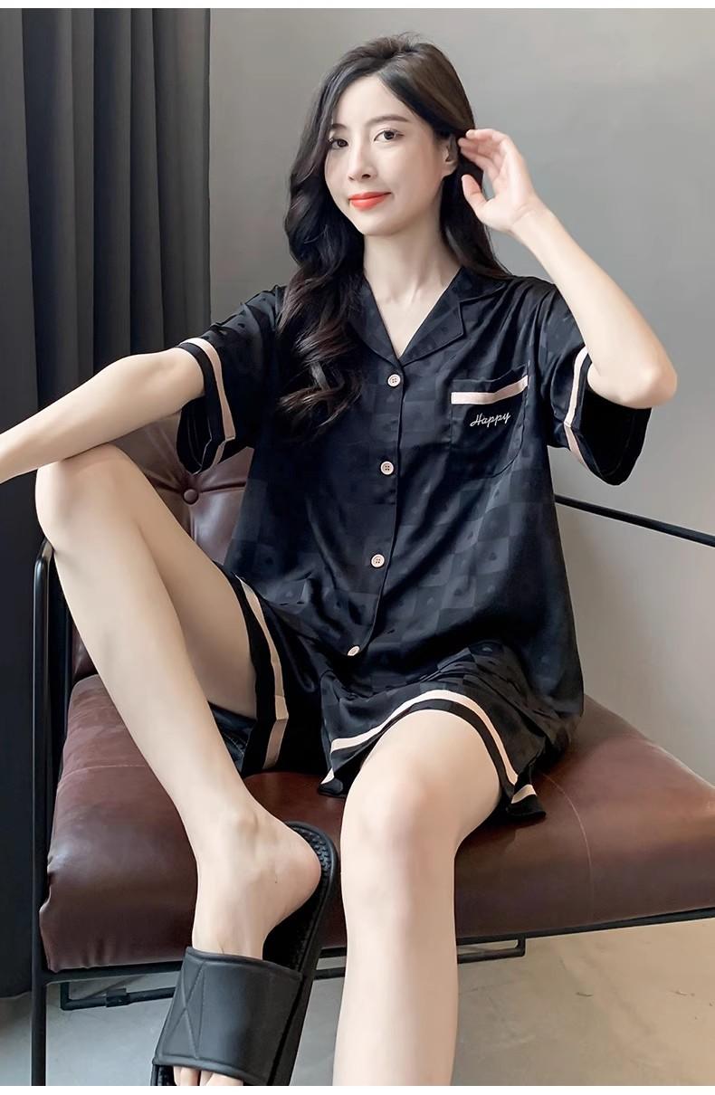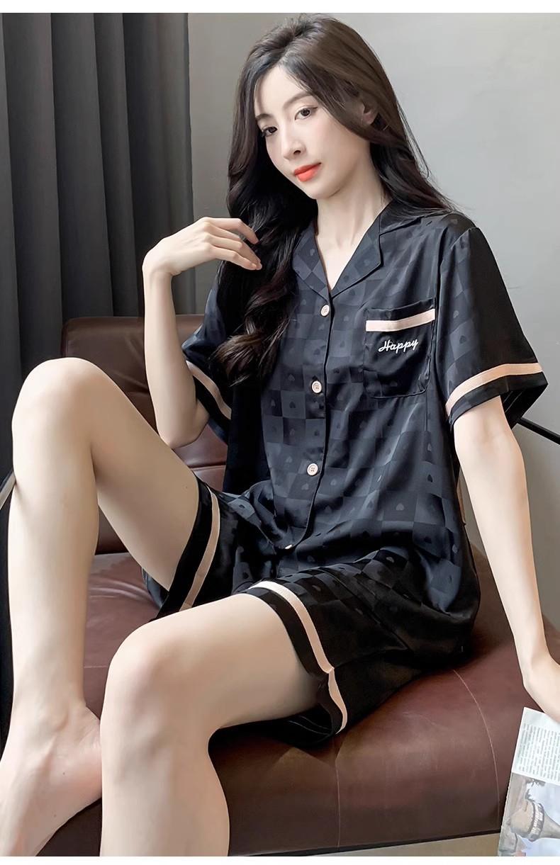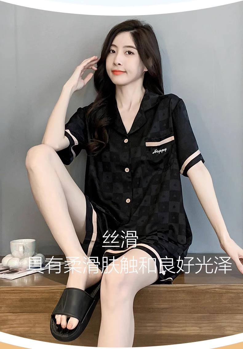 Pijama para Mujer Verano Seda de Hielo Manga Corta Shorts Delgada Estilo Celebridad de Internet Ropa de Casa de Verano 2025 Nuevo Traje de Seda