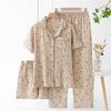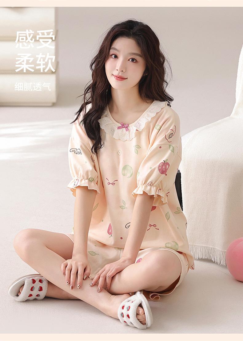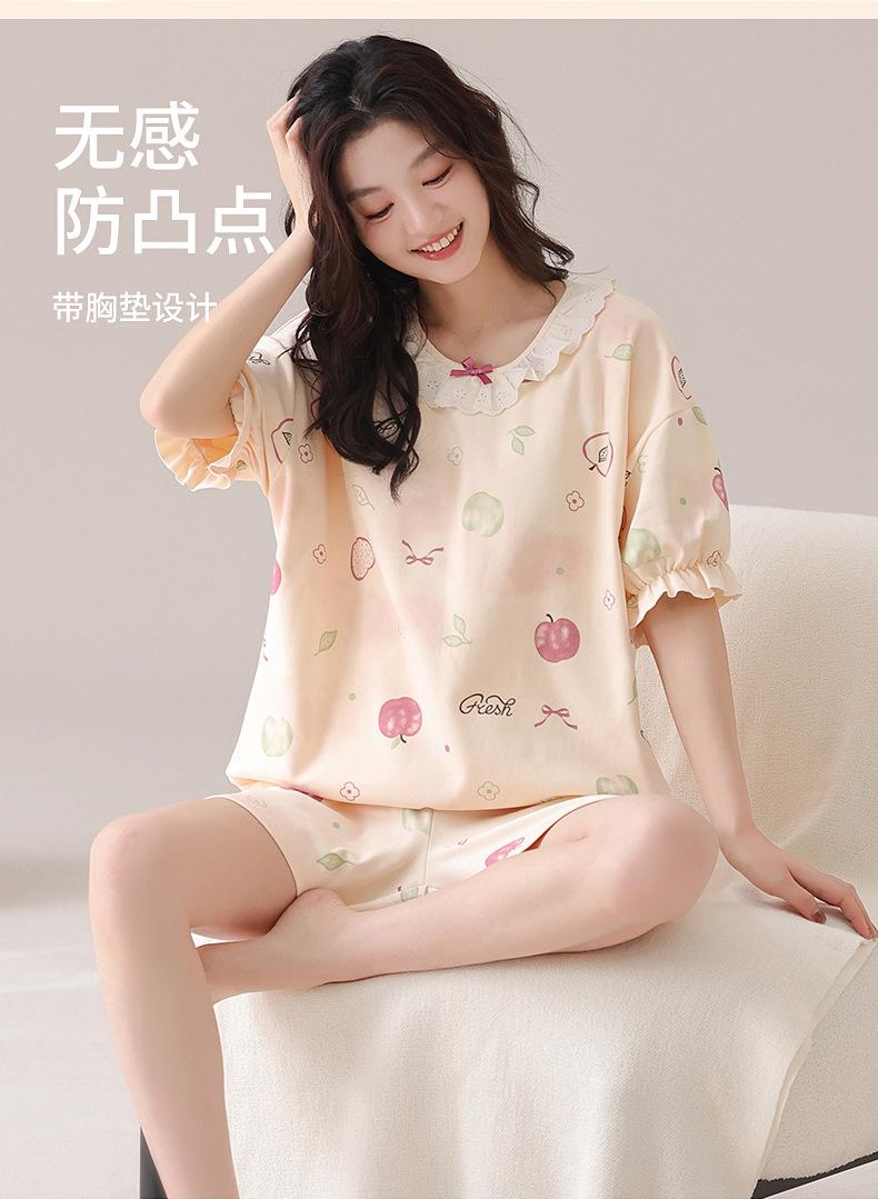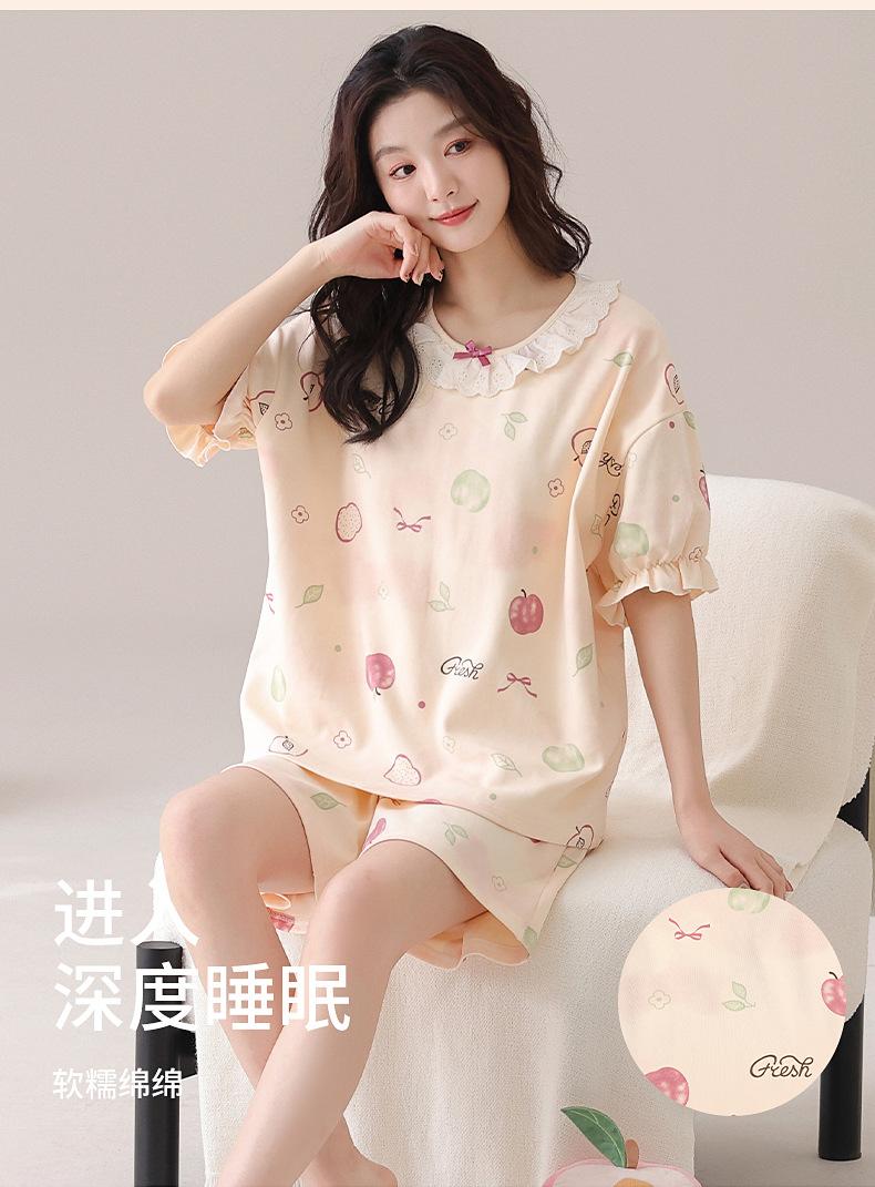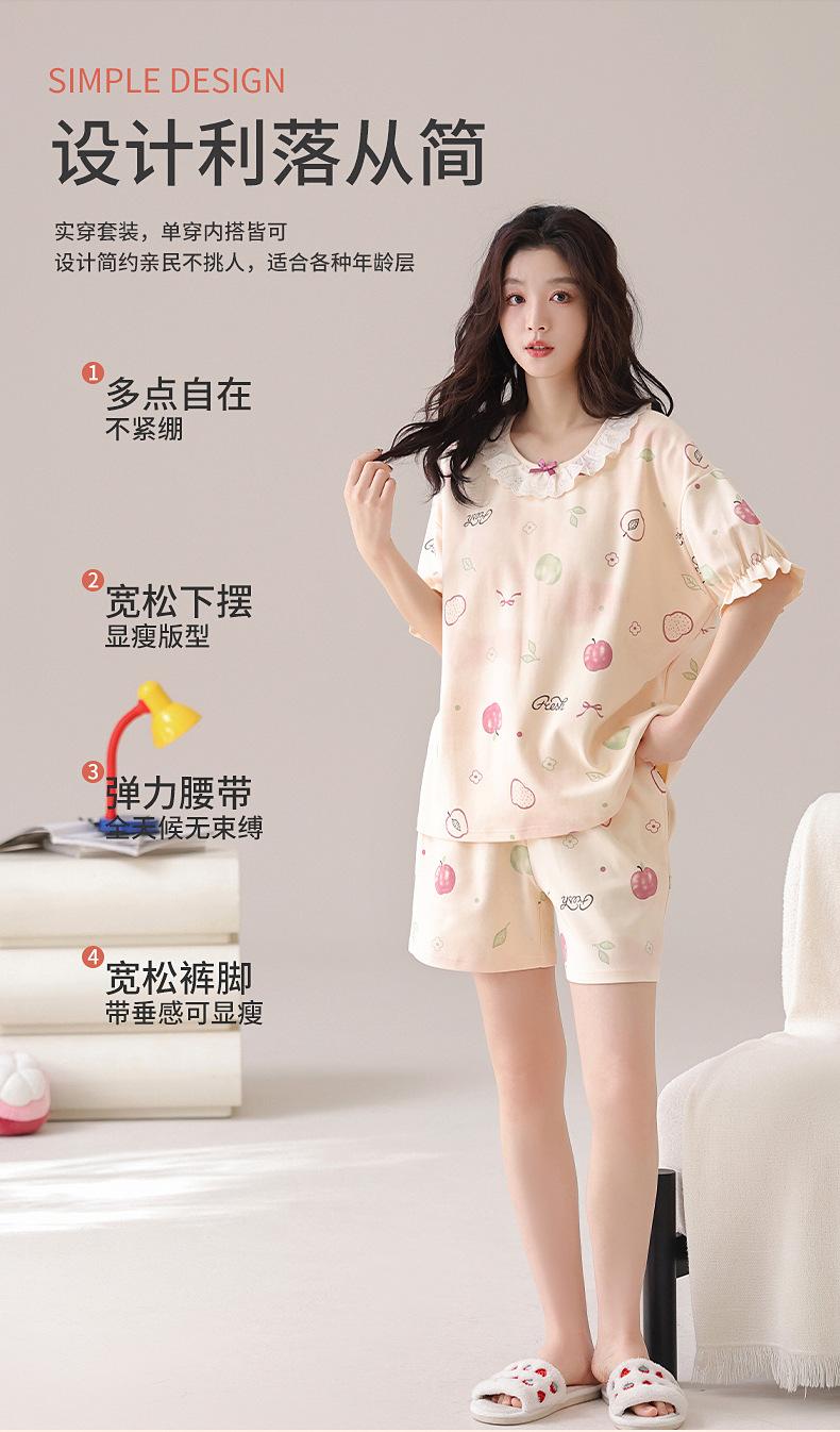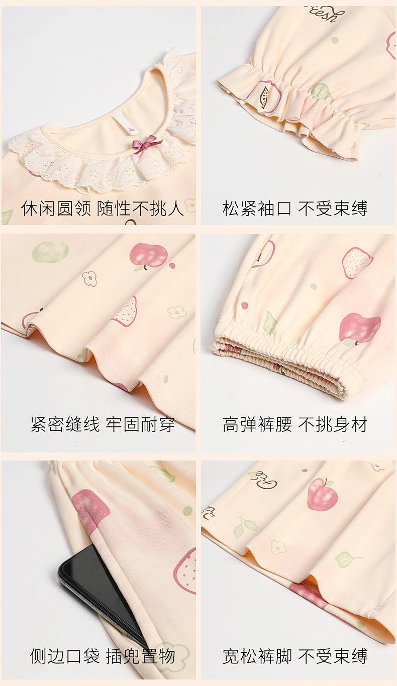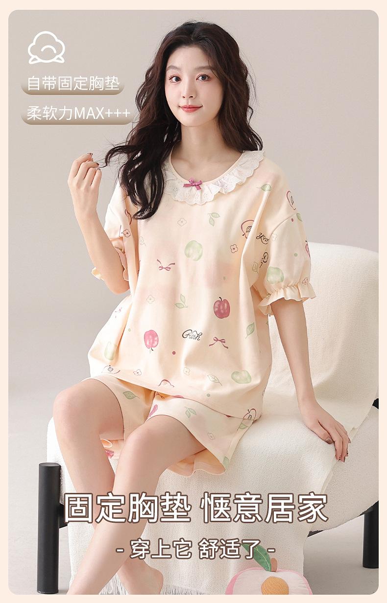 Pijama de algodón puro para mujer, de verano, de manga corta, para primavera y otoño, para el hogar, traje de dos piezas antigolpes.