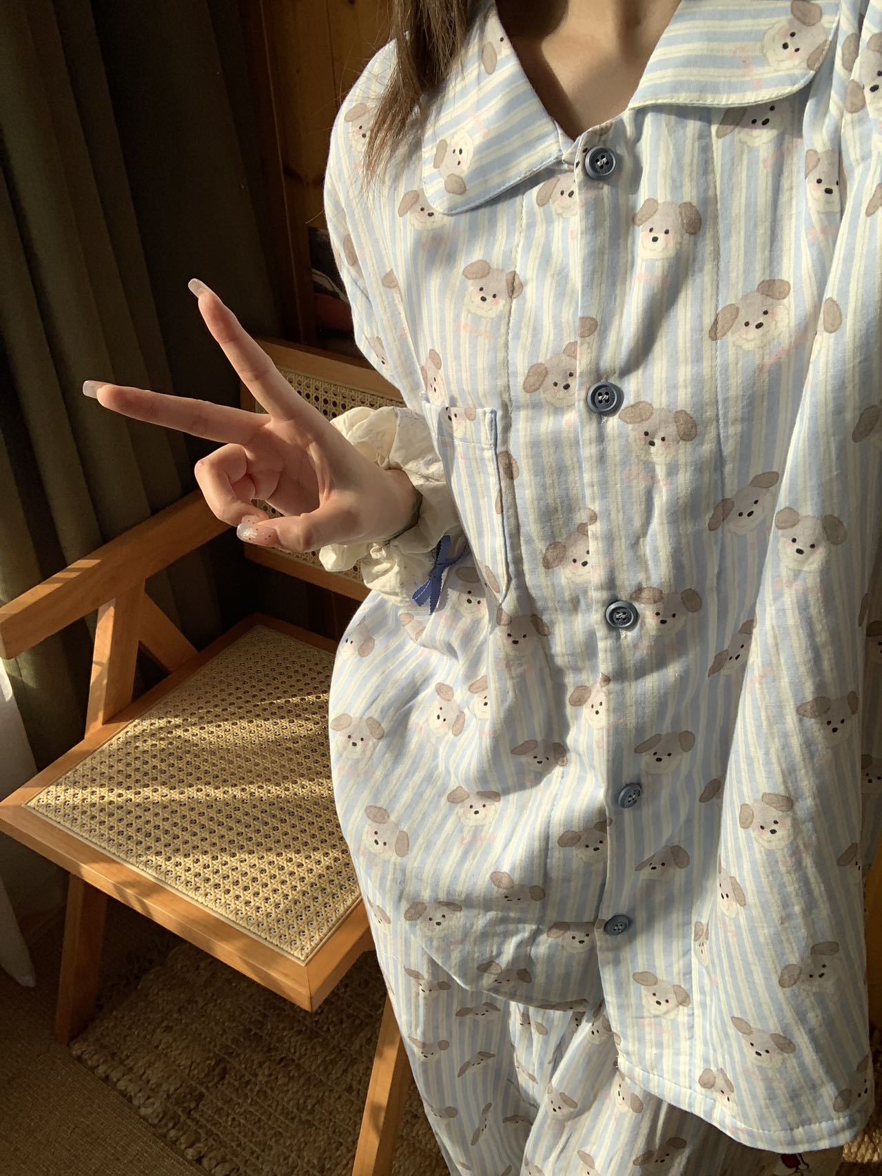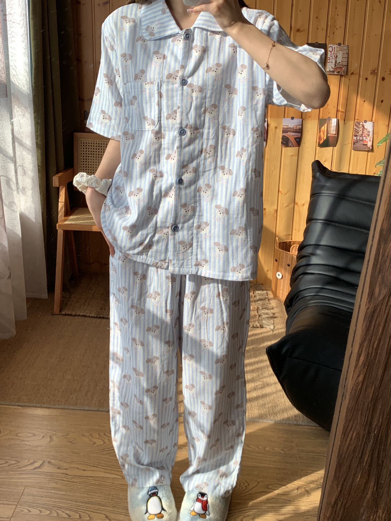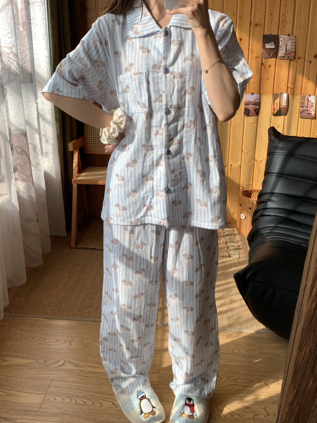 ¡Nuevo! Conjunto de pantalón de manga corta, pijama de algodón de doble gasa, ropa bonita y dulce para el hogar, pijama holgado de hilo de algodón.