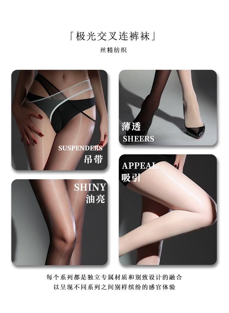Medias Nuevas Cross Aurora Tentación Sexy Entrepierna Abierta Verano Ultrafinas Pantalones Transparentes Seda Negra Diversión Libre Soltero