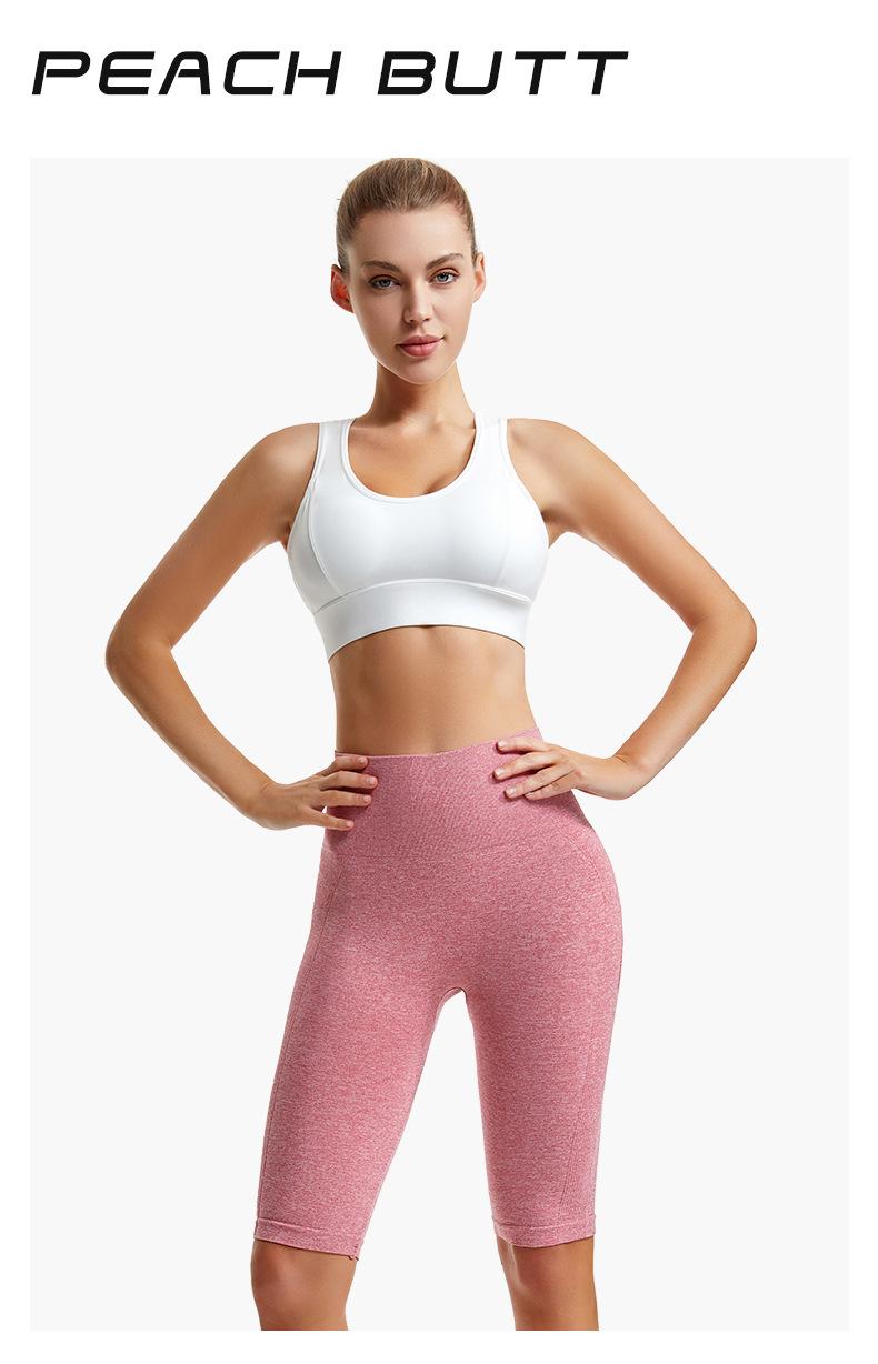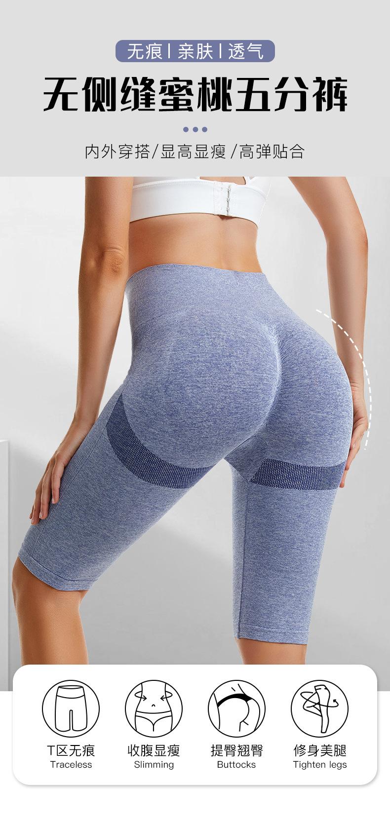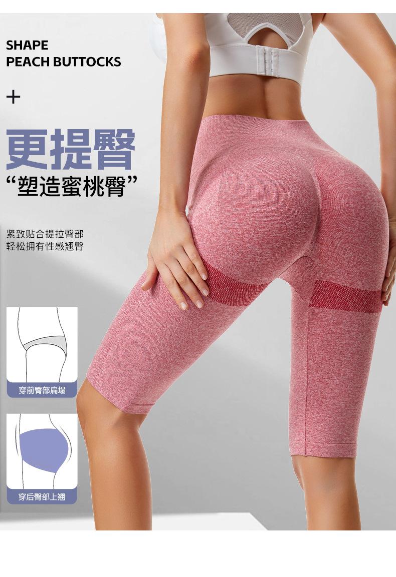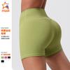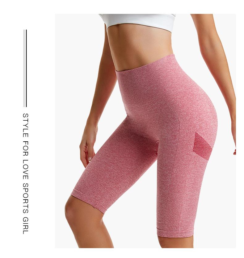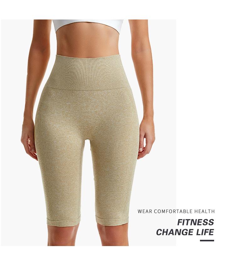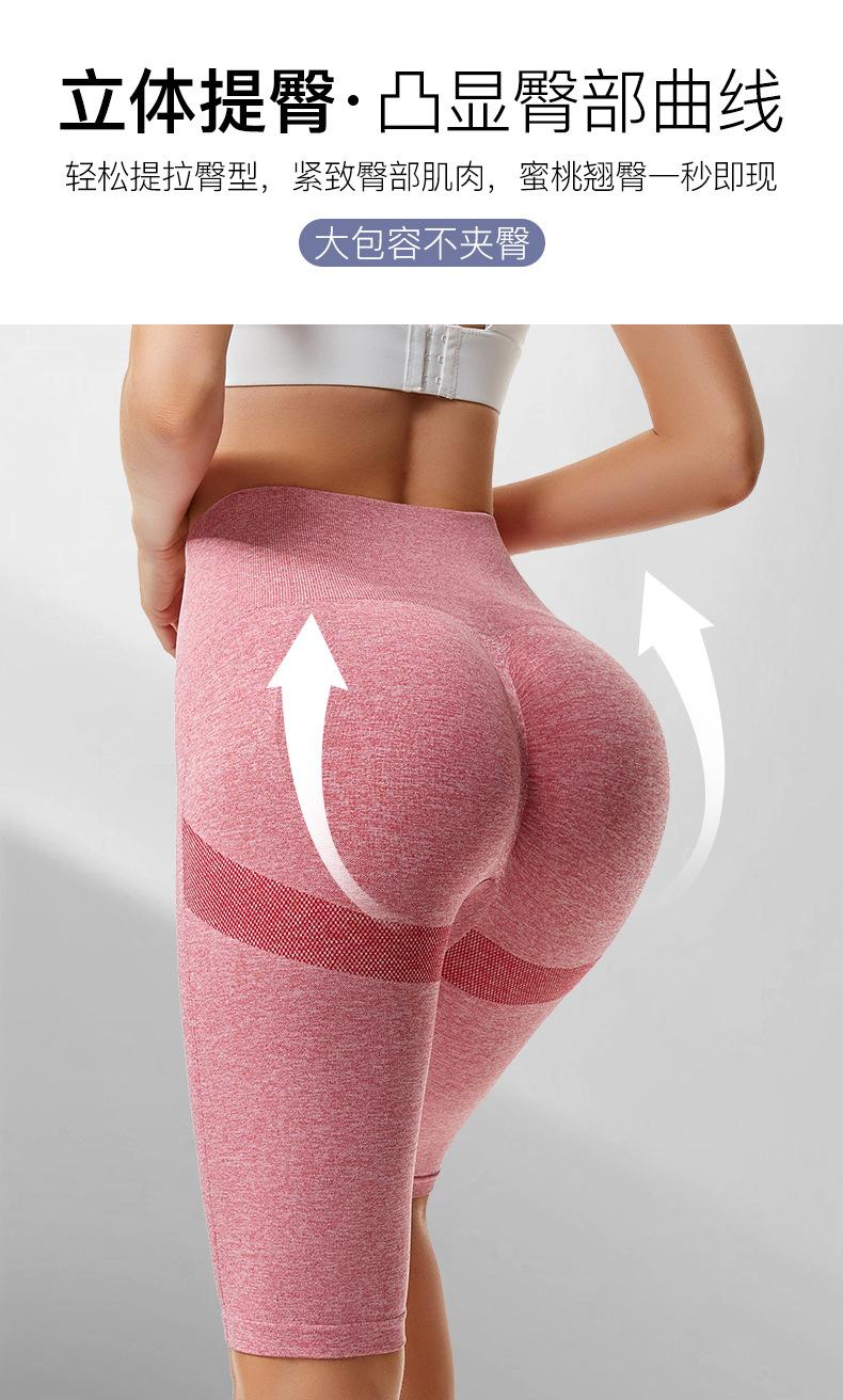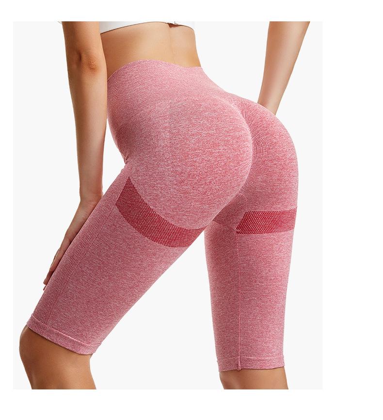 Pantalones cortos deportivos de fitness para mujer, de cintura alta, con realce de cadera y cinco puntos, ajustados, color melocotón, con cintura elástica alta y ajustados para el vientre.