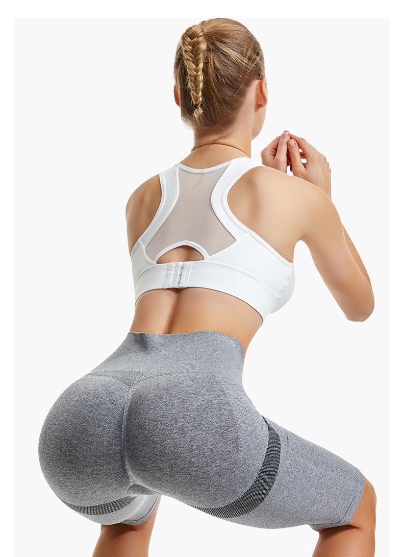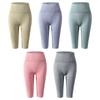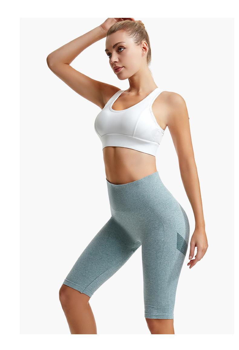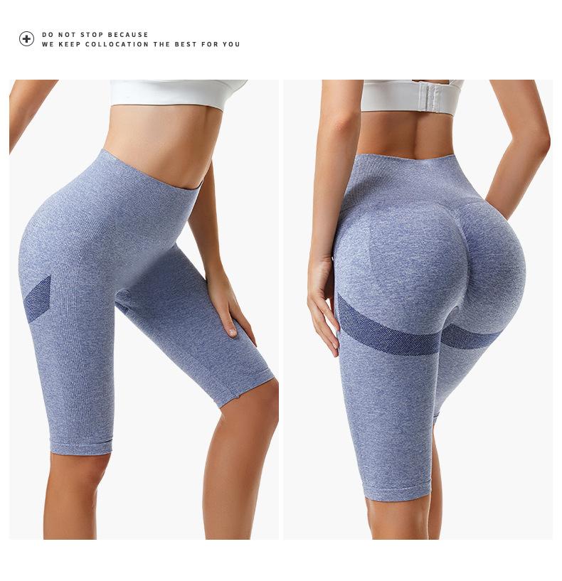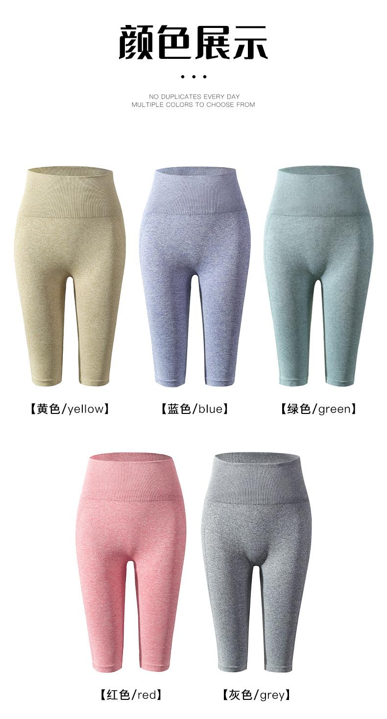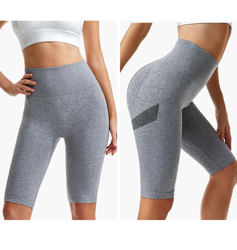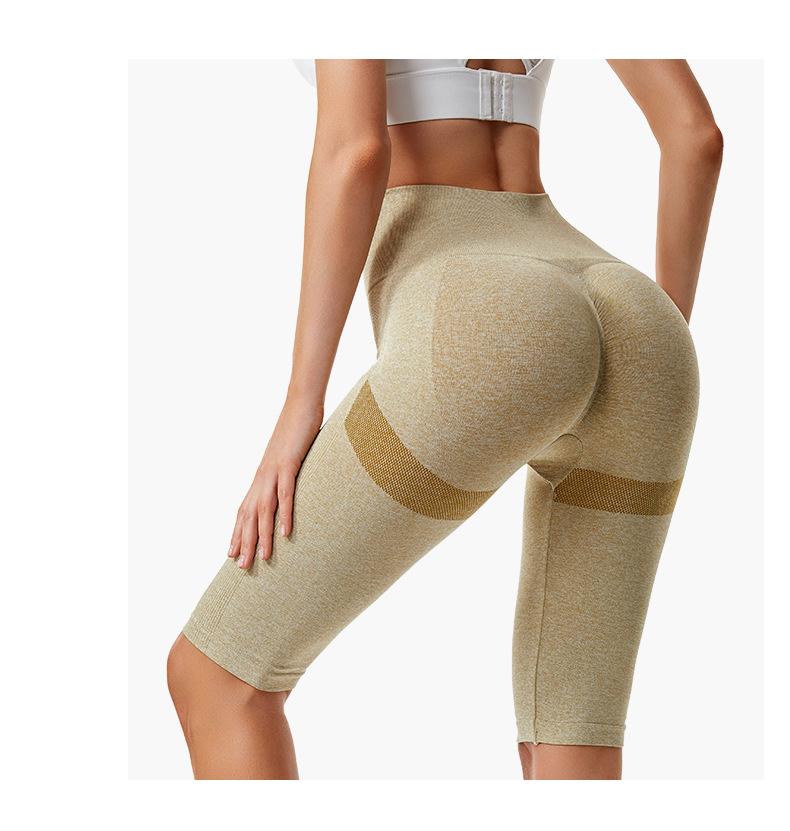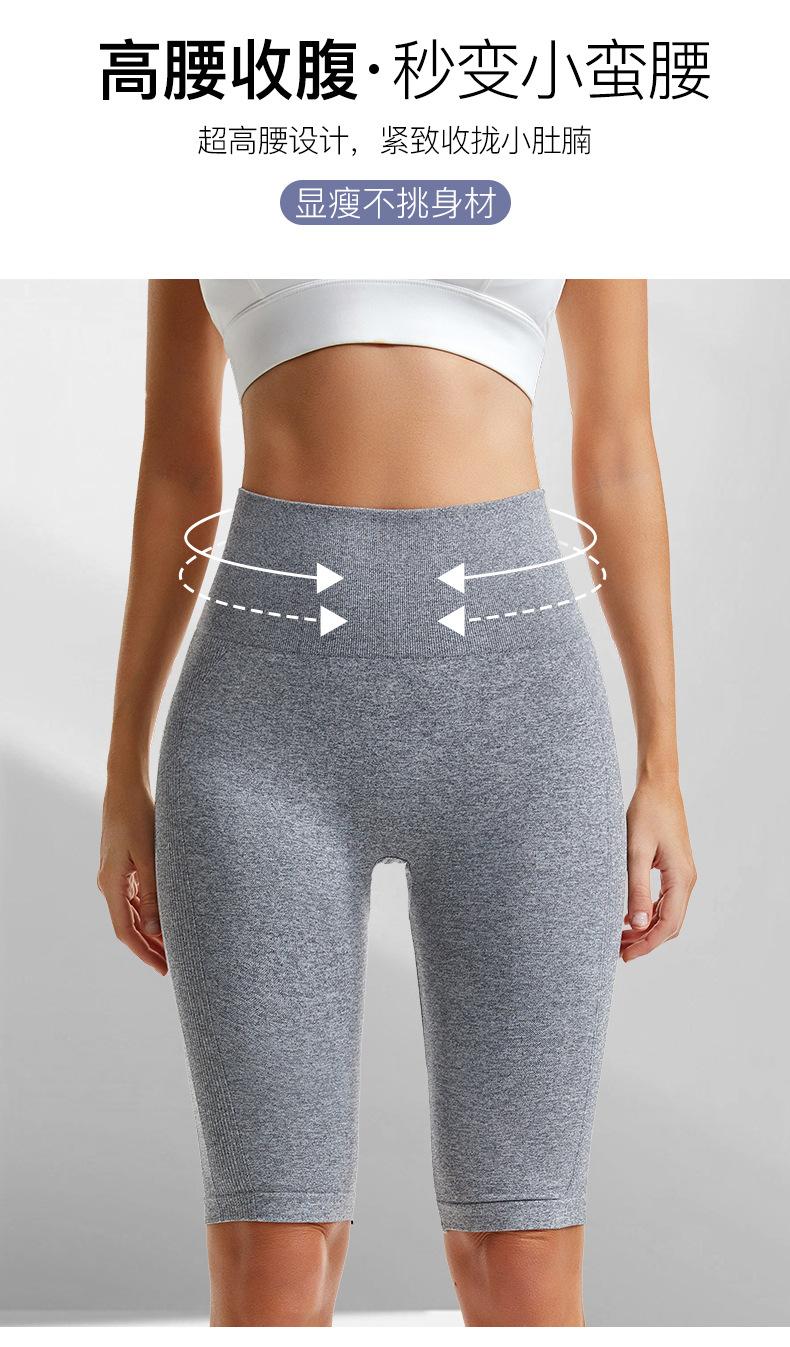 Pantalones cortos deportivos de fitness para mujer, de cintura alta, con realce de cadera y cinco puntos, ajustados, color melocotón, con cintura elástica alta y ajustados para el vientre.