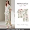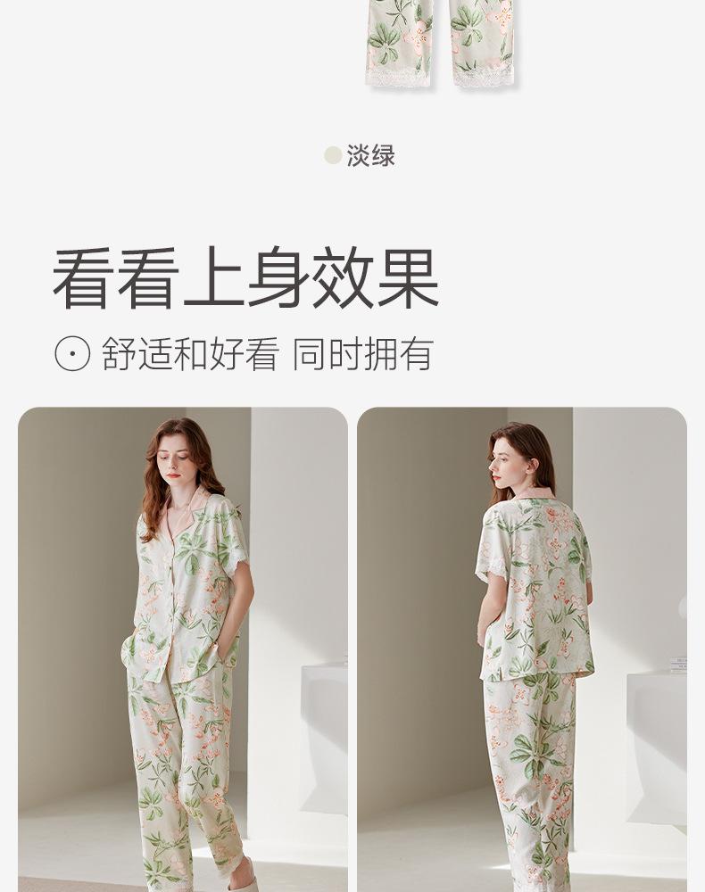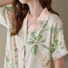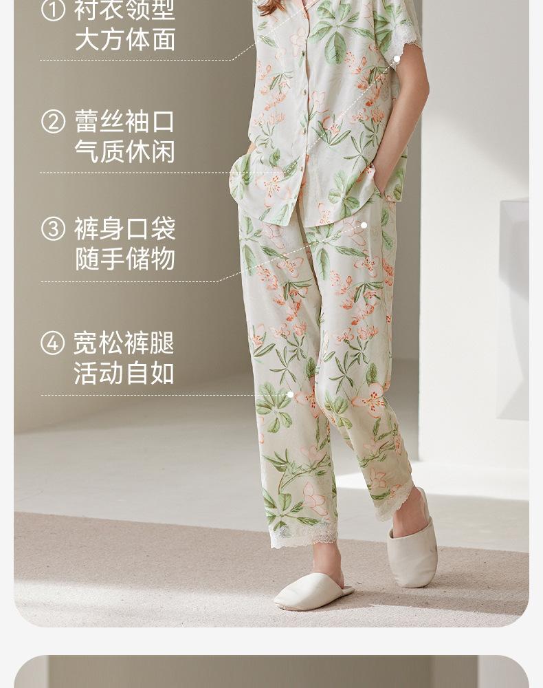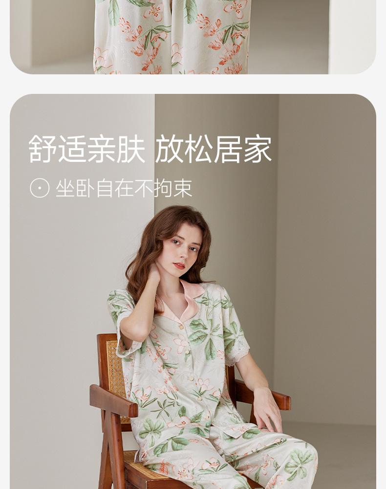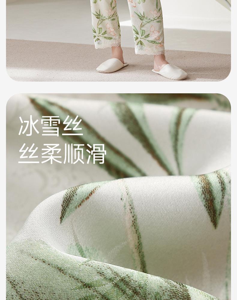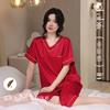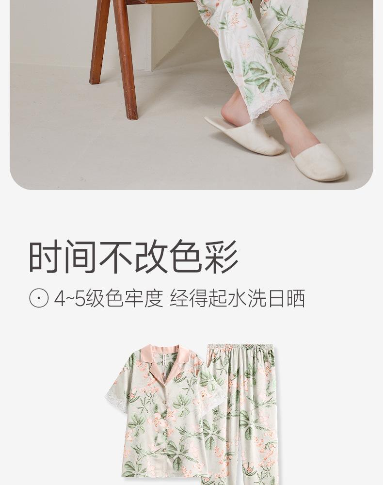 [Seda de Hielo] Pijama de Verano para Mujer Set de Manga Corta de Seda de Hielo Encaje Floral de Alta Gama Holgado Casual Ropa para el Hogar