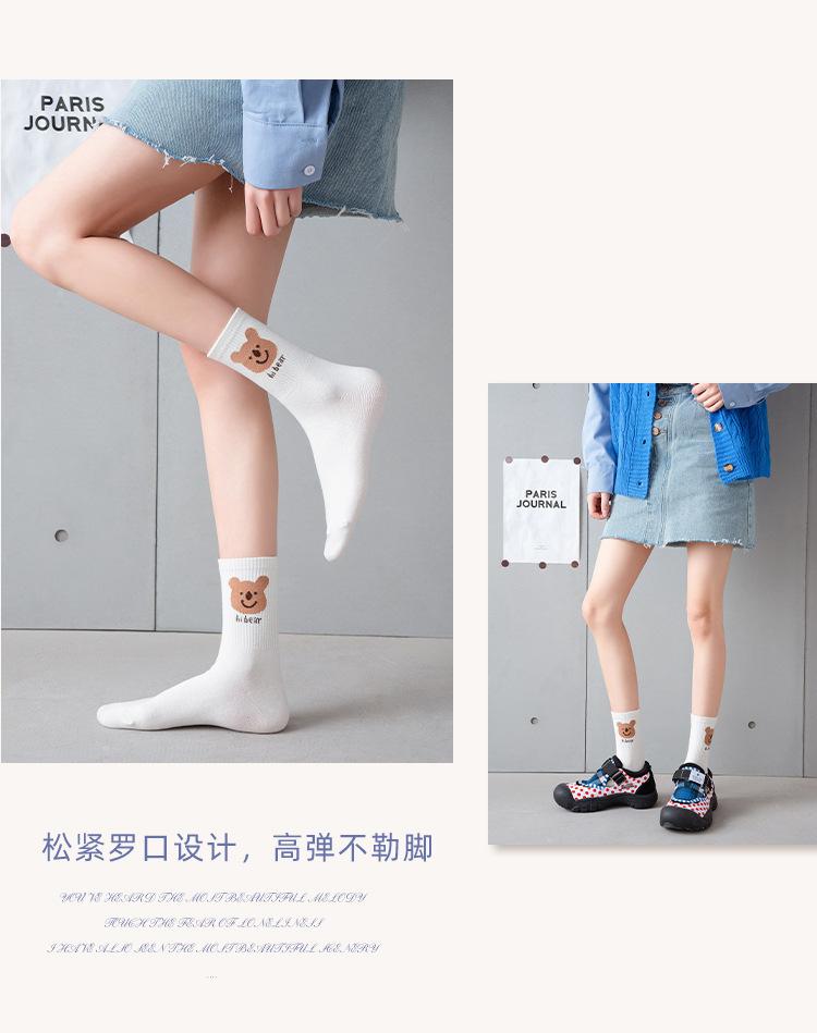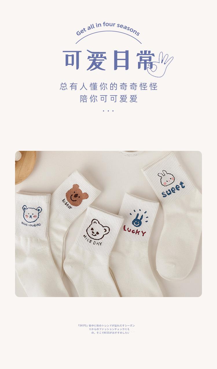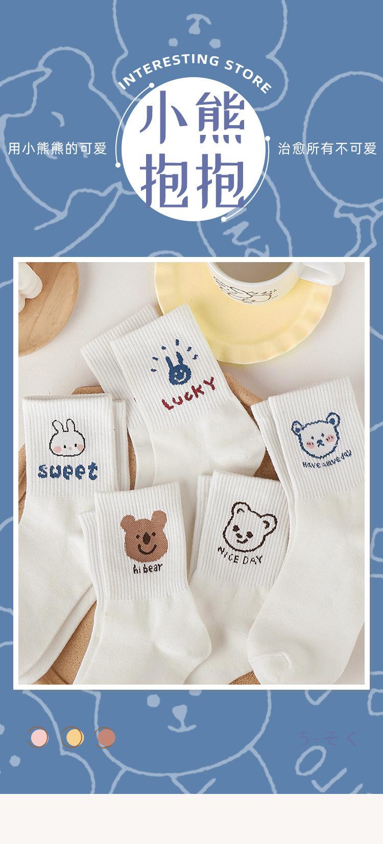 Calcetines de mujer primavera y otoño delgados oso blanco lindo versátil desodorante media pantorrilla Verano ins medias de moda para estudiantes