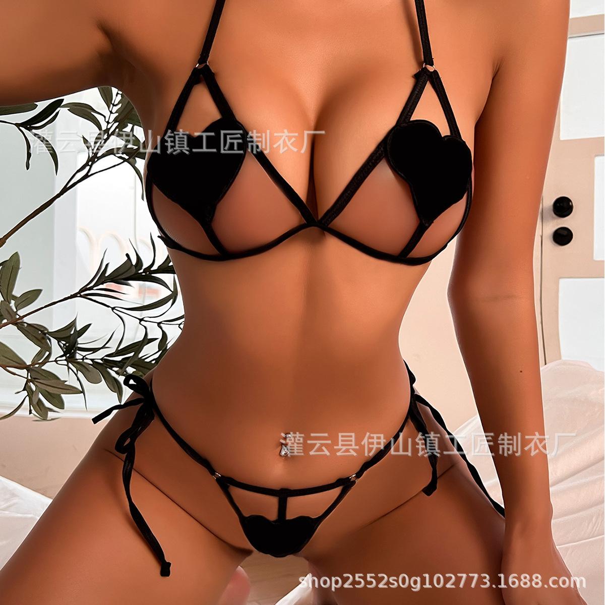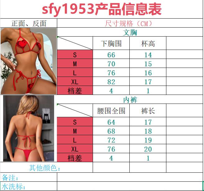 Suministro Transfronterizo Europeo y Americano Nuevo Sexy Tentación Sexy Amor Conjunto de Brasier de Tres Puntos Encaje Rojo Femenino Estilo Pura Lujuria
