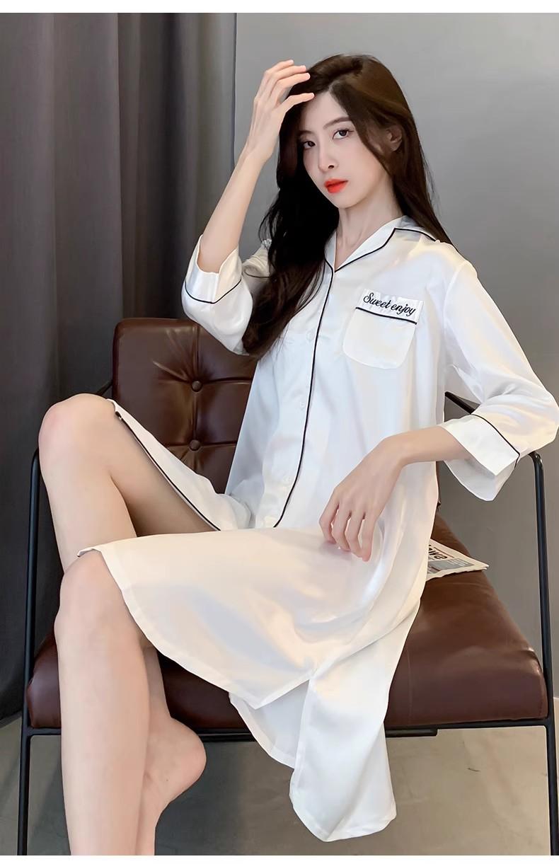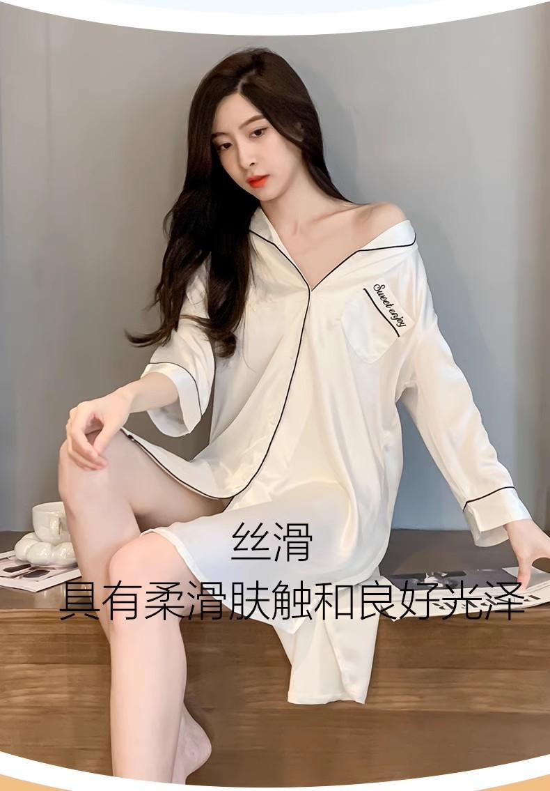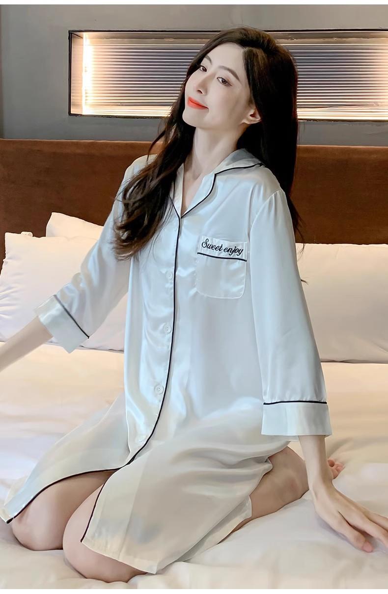 2025 Nuevo Camisón Pijama para Mujer Verano Seda de Hielo Sexy de Alta Gama Camisa Blanca Delgada Ropa de Casa Verano Seda