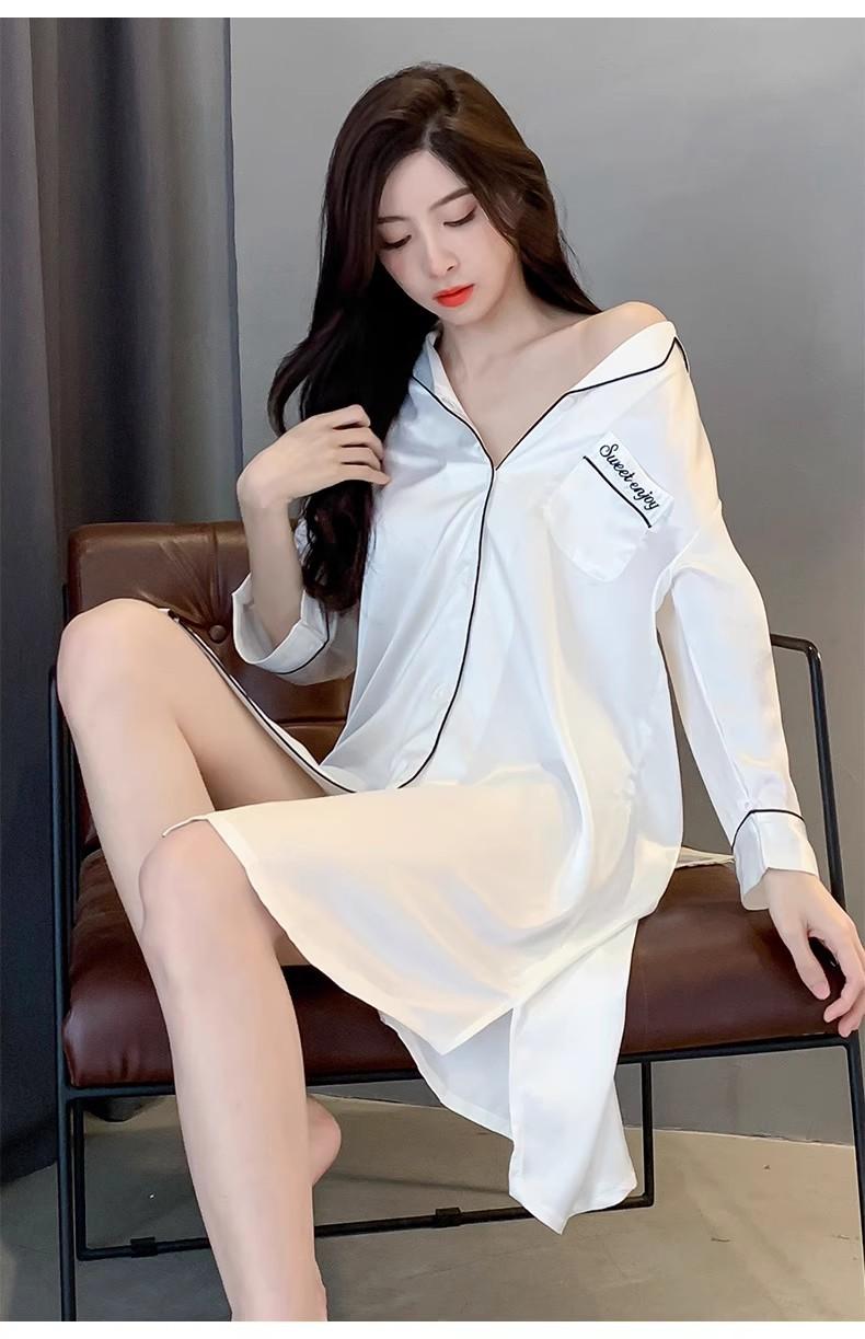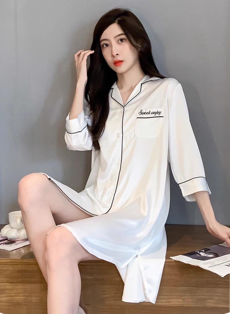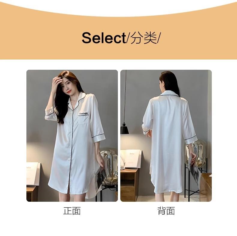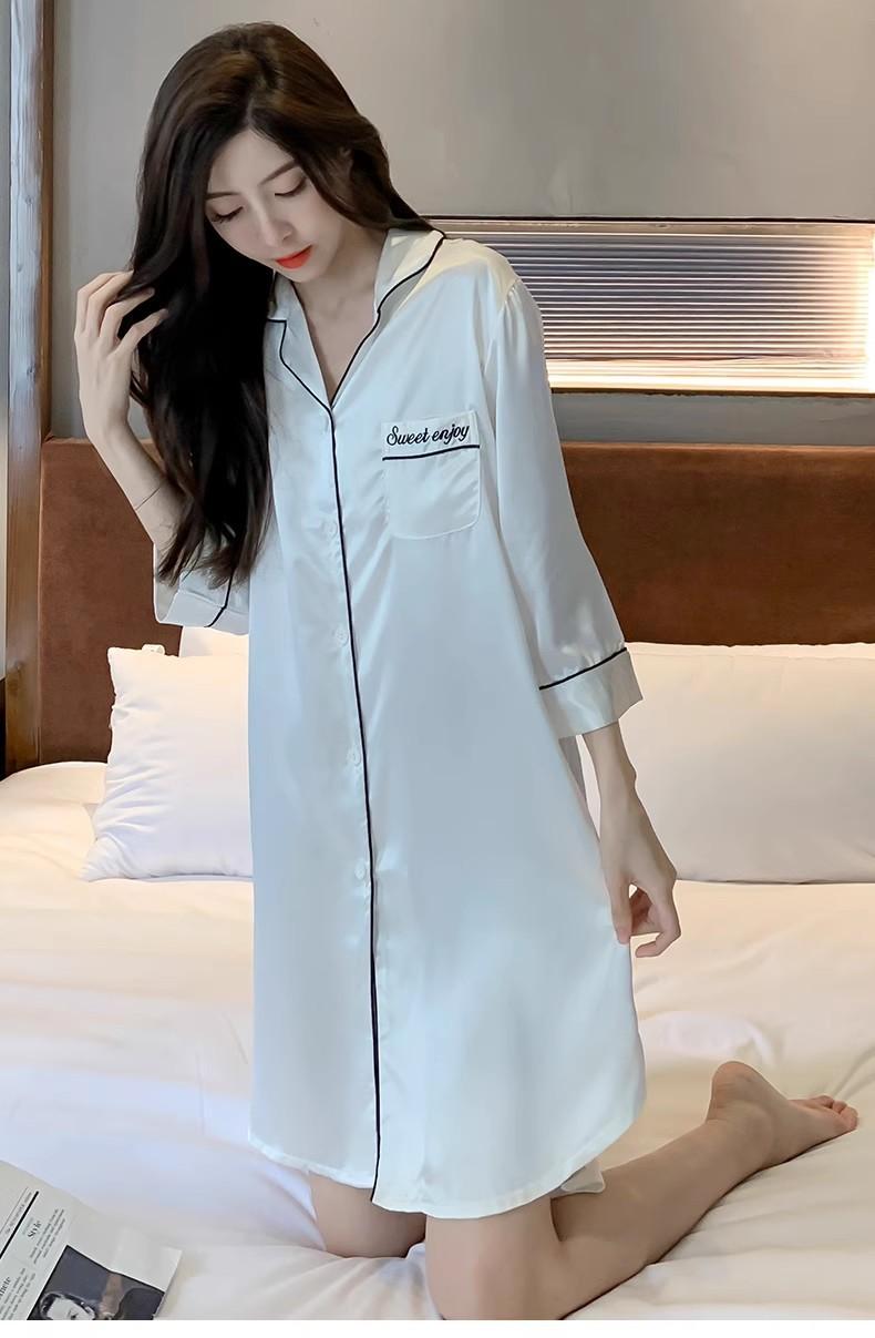 2025 Nuevo Camisón Pijama para Mujer Verano Seda de Hielo Sexy de Alta Gama Camisa Blanca Delgada Ropa de Casa Verano Seda