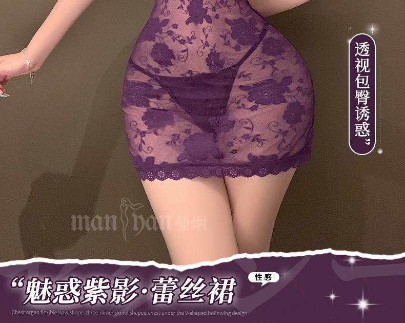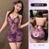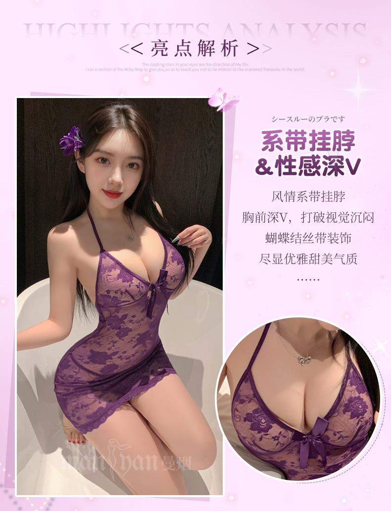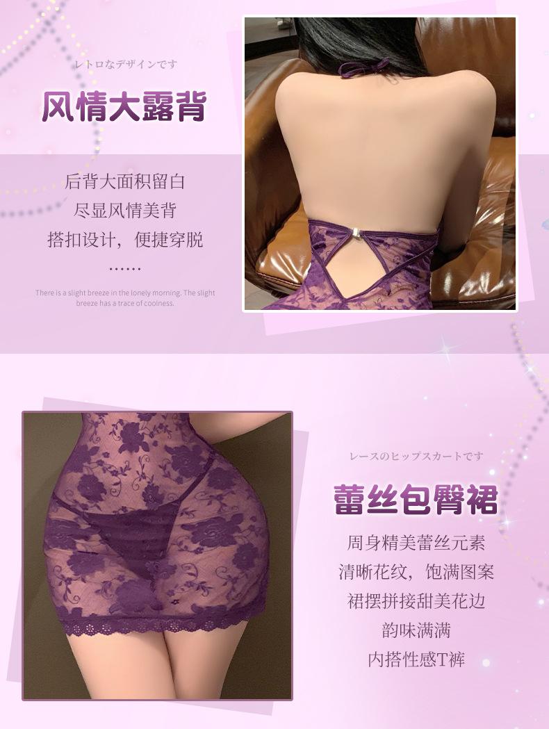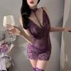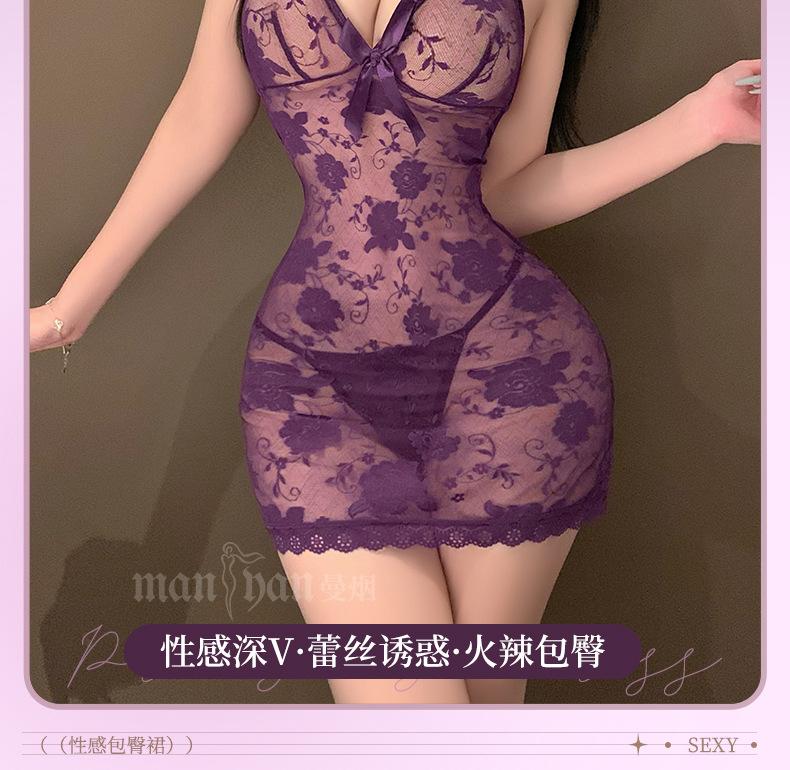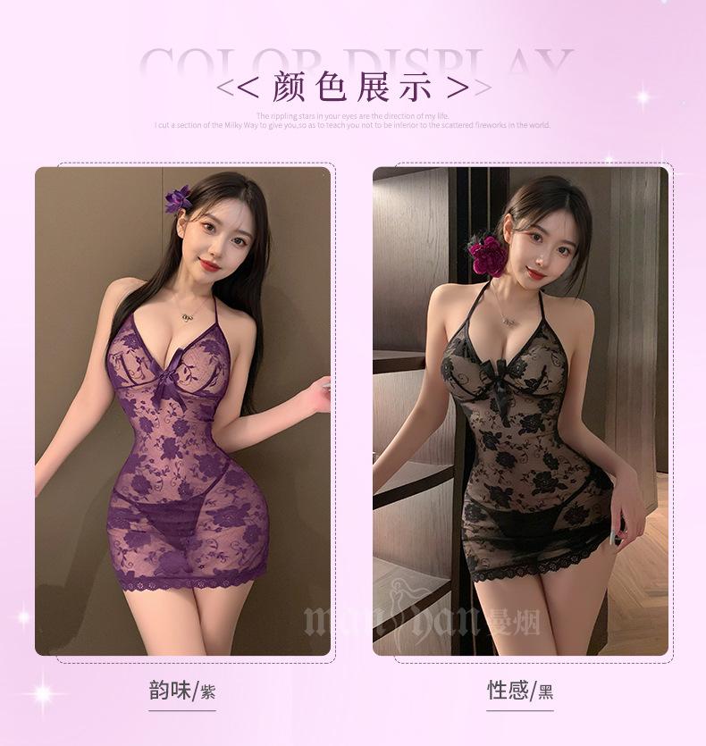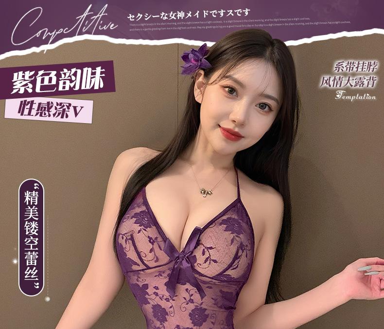 Lencería Sexy para Mujer Sexy Corte Profundo en V Encaje Halter Estampado de Encaje Transparente Camisón Cubre Caderas 100179