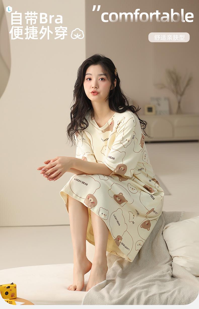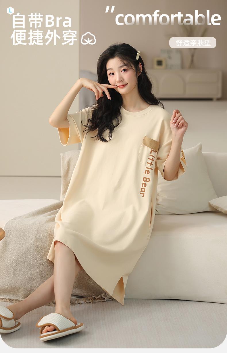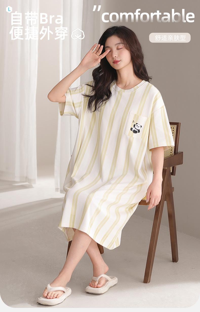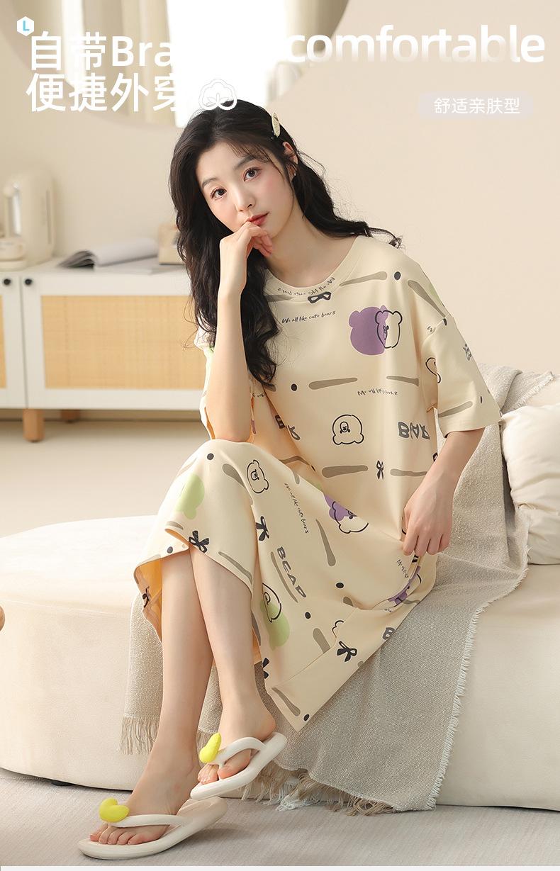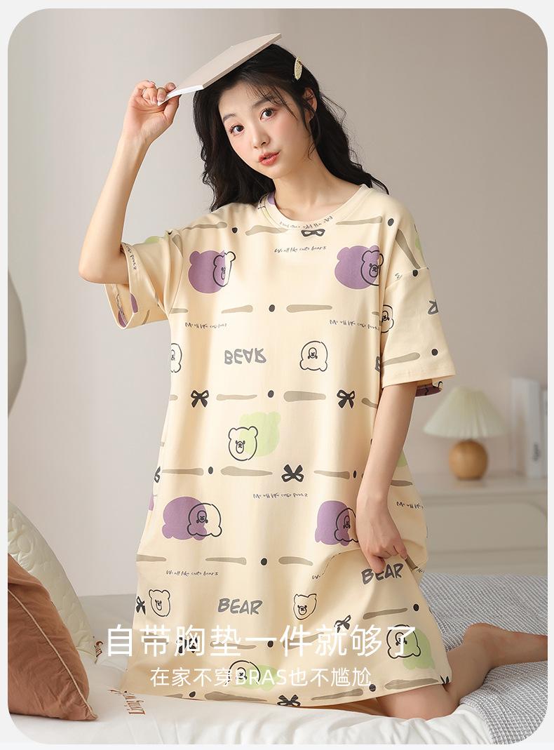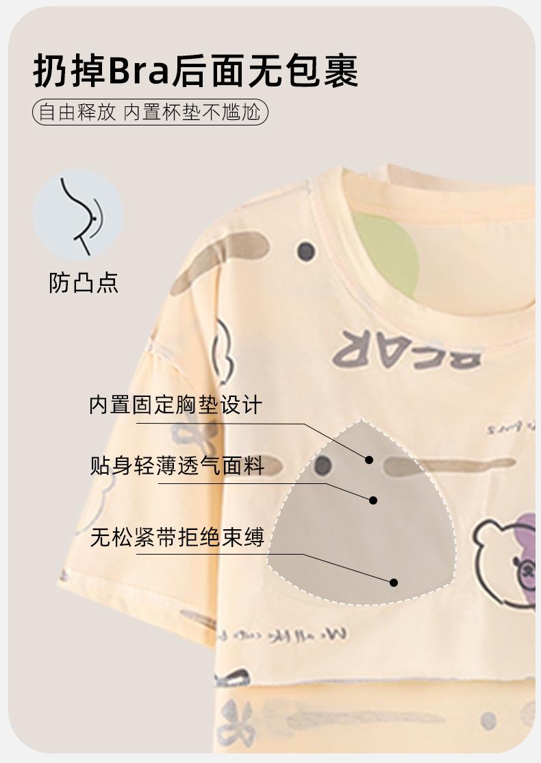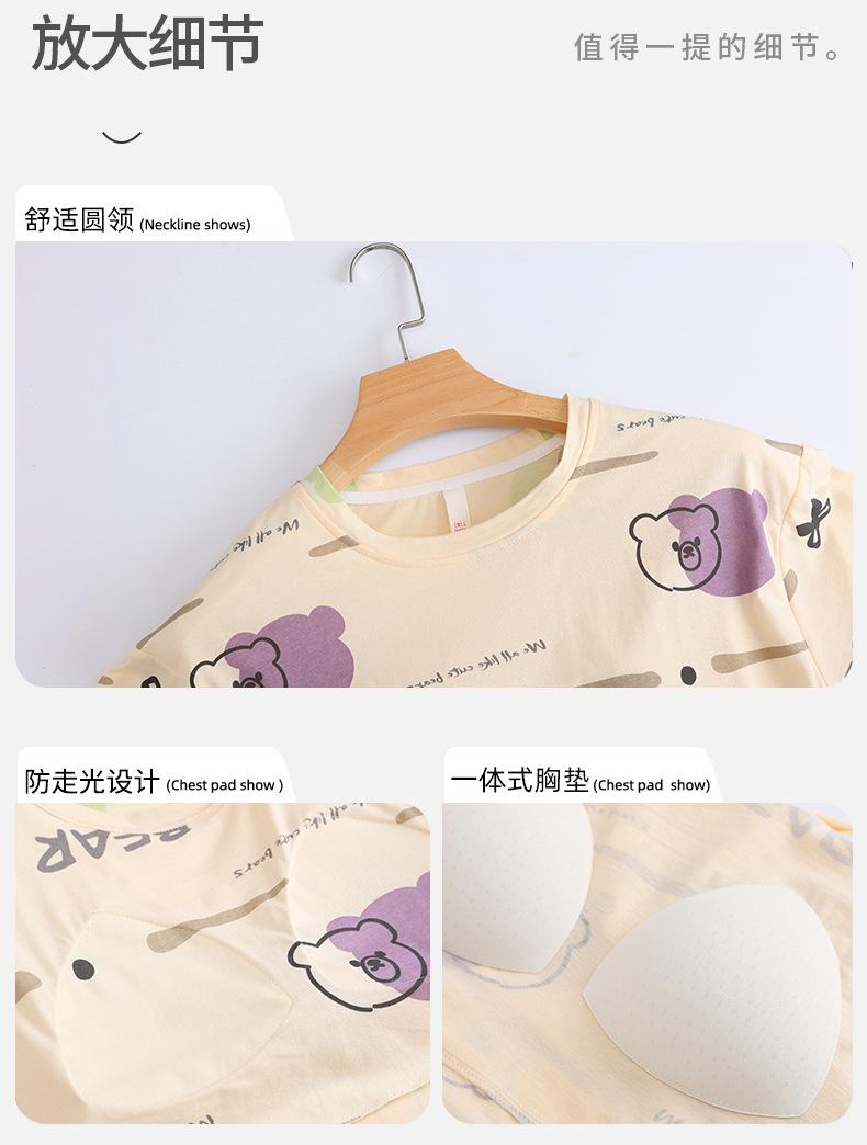 Pijama de algodón puro de manga corta con almohadilla para el pecho para mujer, traje de verano, bonito, holgado, informal, para el hogar, para exteriores