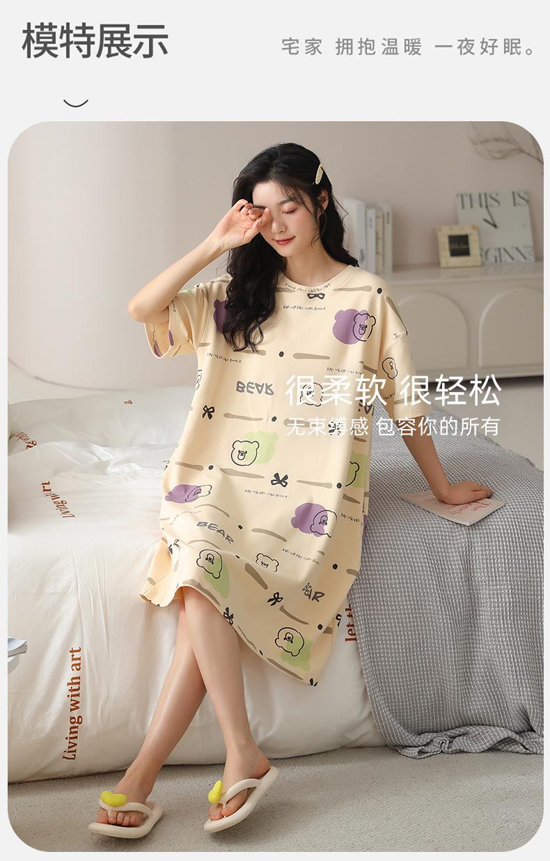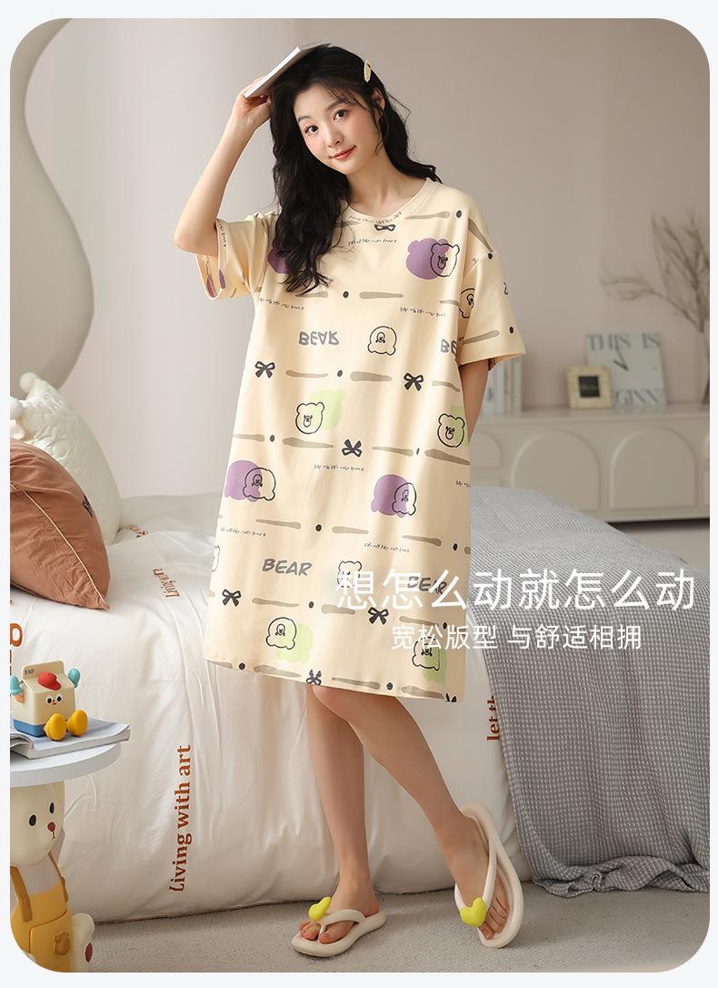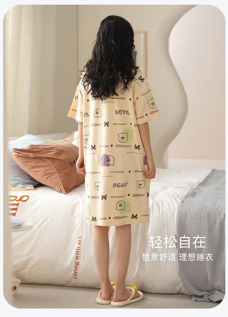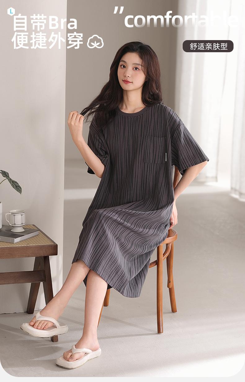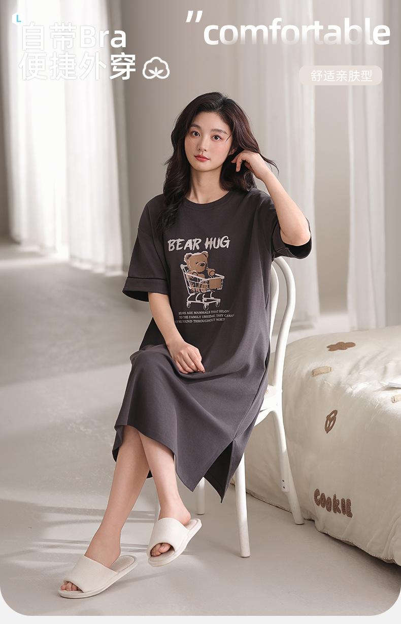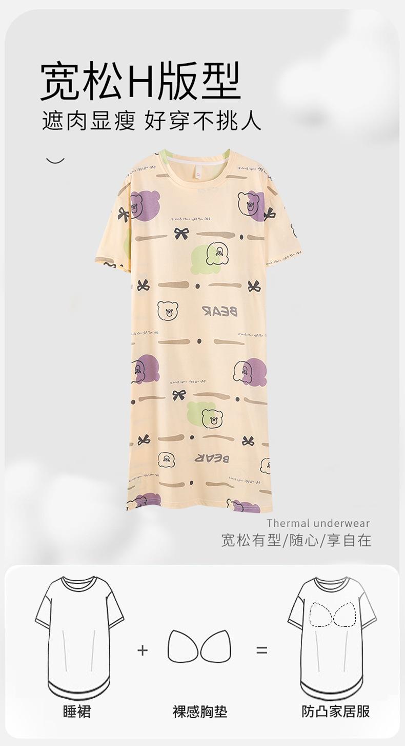 Pijama de algodón puro de manga corta con almohadilla para el pecho para mujer, traje de verano, bonito, holgado, informal, para el hogar, para exteriores