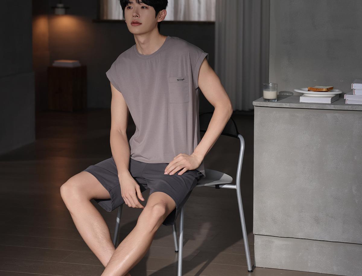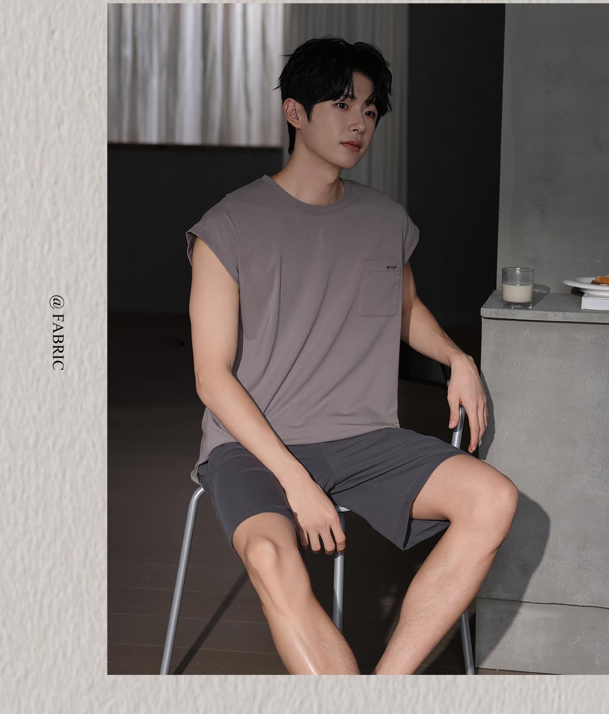 [Sensación Suave Algodón Puro] Pijama de Verano para Hombre Fresco Camiseta sin Mangas Shorts Talla Grande Alta Calidad Ropa de Casa Traje de Algodón