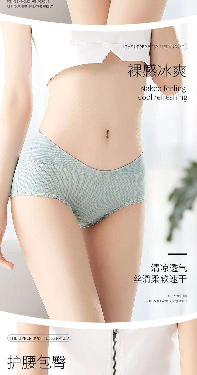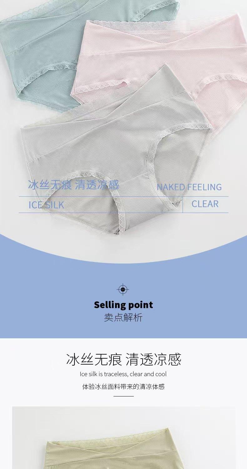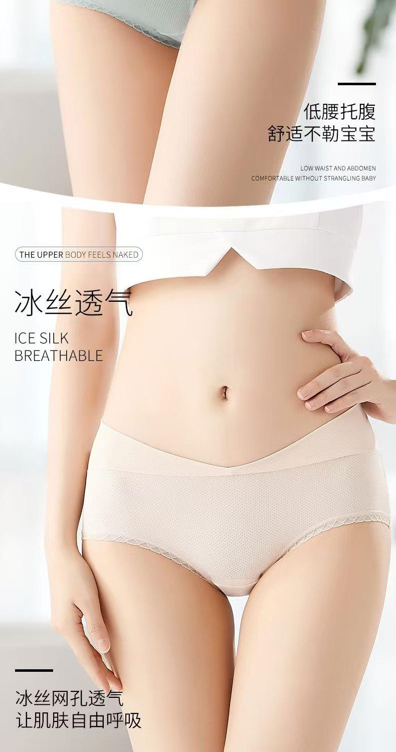 Ropa interior para embarazadas, fina, de seda helada, de verano, de cintura baja, transpirable, que sujeta el abdomen durante el embarazo, prenatal y posparto.