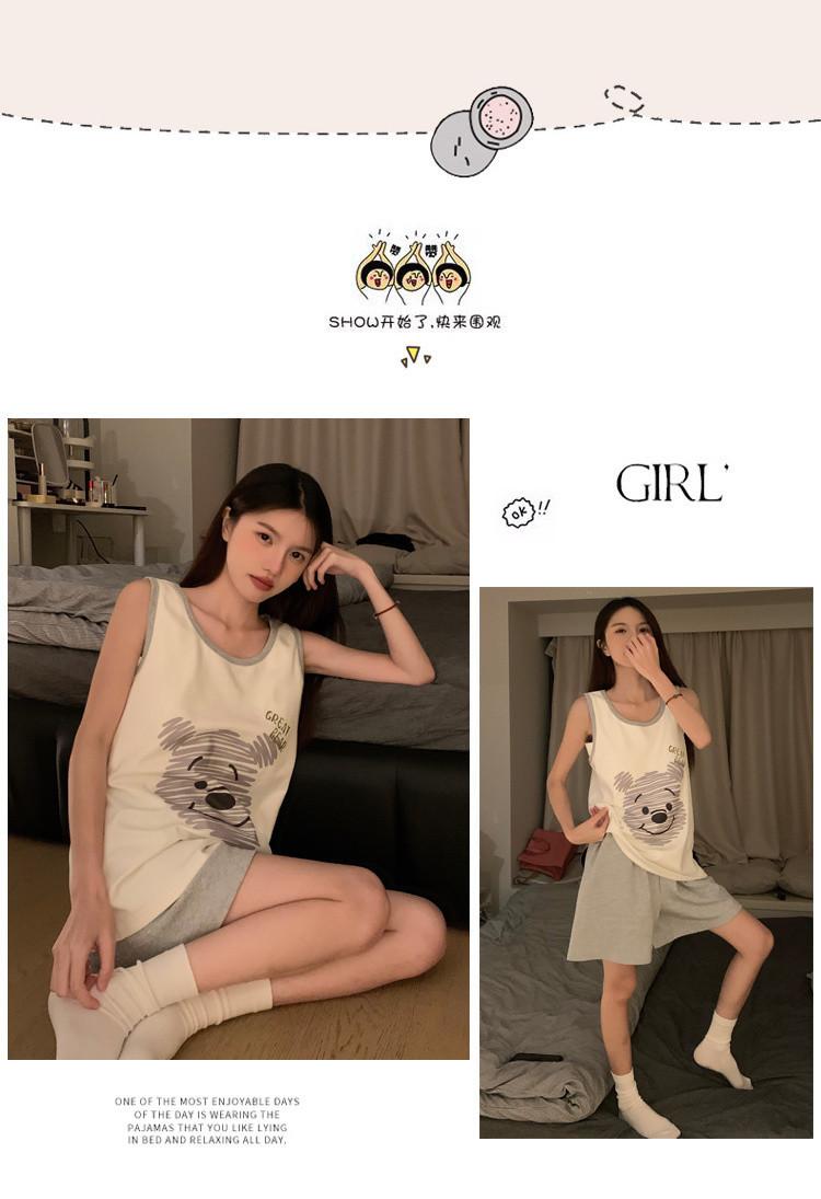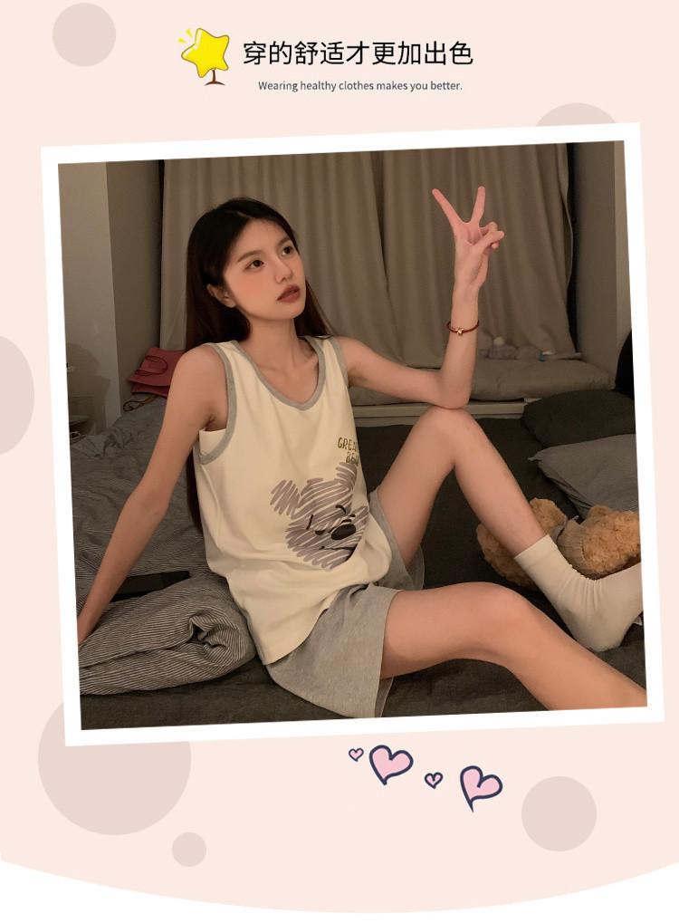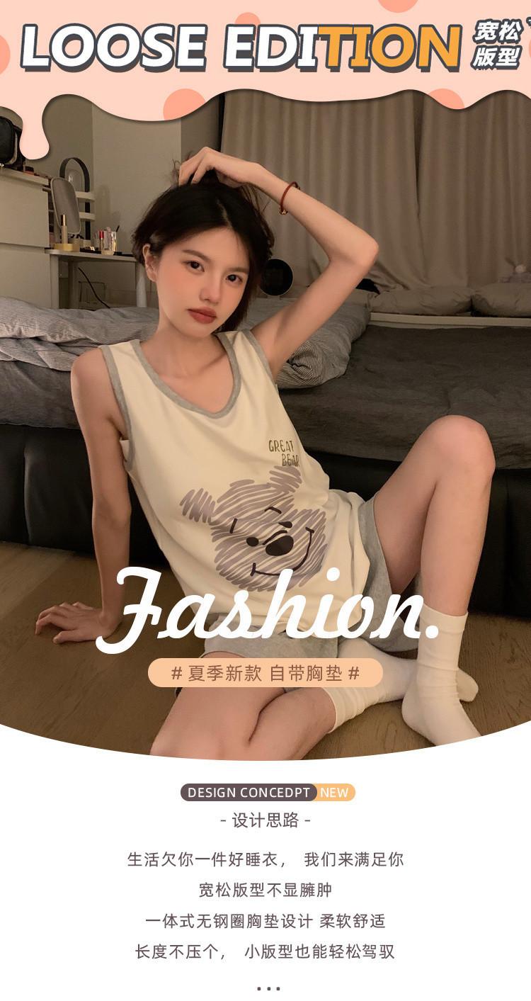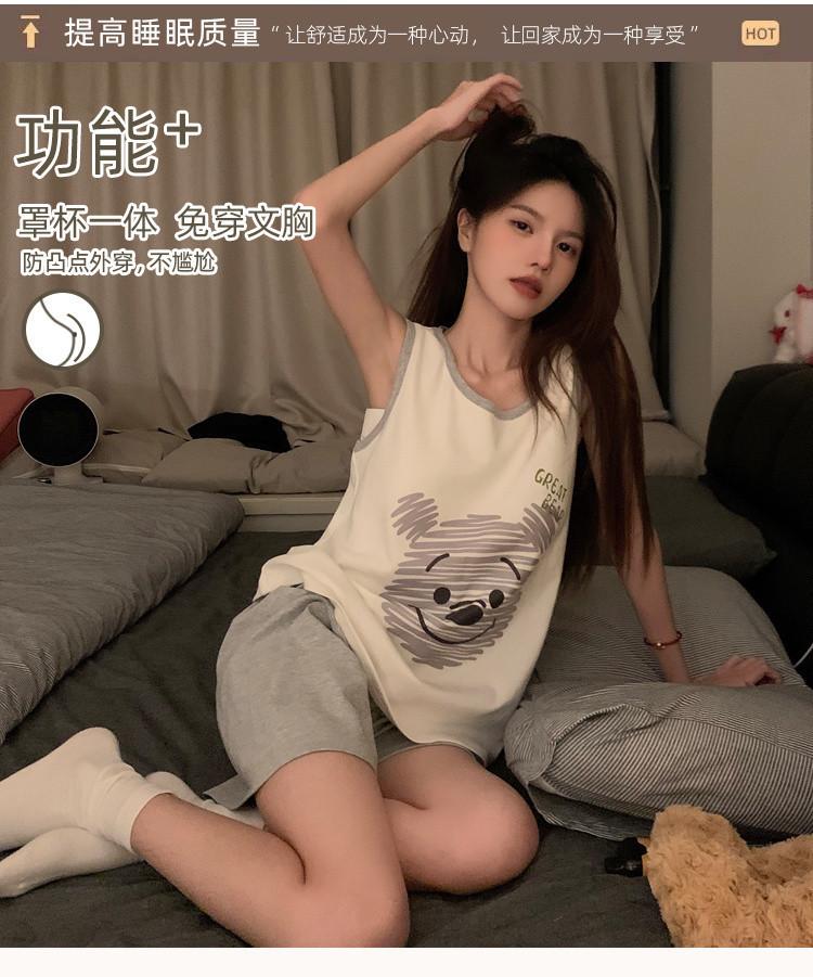 Gran Venta Pijama Chaleco sin Mangas para Mujer Verano con Almohadillas para el Busto Nuevo Estilo Caliente Set de Ropa de Casa de Verano Se Puede Usar Afuera