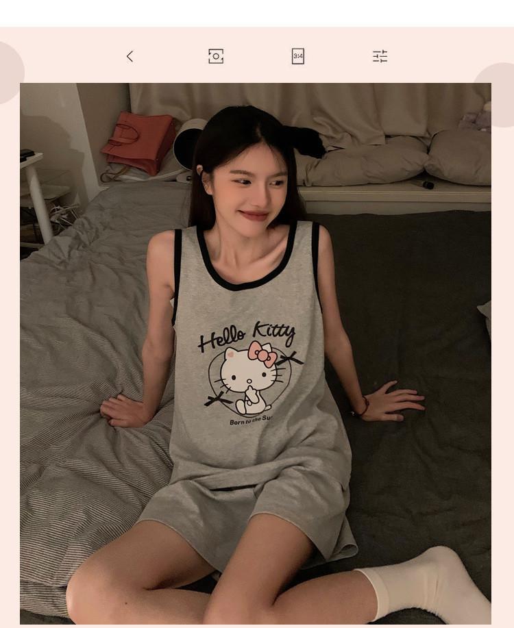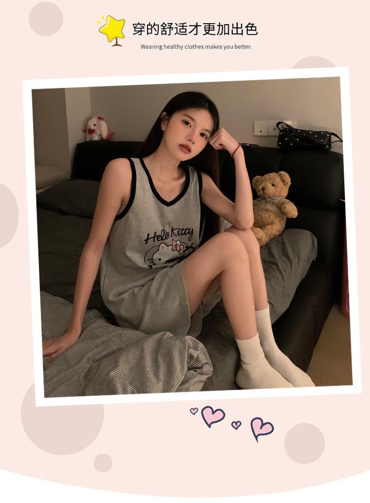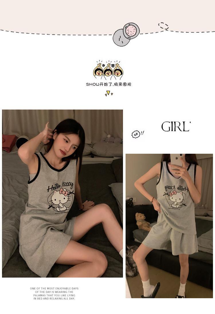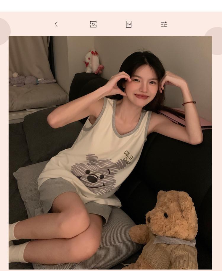 Gran Venta Pijama Chaleco sin Mangas para Mujer Verano con Almohadillas para el Busto Nuevo Estilo Caliente Set de Ropa de Casa de Verano Se Puede Usar Afuera