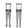 Medias de seda de una pieza con tirantes, sexys y brillantes, con aceite de caballo 8D, sedosas, huecas, de encaje de hibisco, hasta la rodilla, de seda negra.