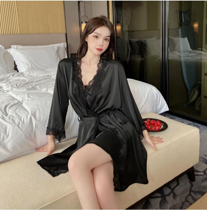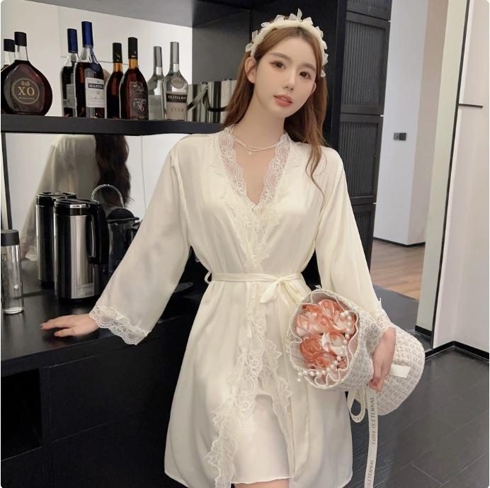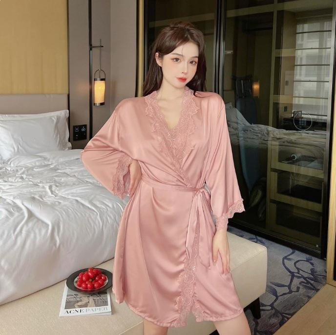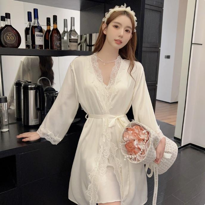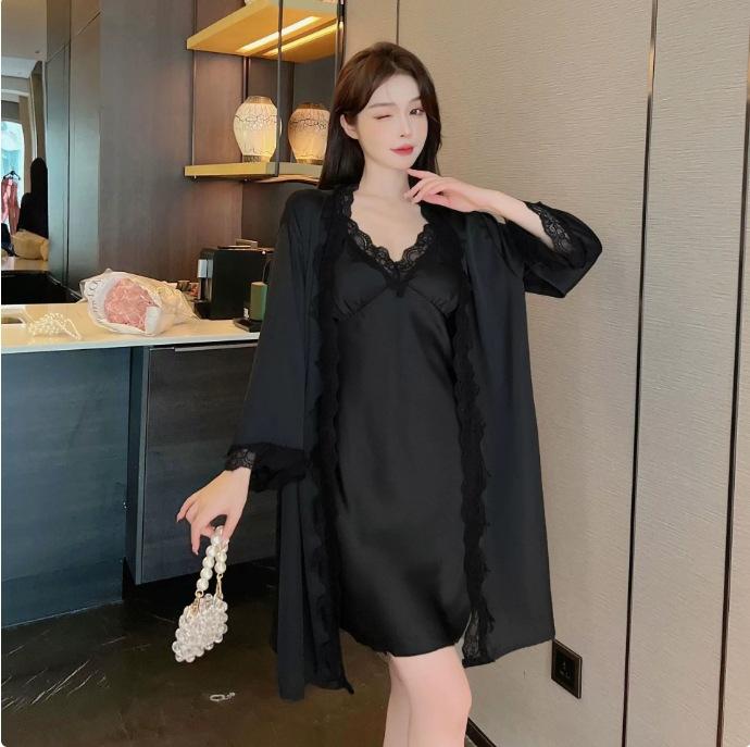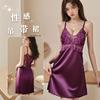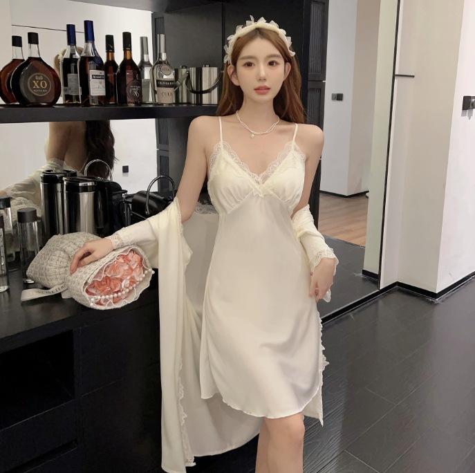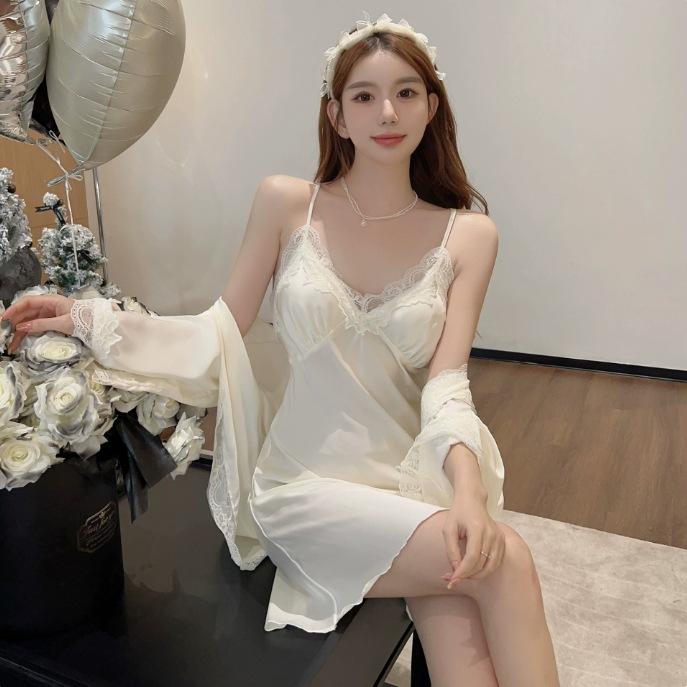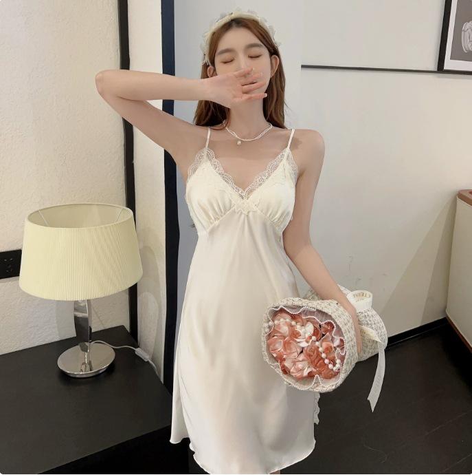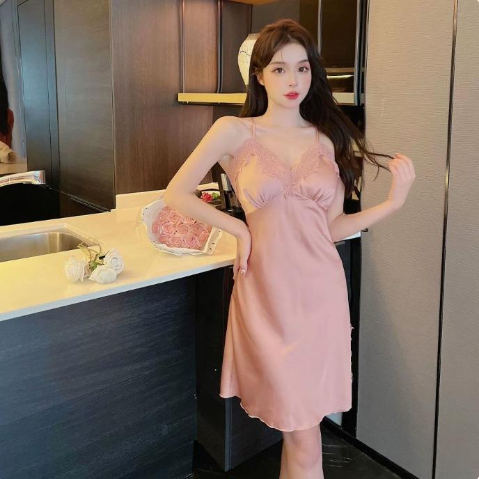 Pijama de Seda de Hielo para Mujer 2025 Nuevo Estilo Deseo Puro Camisón de Tirantes Bata de Verano Encaje Espalda Hermosa Ropa para el Hogar Seda de Hielo Sensación Fresca