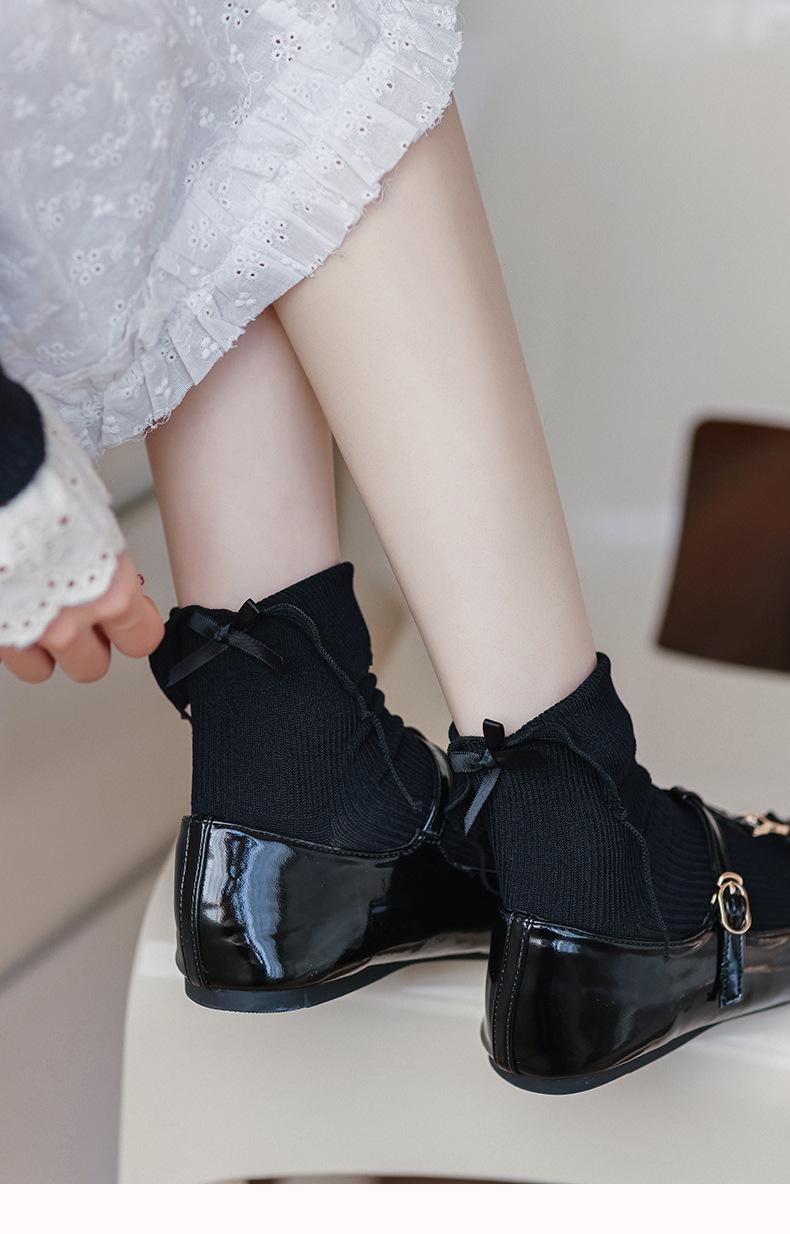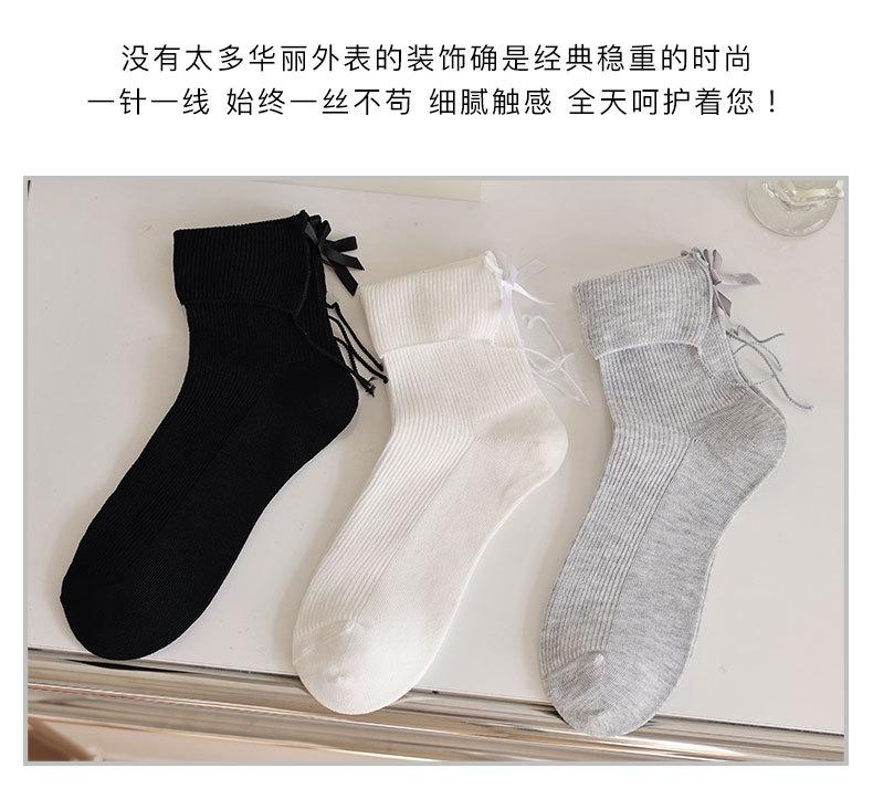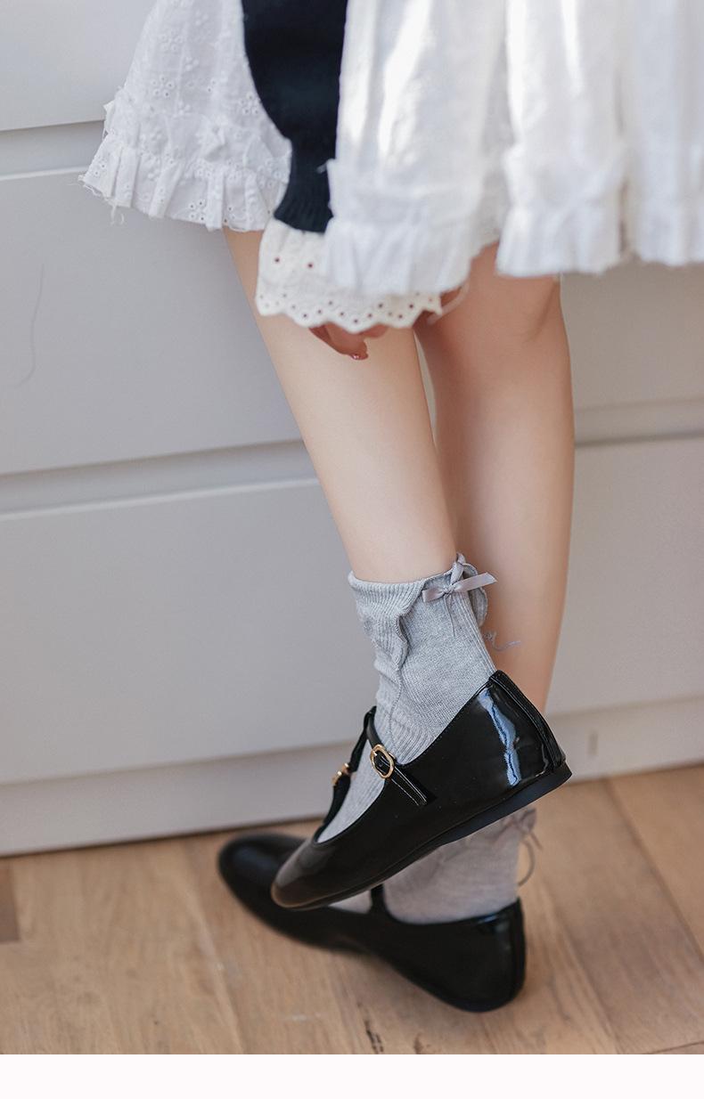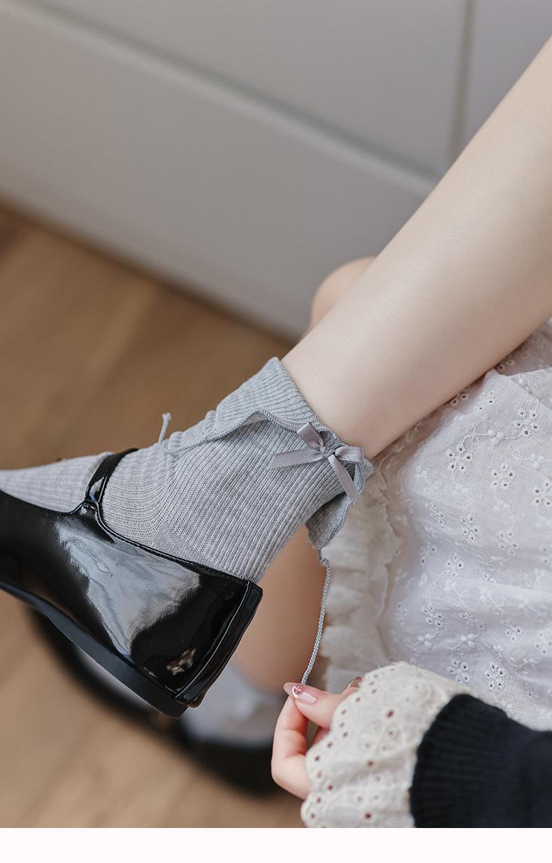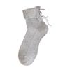 Calcetines Grises con Lazo para Mujer Primavera y Verano Cómodos Calcetines de Media Caña Color Sólido Calcetines con Doblez Estilo Japonés Calcetines de Mujer con Zapatos de Piel Pequeños