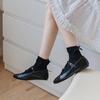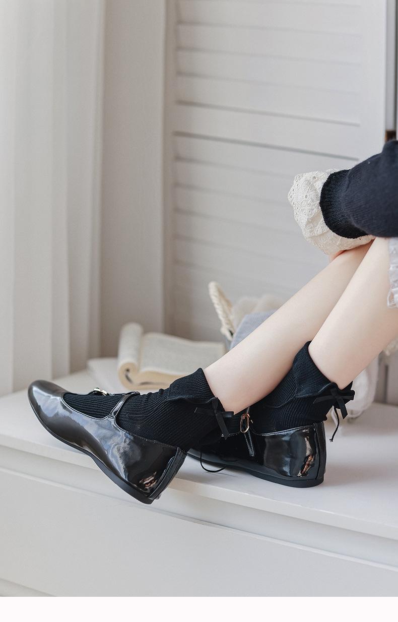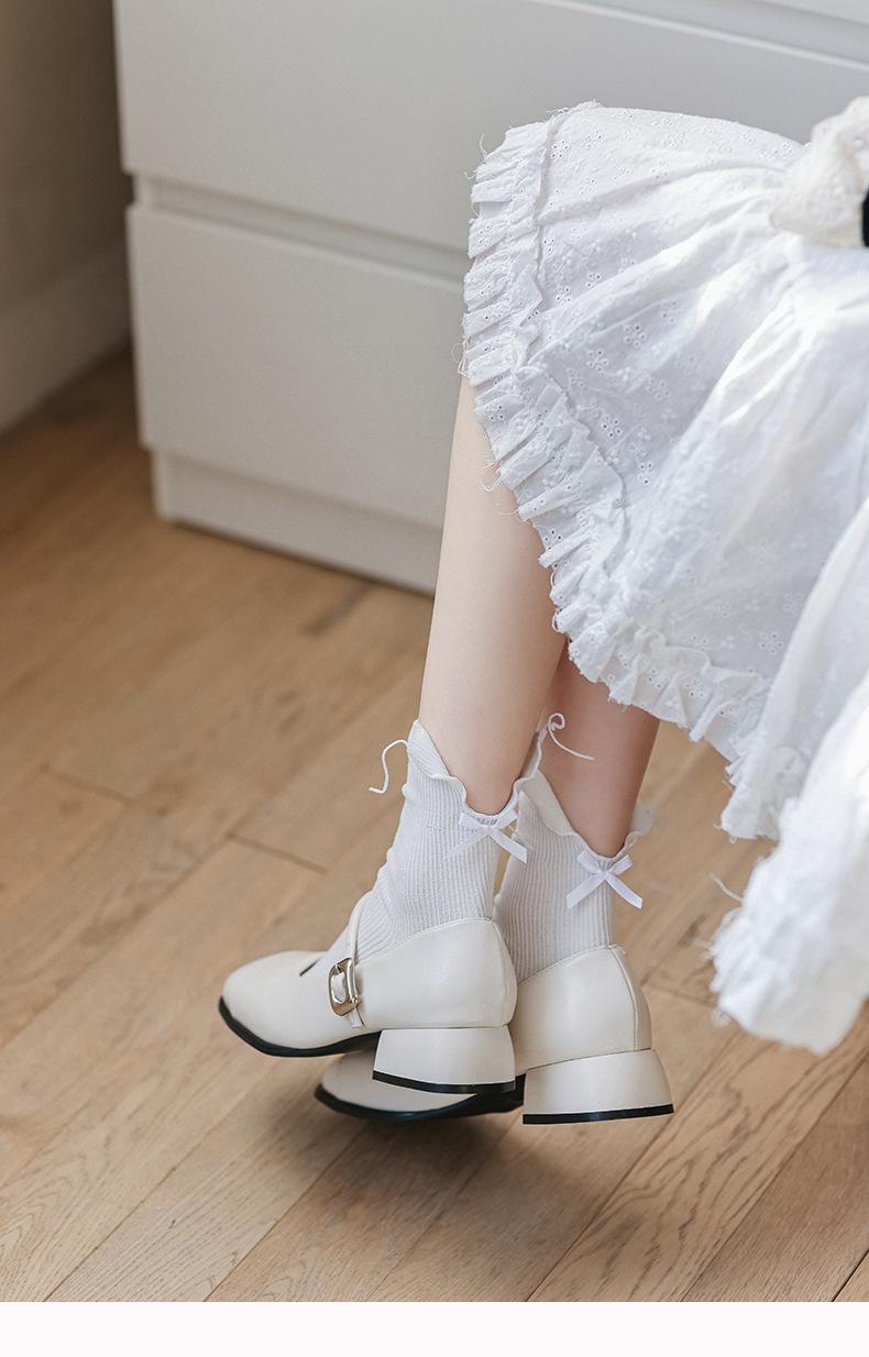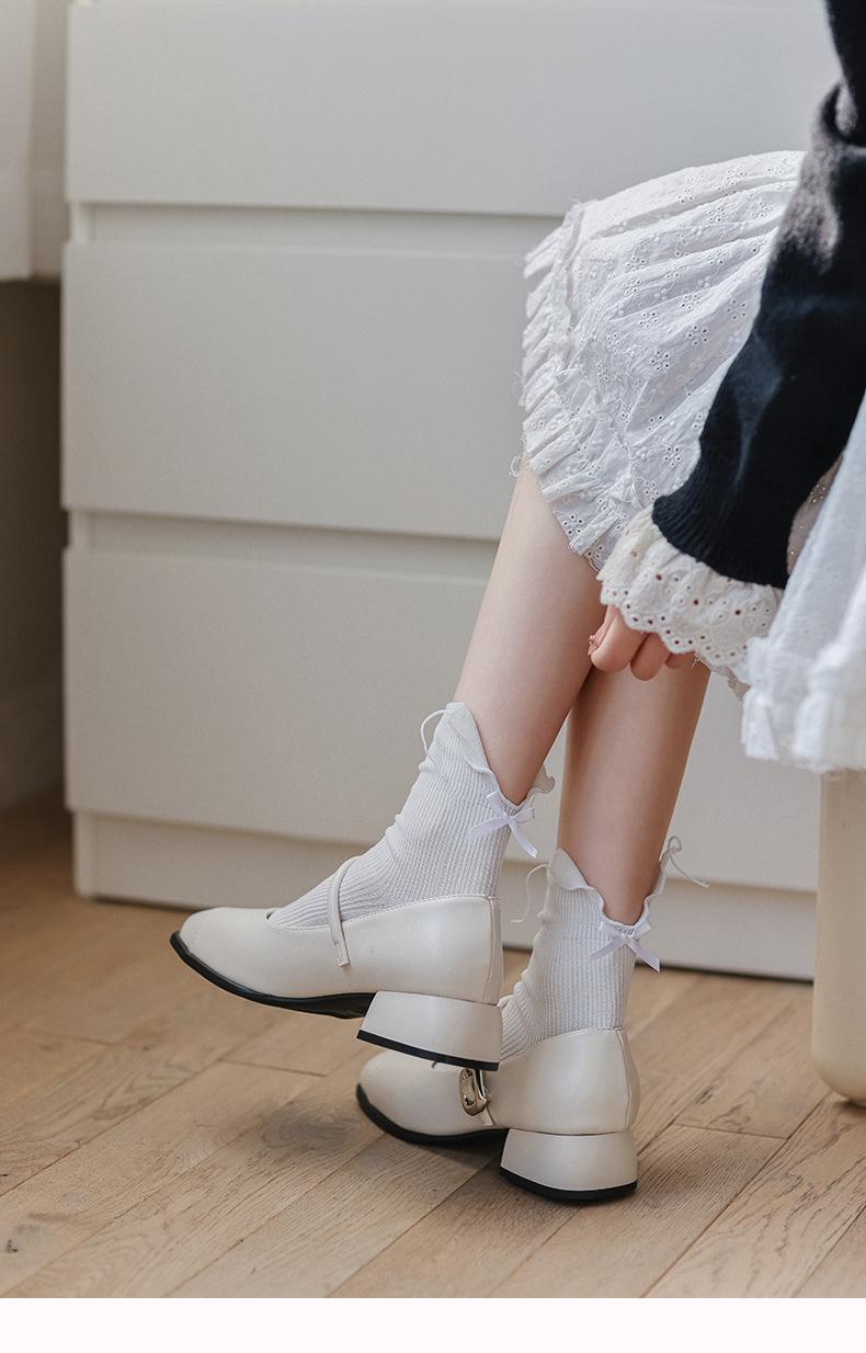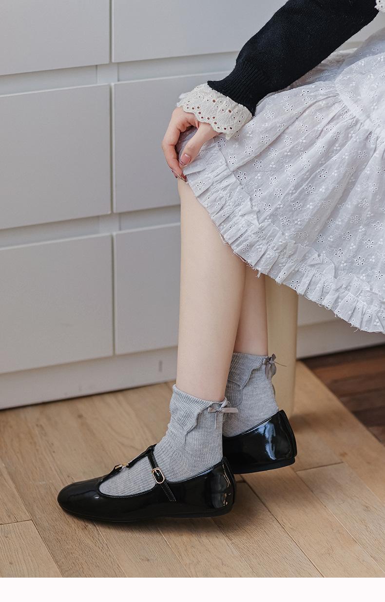 Calcetines Grises con Lazo para Mujer Primavera y Verano Cómodos Calcetines de Media Caña Color Sólido Calcetines con Doblez Estilo Japonés Calcetines de Mujer con Zapatos de Piel Pequeños