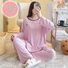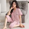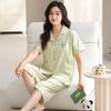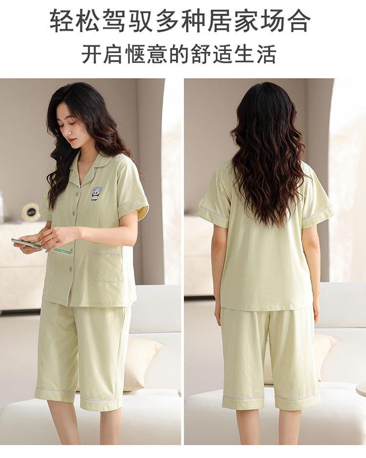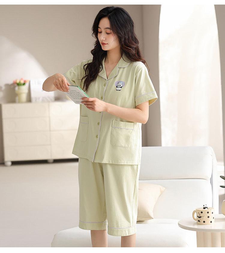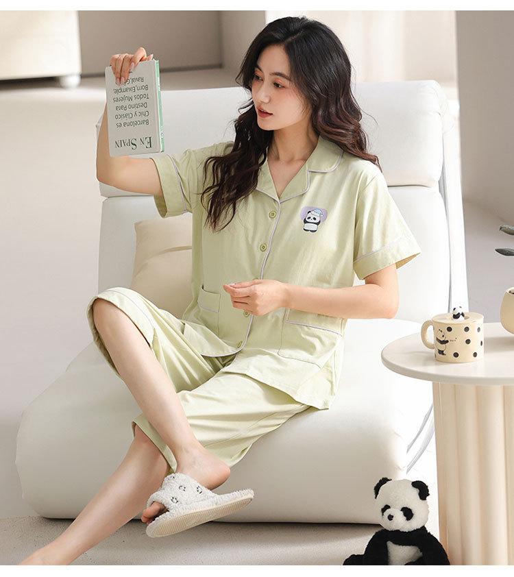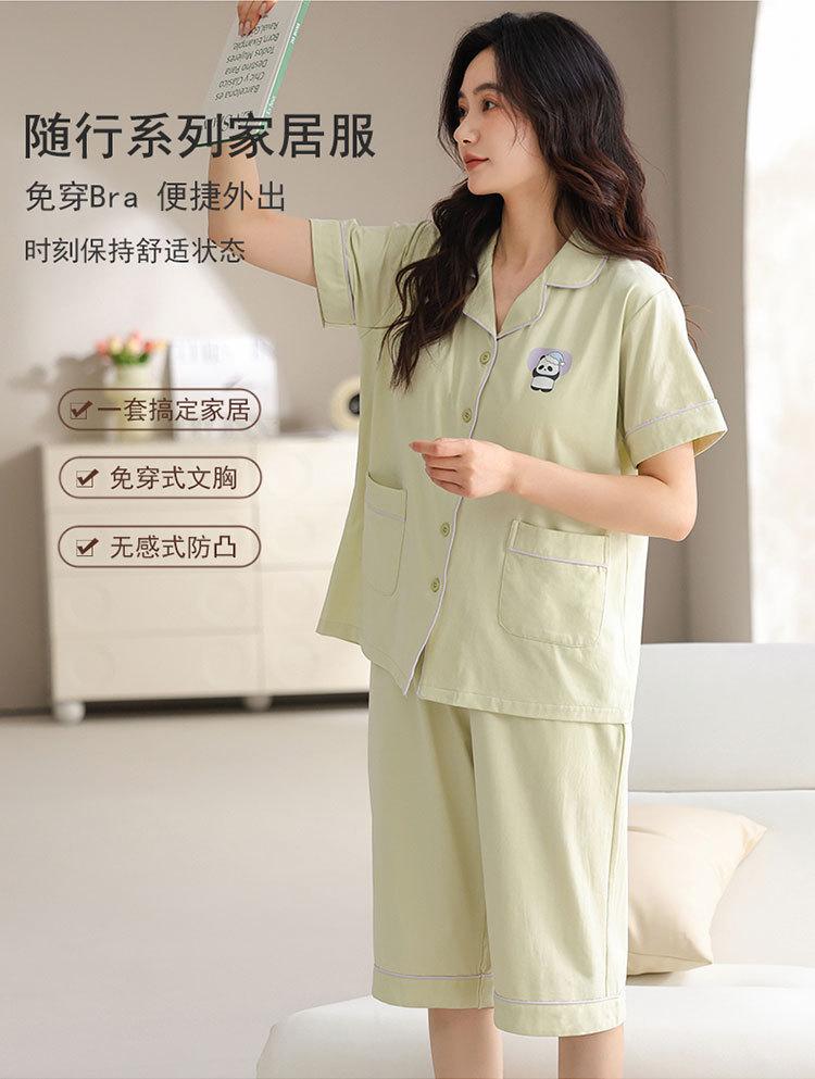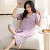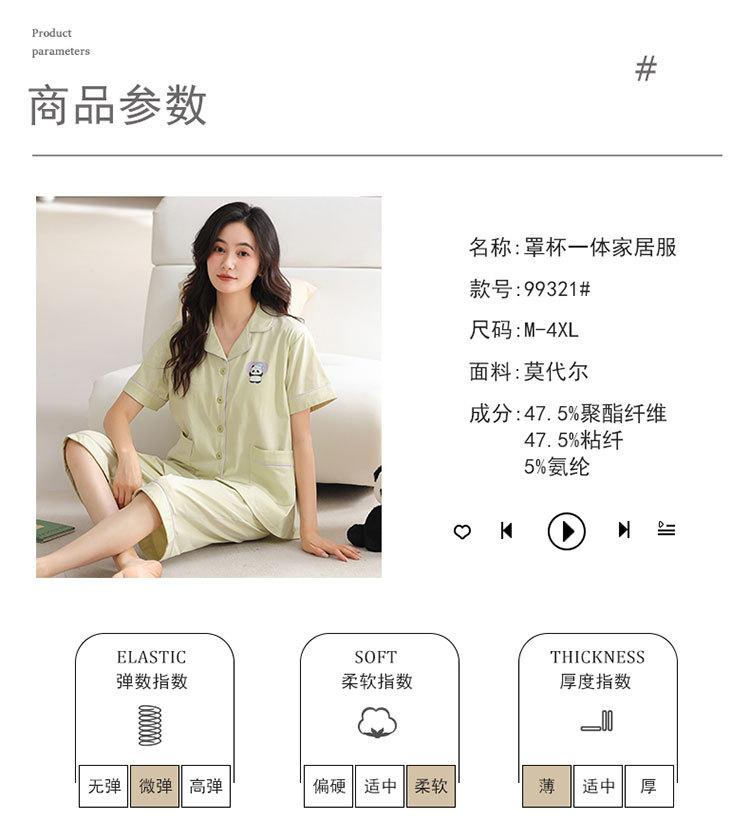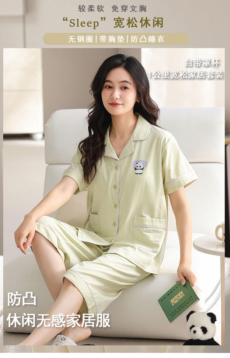 Pijama de verano para mujer, acolchado de modal con almohadilla para el pecho, talla grande, manga corta, pantalones capri, cárdigan, ropa informal, traje