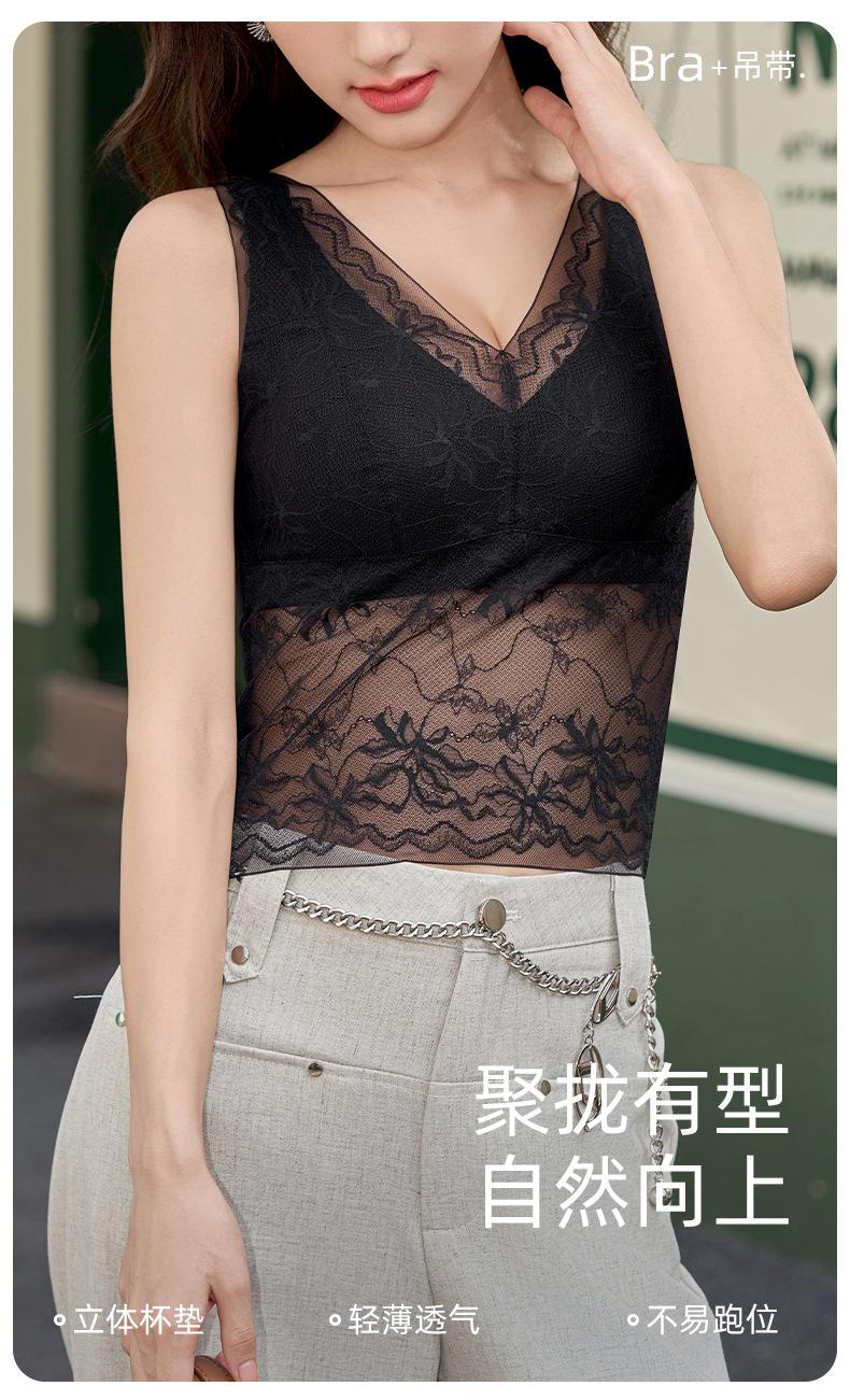 Nuevo Chaleco Básico de Encaje Sujetador Largo Todo en Uno Lencería Sexy Camisola para Mujer Sin Varillas 8092