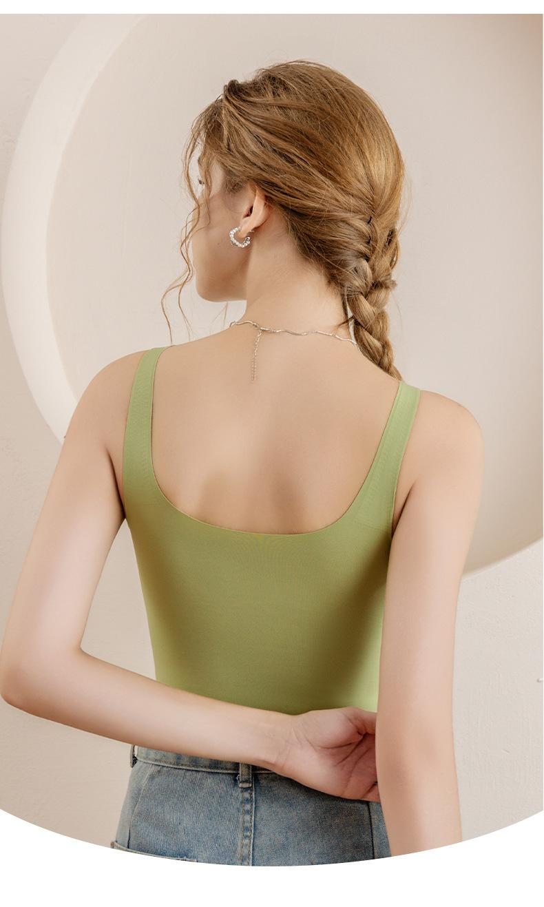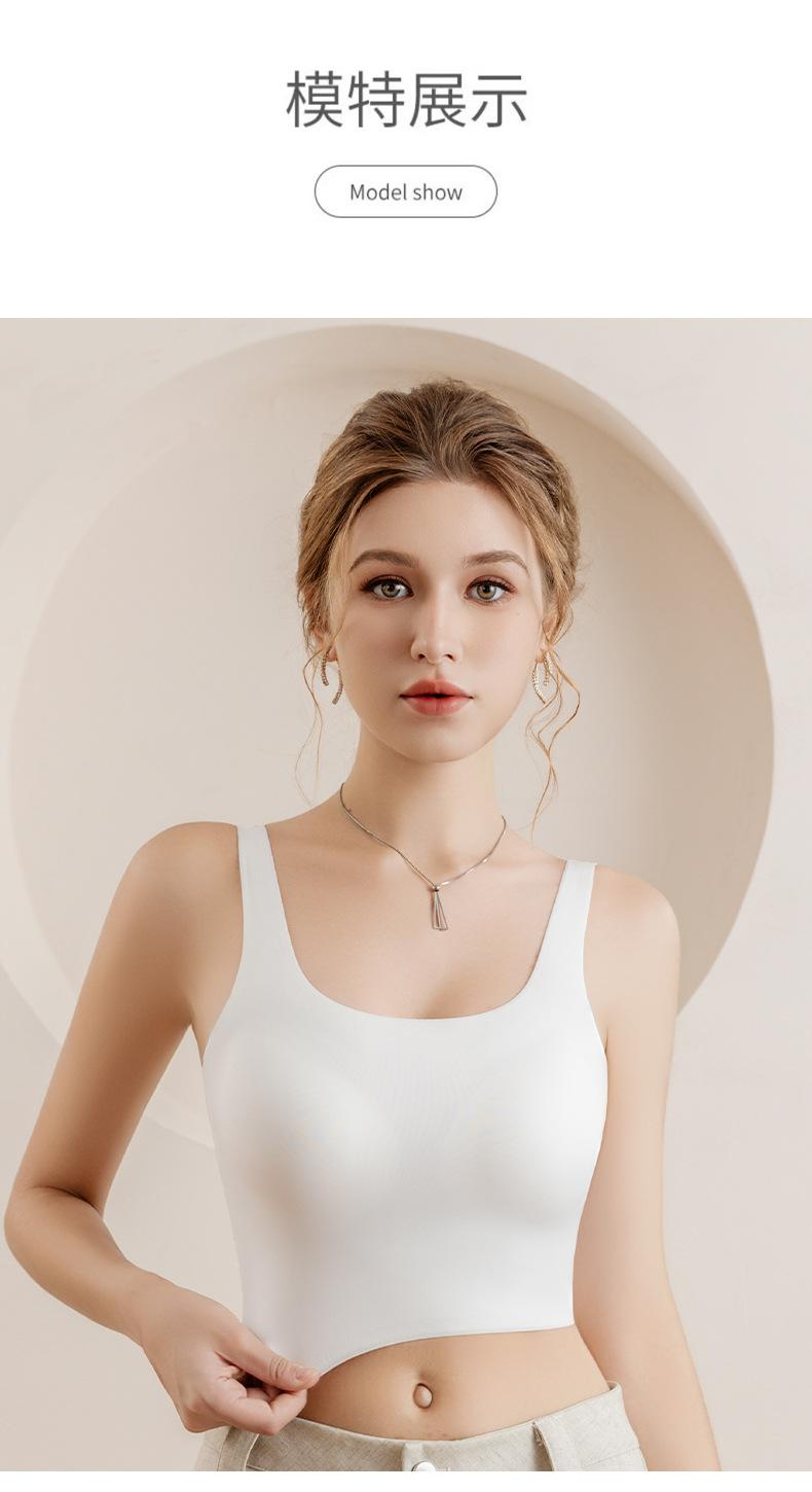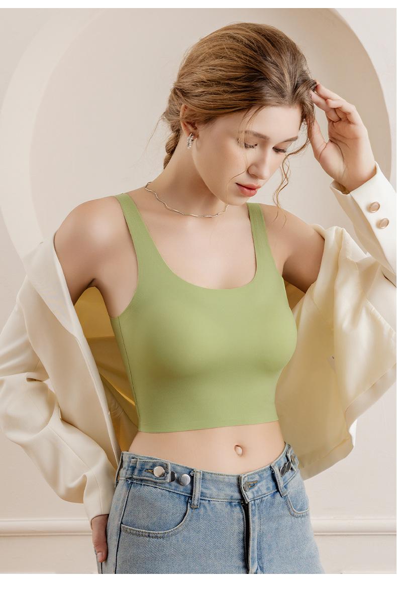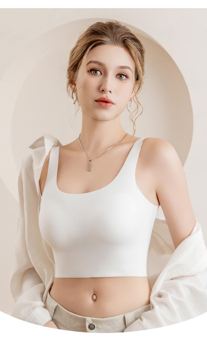 Camisola Chaleco Mujer Almohadilla de Pecho Color Sólido Una Pieza Diario Aros Internos Fijos Sin Aros de Acero Copa Sin Movimiento Transpirable Sujetador Sin Uso