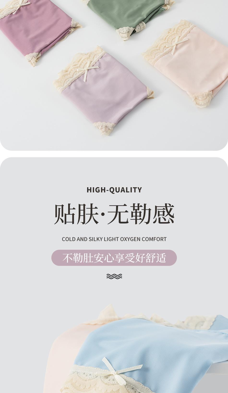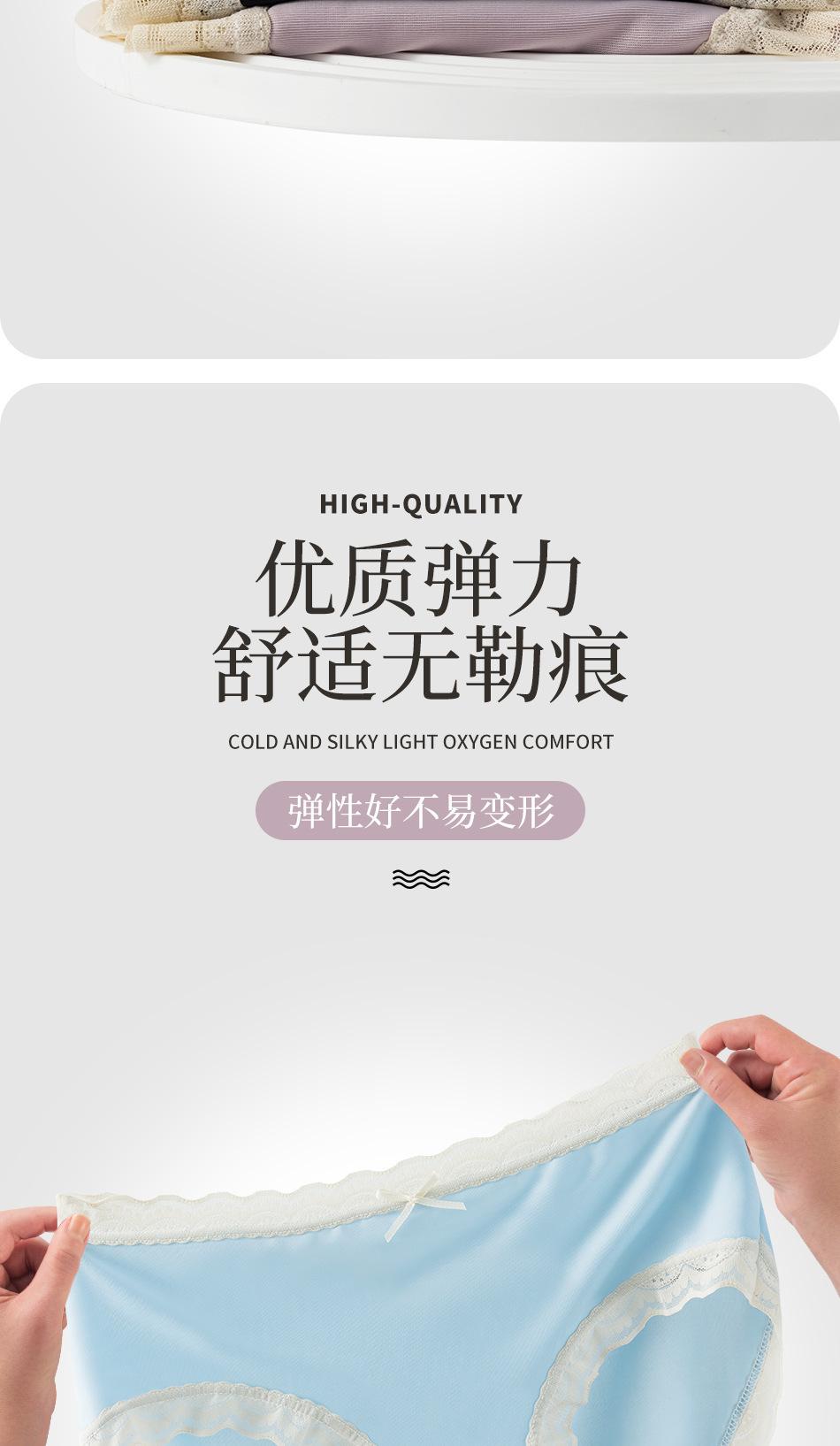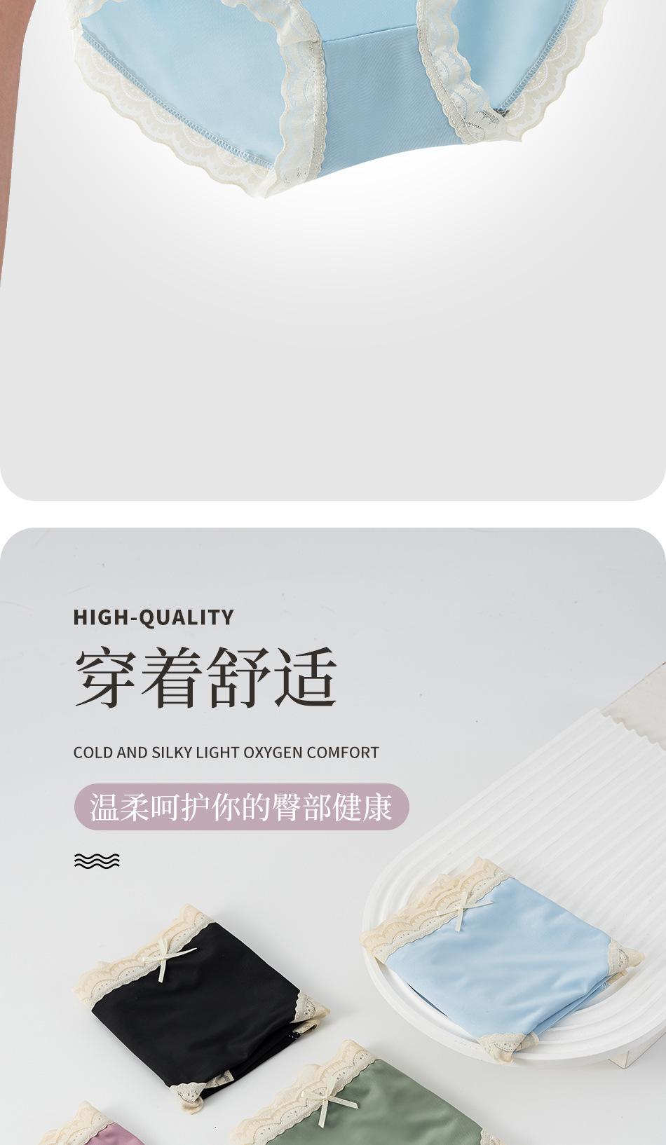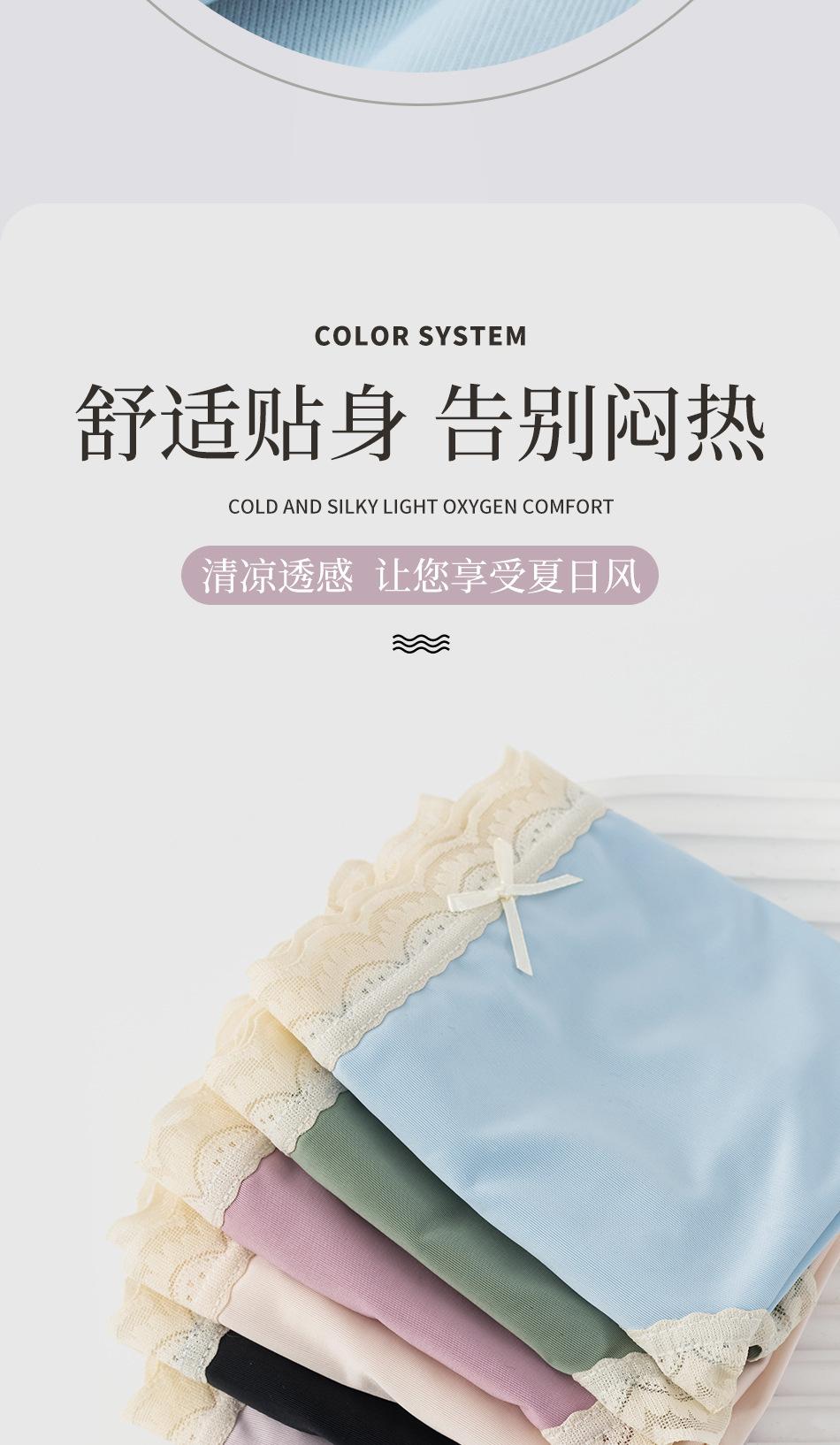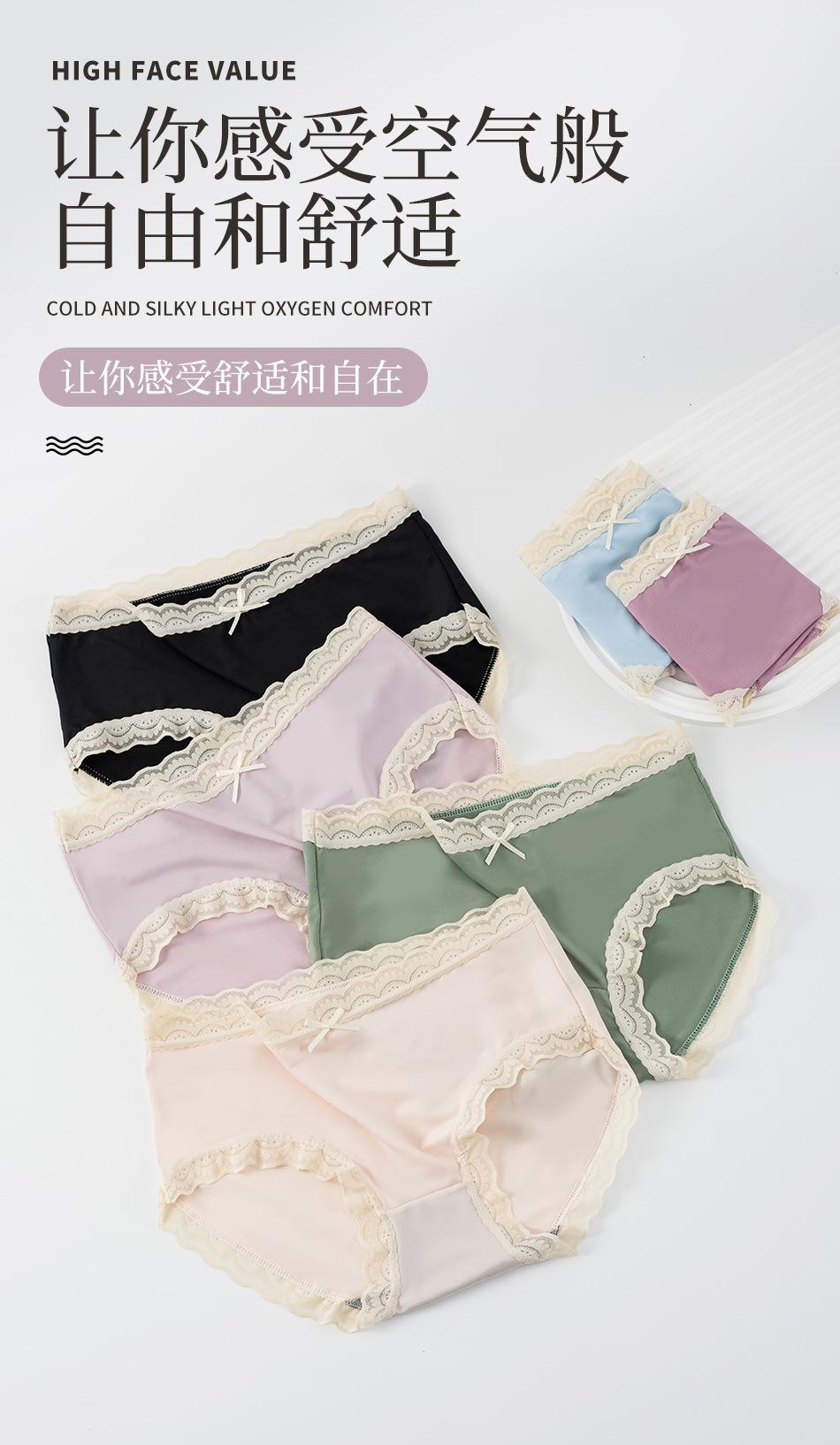 Ropa interior de verano de seda helada para mujer, de cintura media, color liso, fina, antimarcas, de algodón puro, con entrepierna y secado rápido.