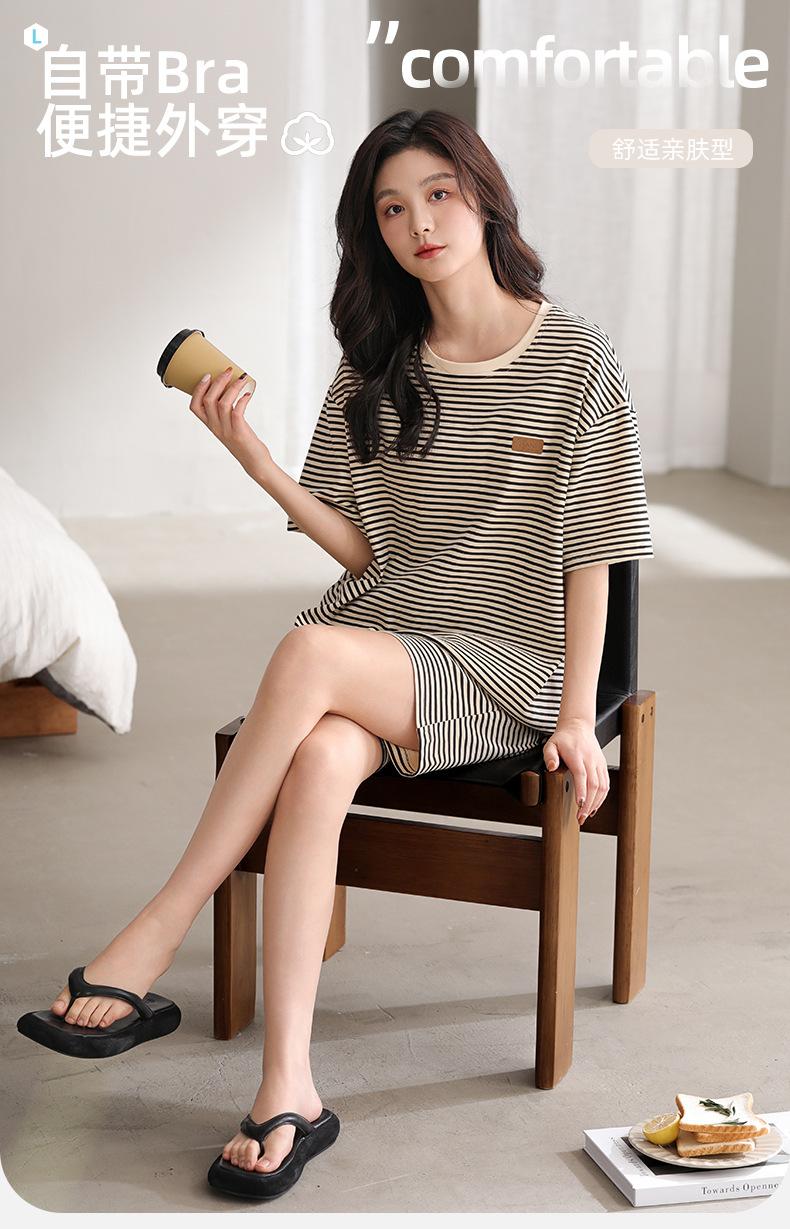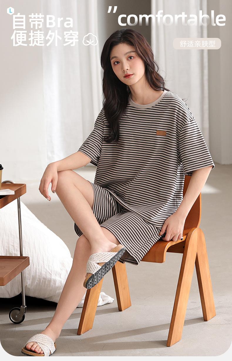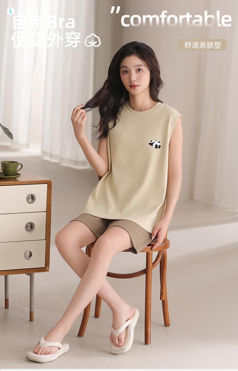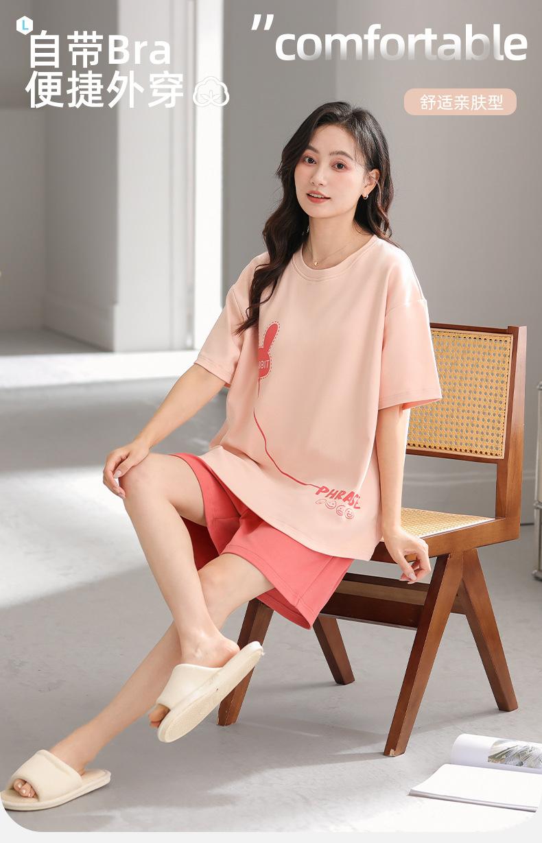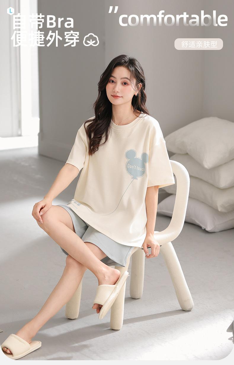 Pijama de Cuello Redondo para Mujer Verano Algodón Manga Corta Shorts con Almohadilla en el Pecho Enterizo Delgado para Niña Antigolpes Ropa de Casa para Uso Exterior