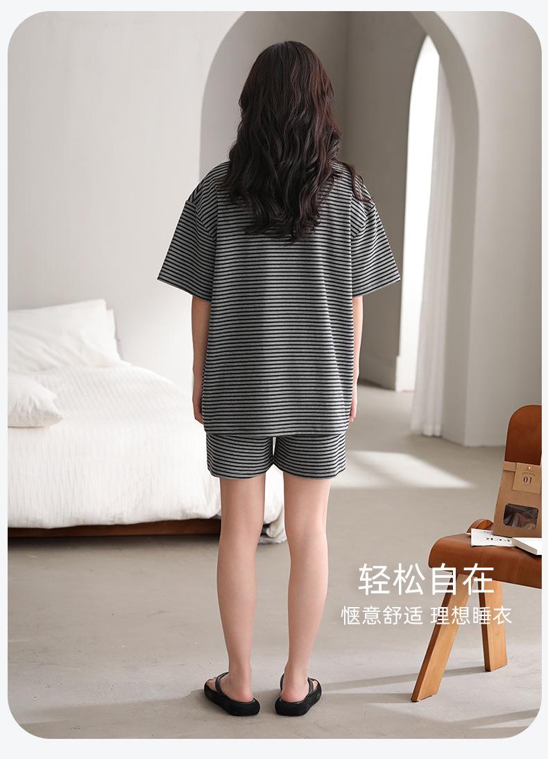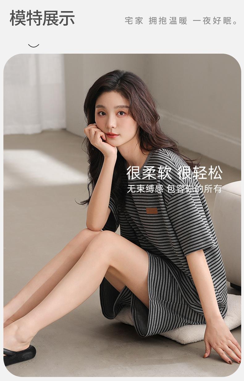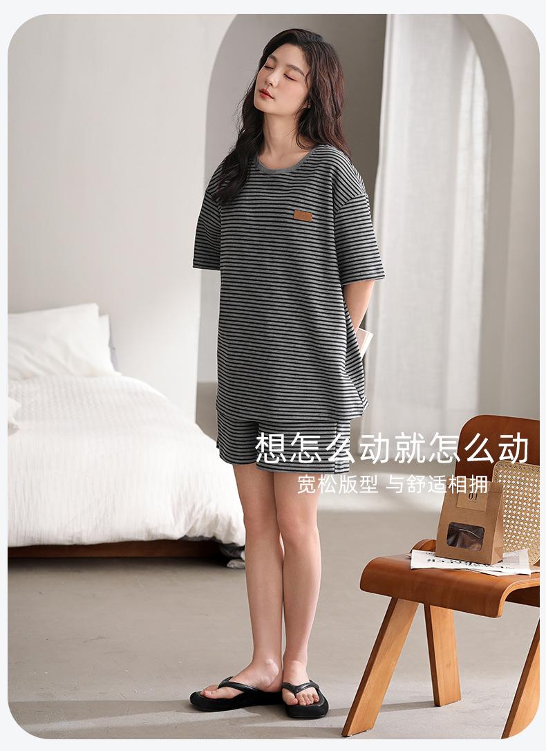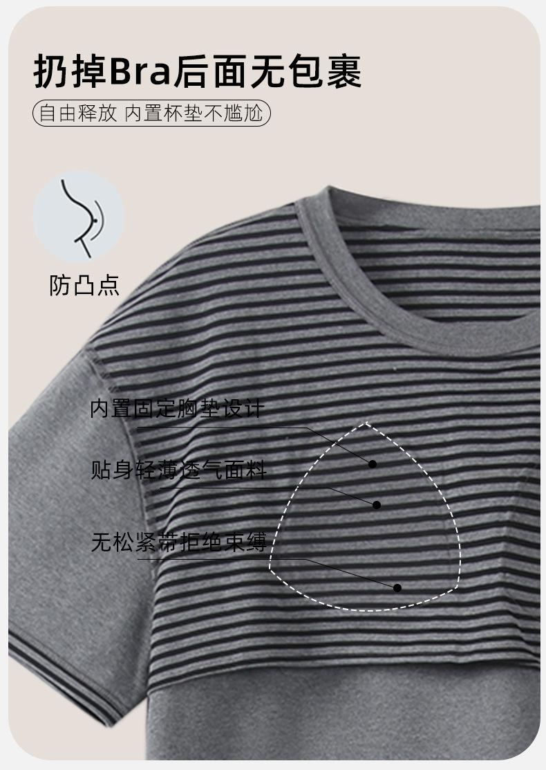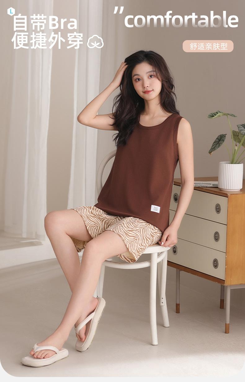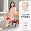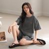 Pijama de Cuello Redondo para Mujer Verano Algodón Manga Corta Shorts con Almohadilla en el Pecho Enterizo Delgado para Niña Antigolpes Ropa de Casa para Uso Exterior