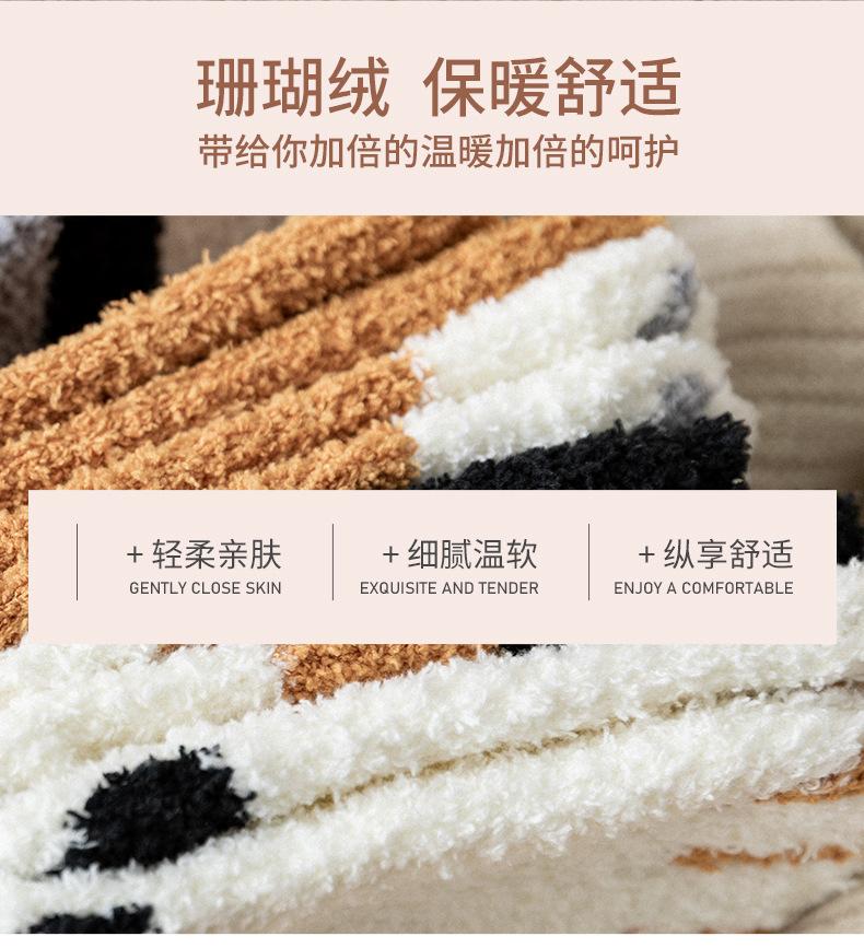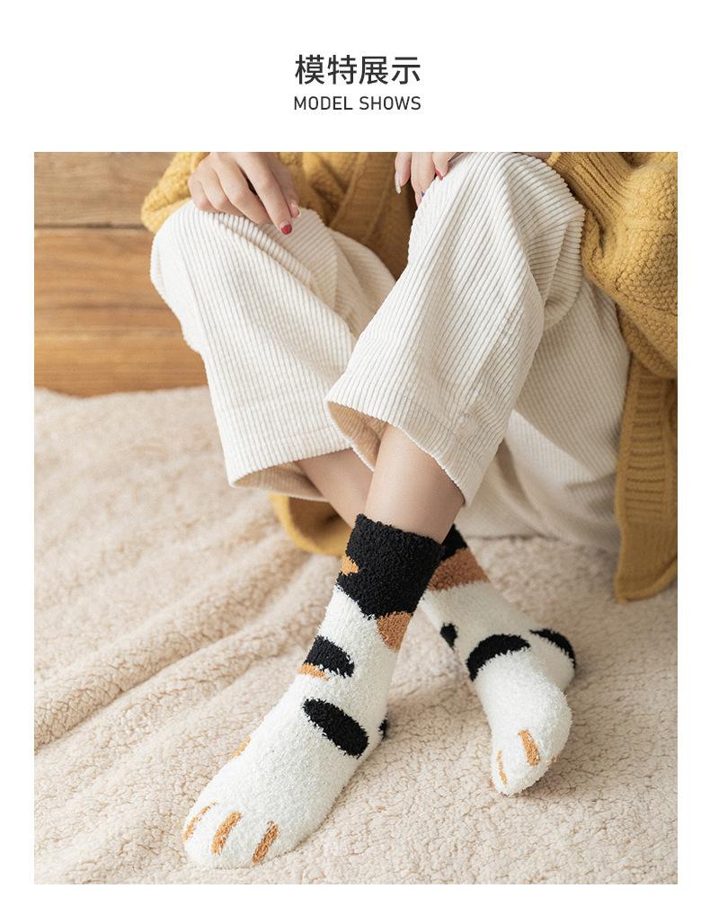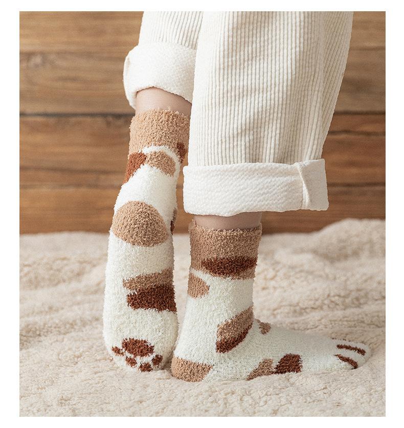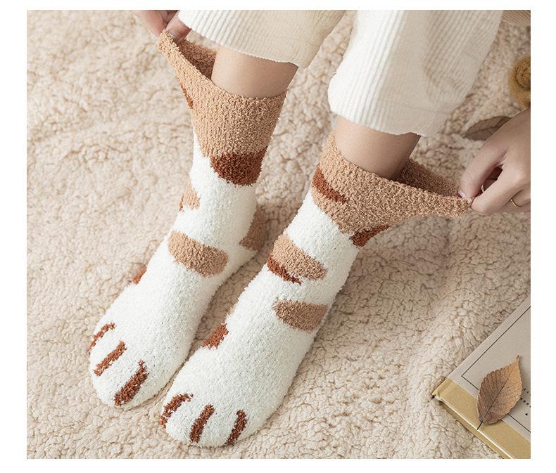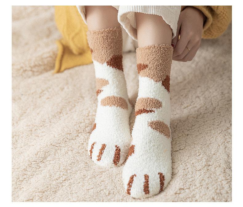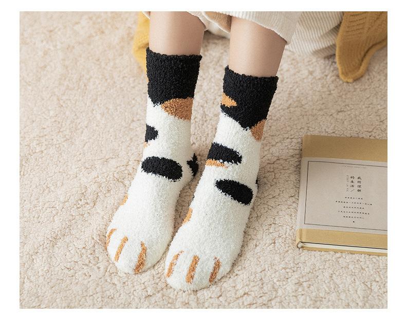 Calcetines de mujer de otoño e invierno con bonitos gatos, calcetines de lana coral, calcetines de luna, calcetines cálidos y gruesos para el suelo, calcetines de felpa para dormir en casa.